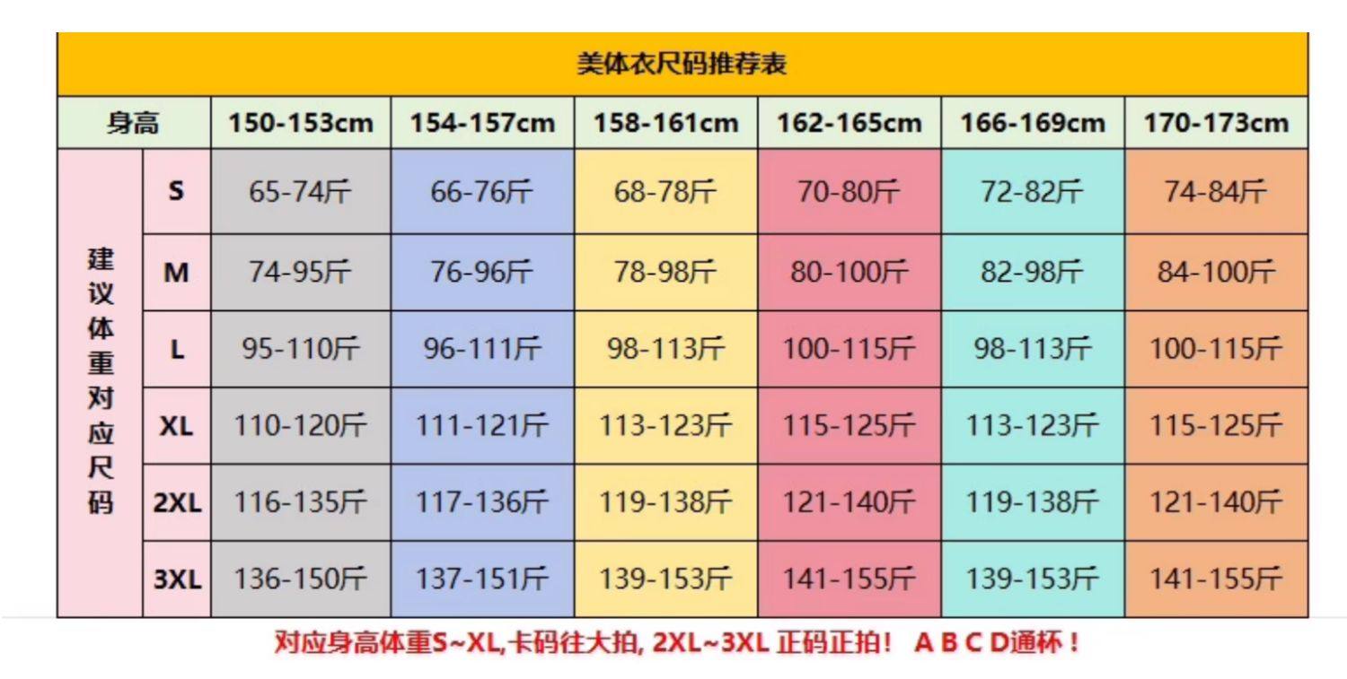 China (cm) 160-165/84-86 165-170 / 88-90 167-172 / 92-96 168-173 / 98-102 170-176 / 106-110