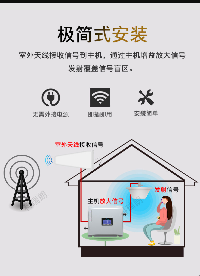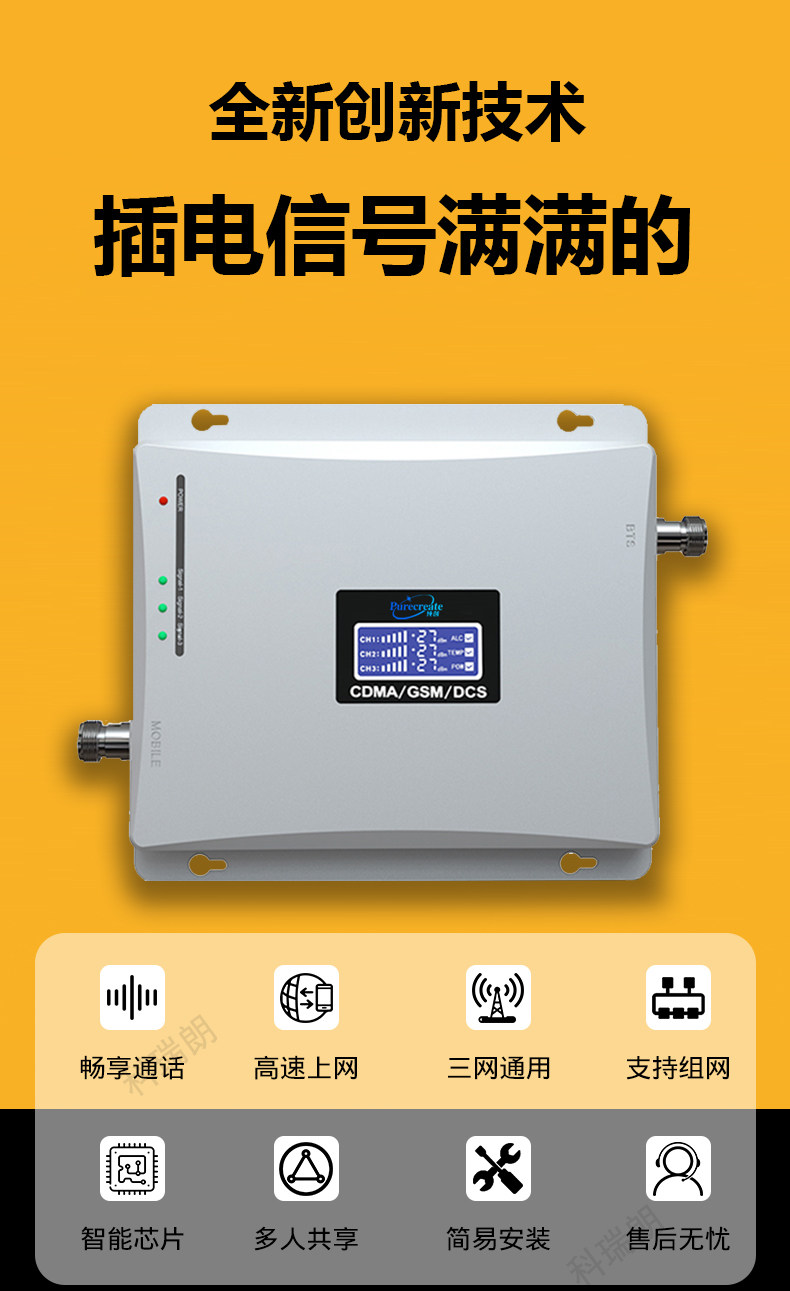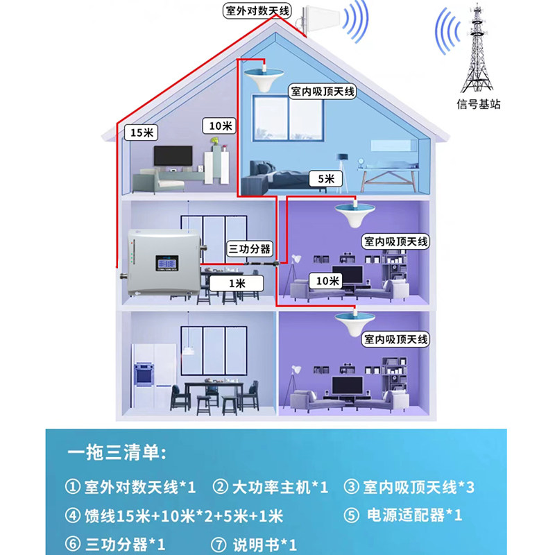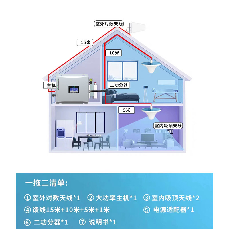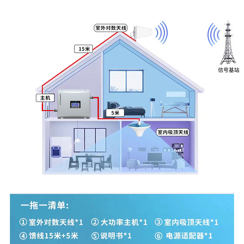 Potenciador de amplificación de señal de teléfono móvil de alta potencia, 1000 metros cuadrados, recepción tres en uno, casa, sótano, villa, zona montañosa