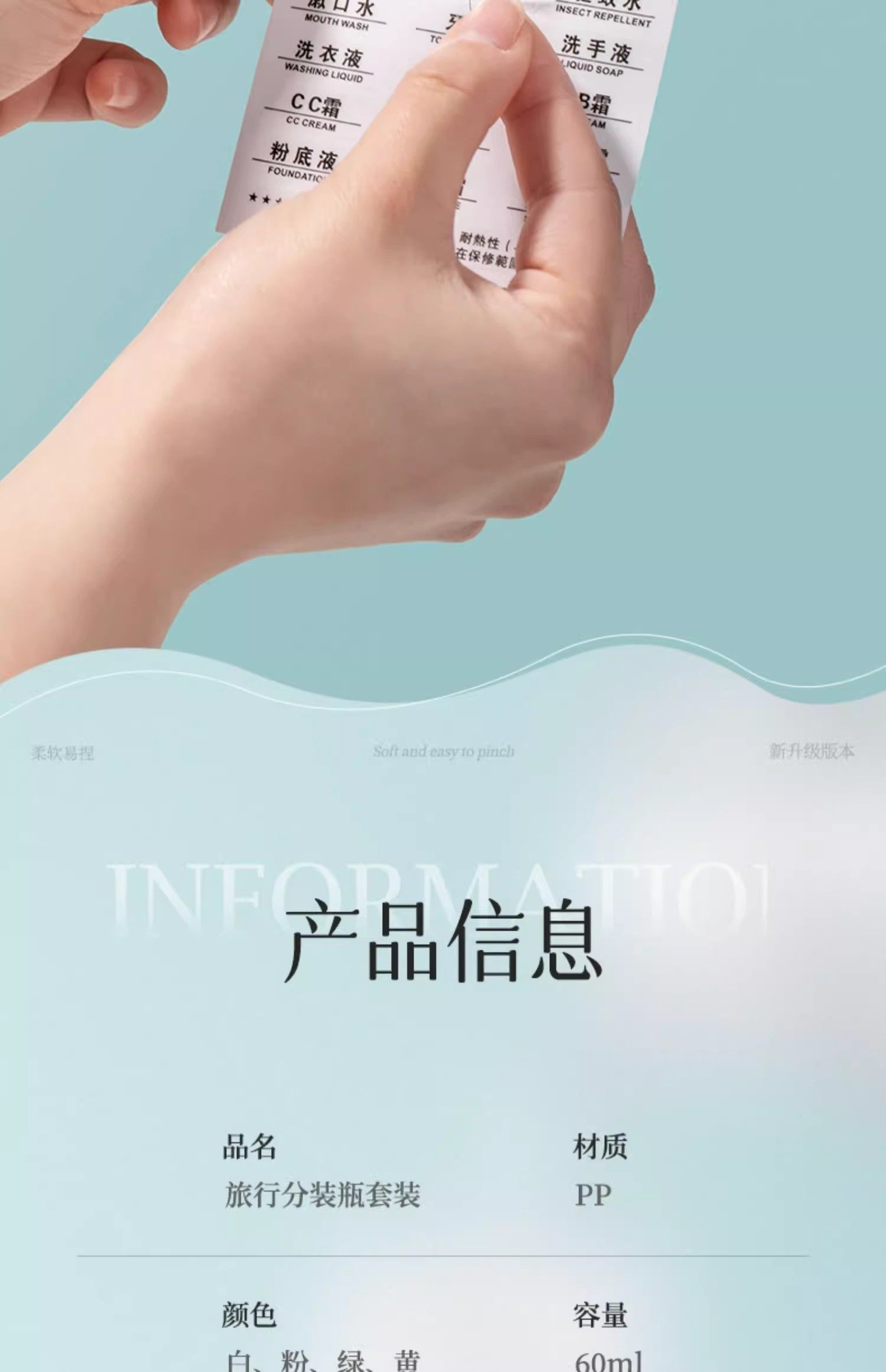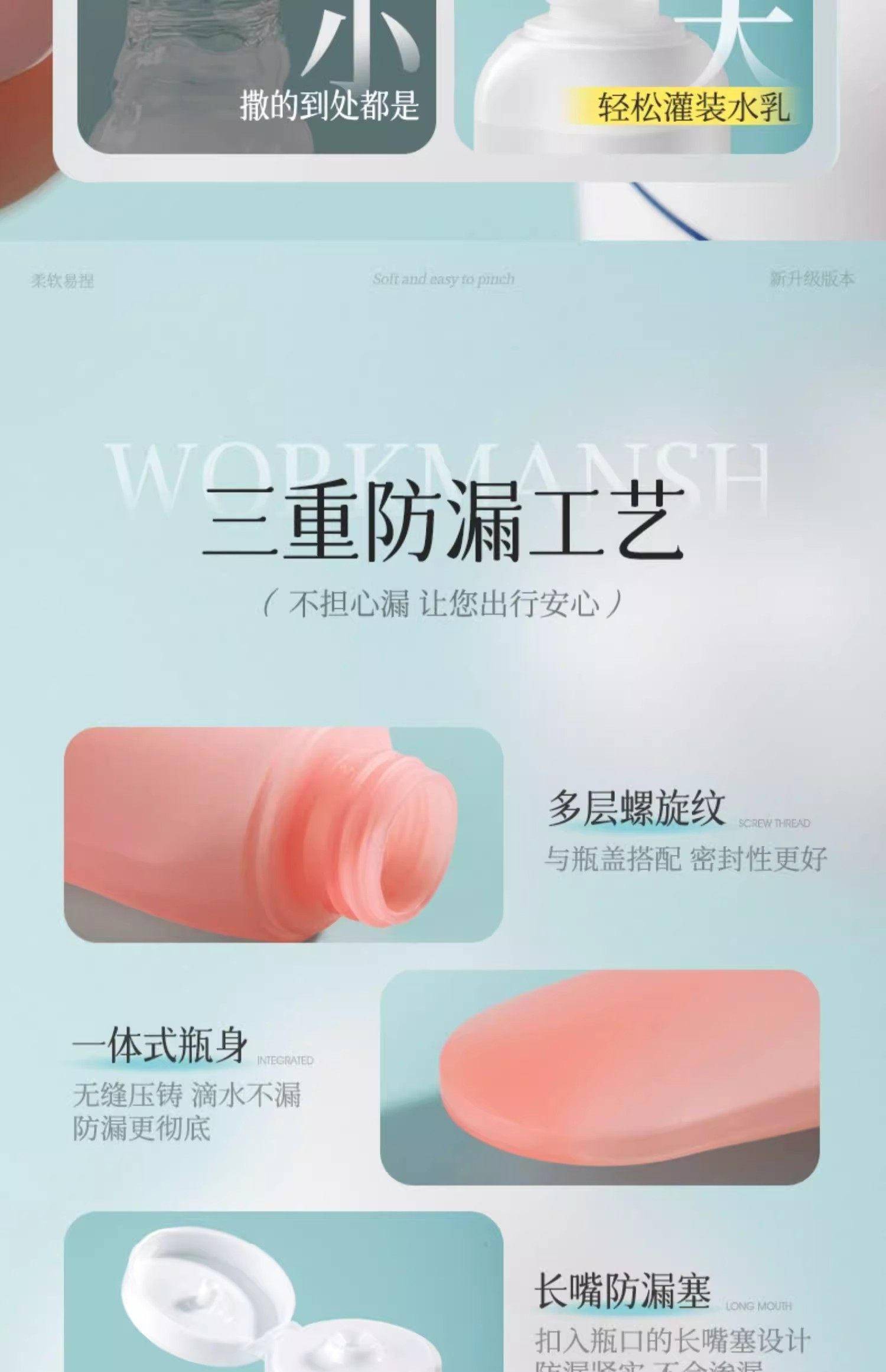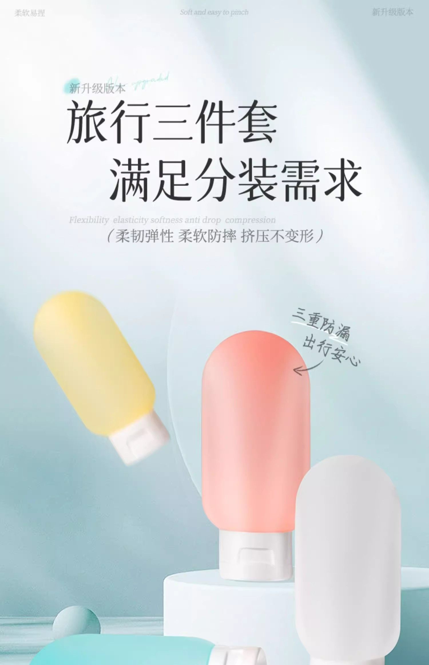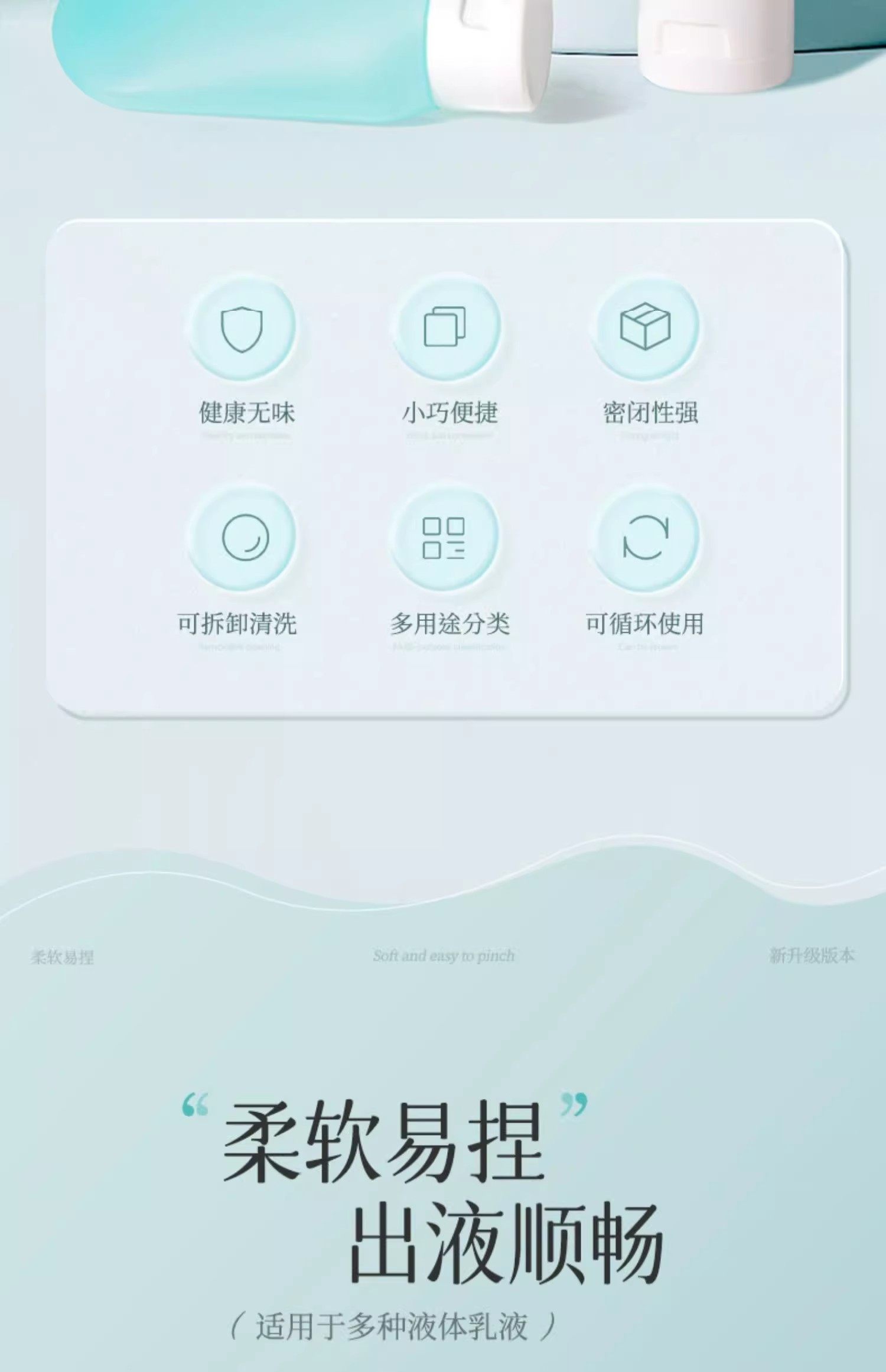 Japanese Silicone Refillable Bottles for Shower Gel, Shampoo, Lotion, Cosmetics, Empty Bottles, Travel and Business Trip Portable Toiletry Set