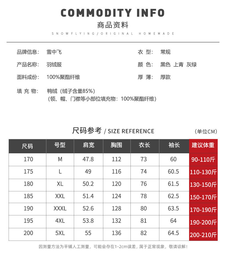 China (cm) 165 / 88-90 170 / 96-98 175 / 108-110 180 / 118-122 185 / 126-130