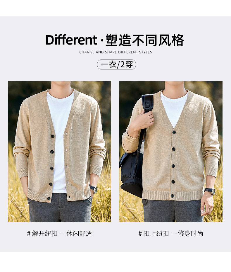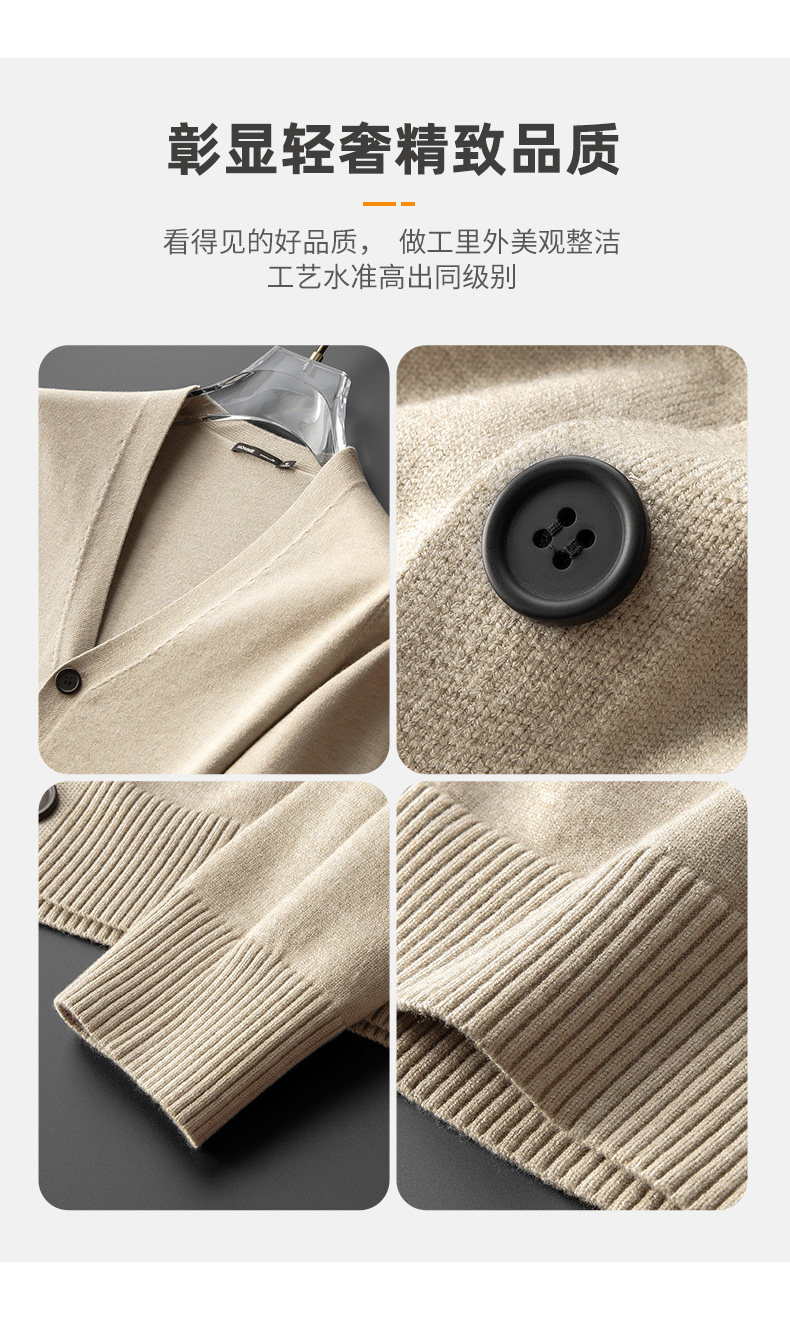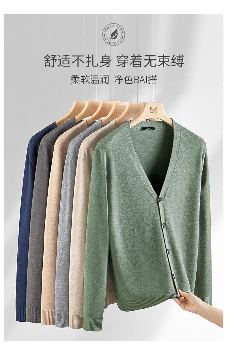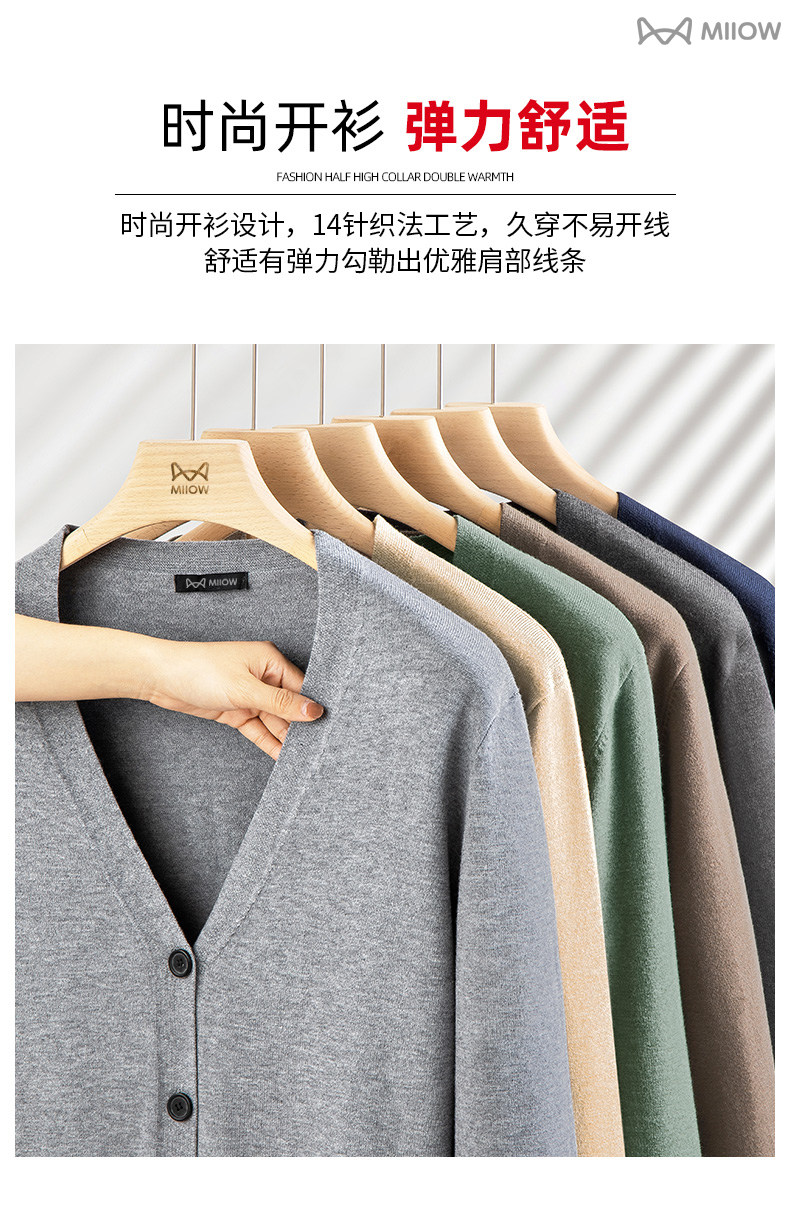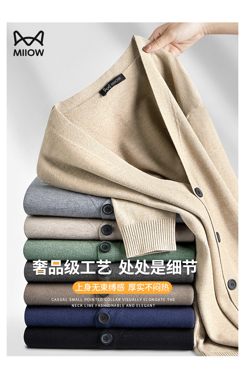 可机洗】猫人自发热毛衣开衫男士薄款外套V领针织衫外穿毛线衣