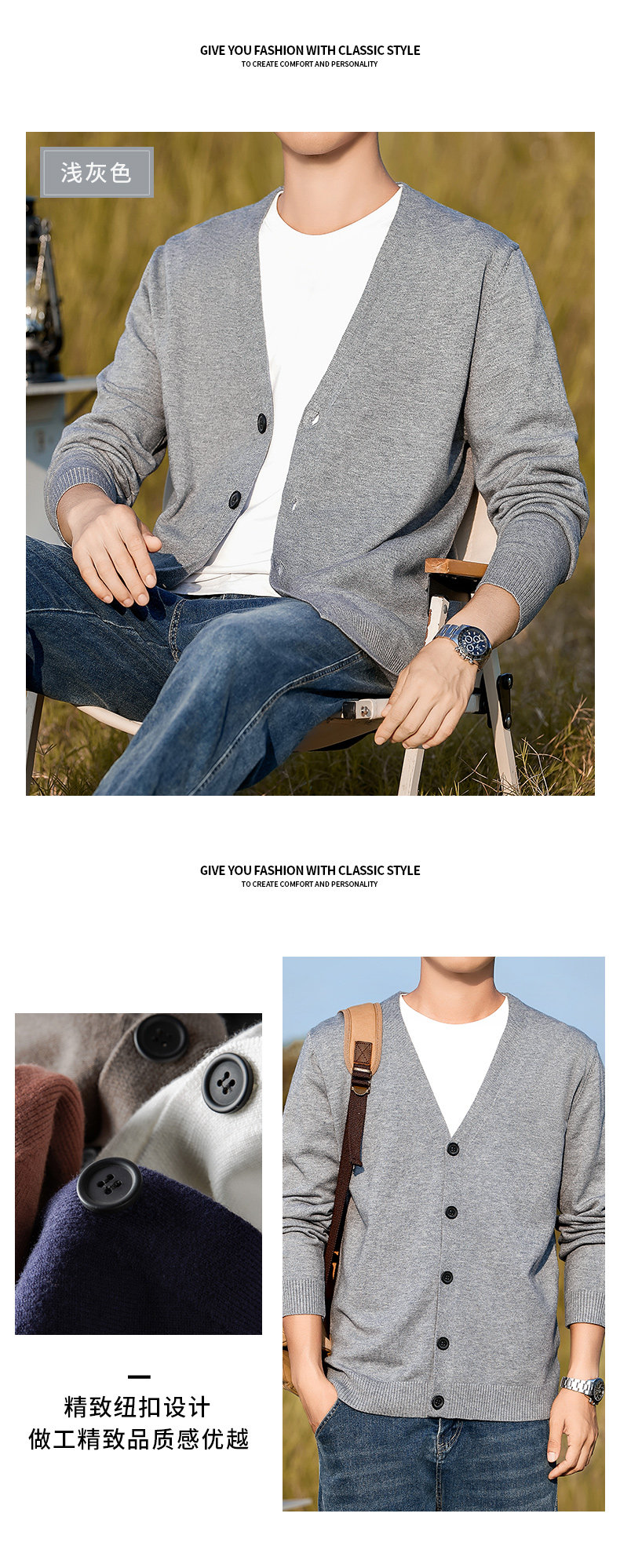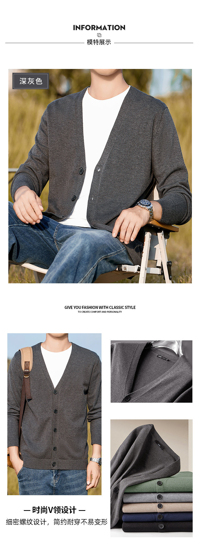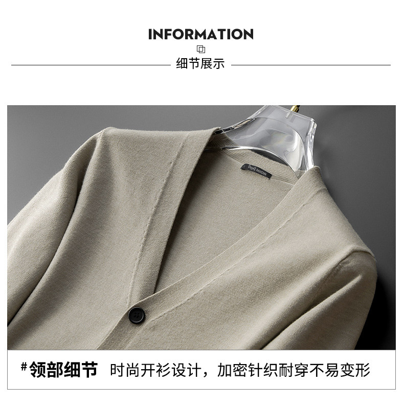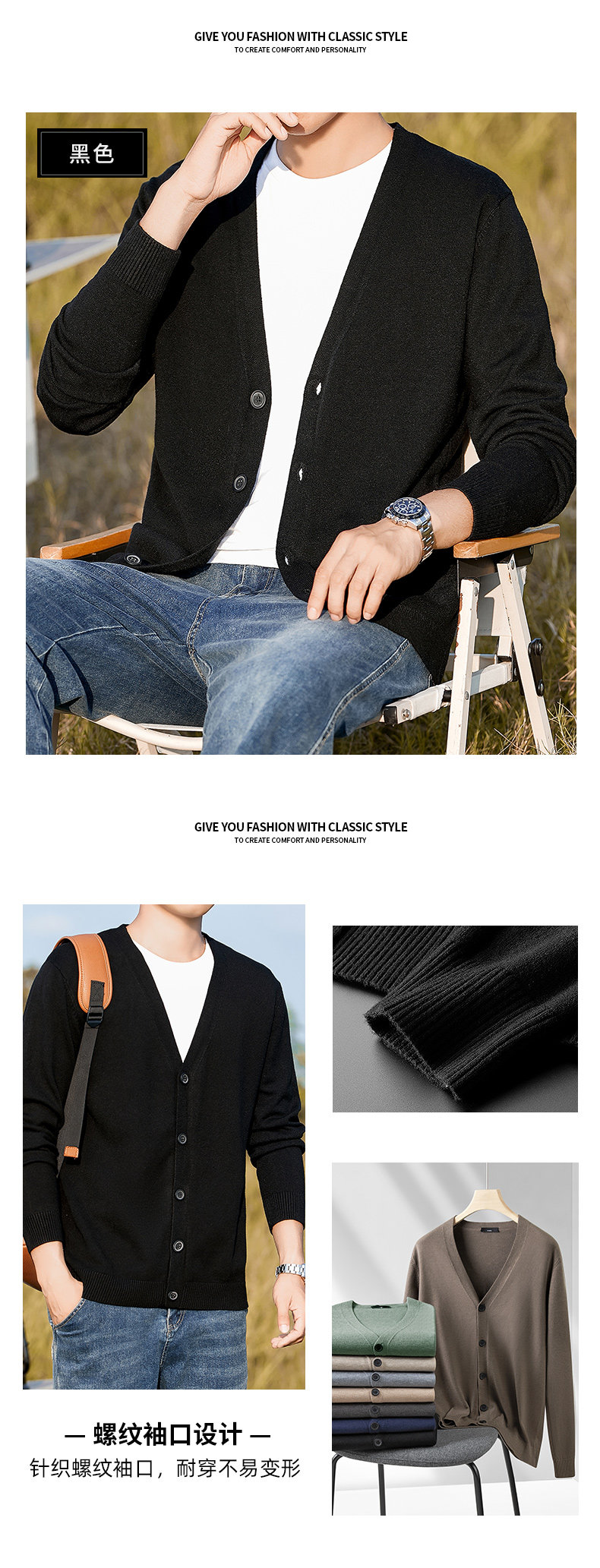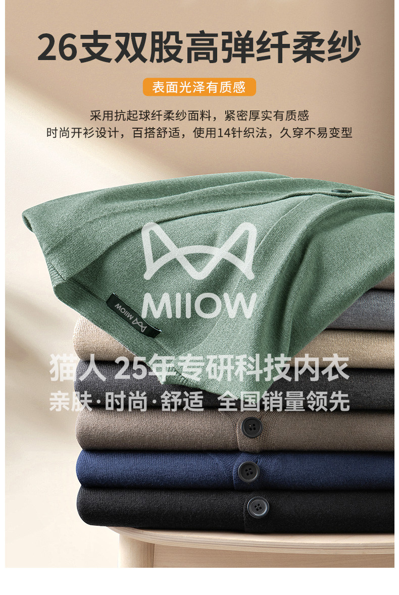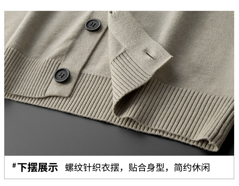 可机洗】猫人自发热毛衣开衫男士薄款外套V领针织衫外穿毛线衣