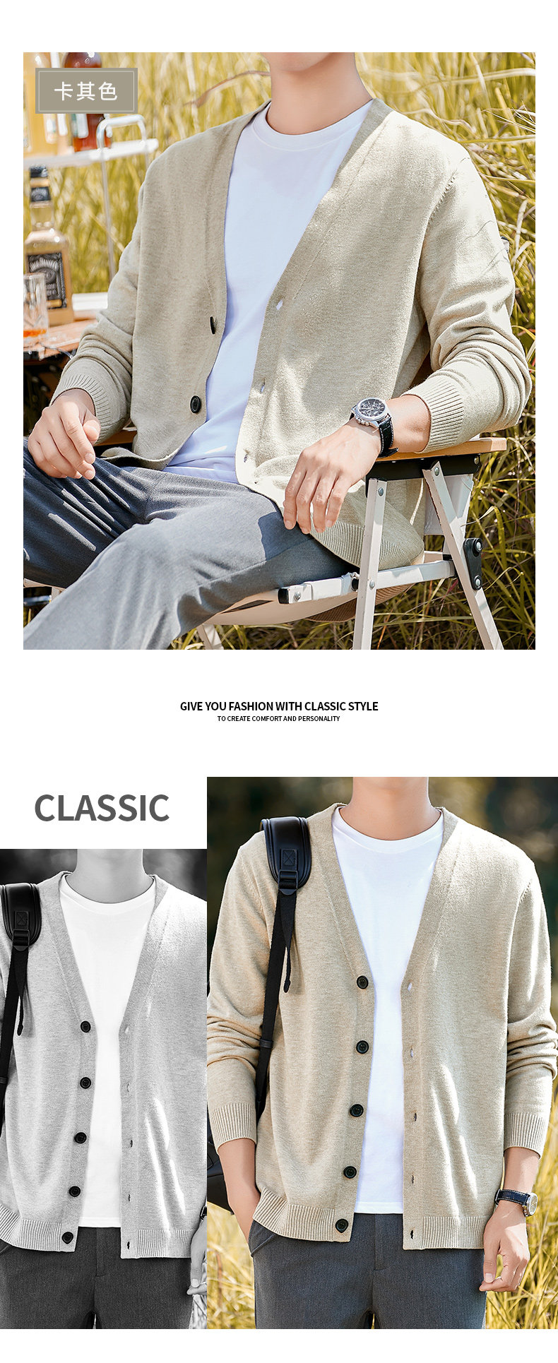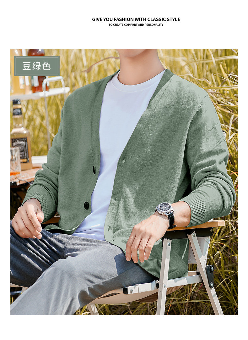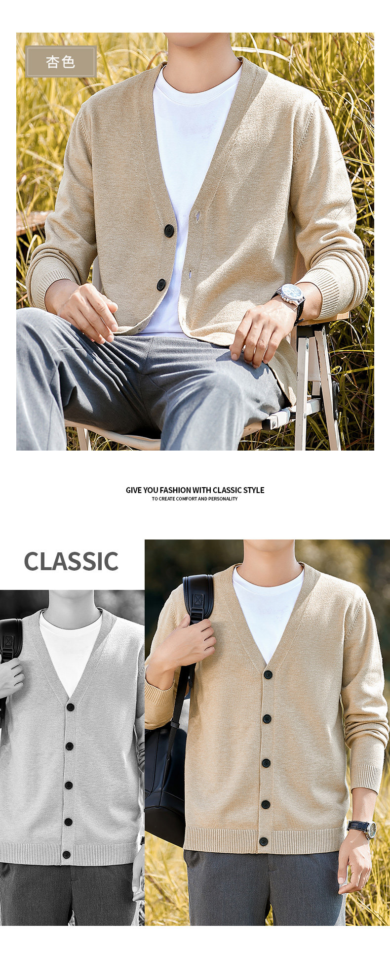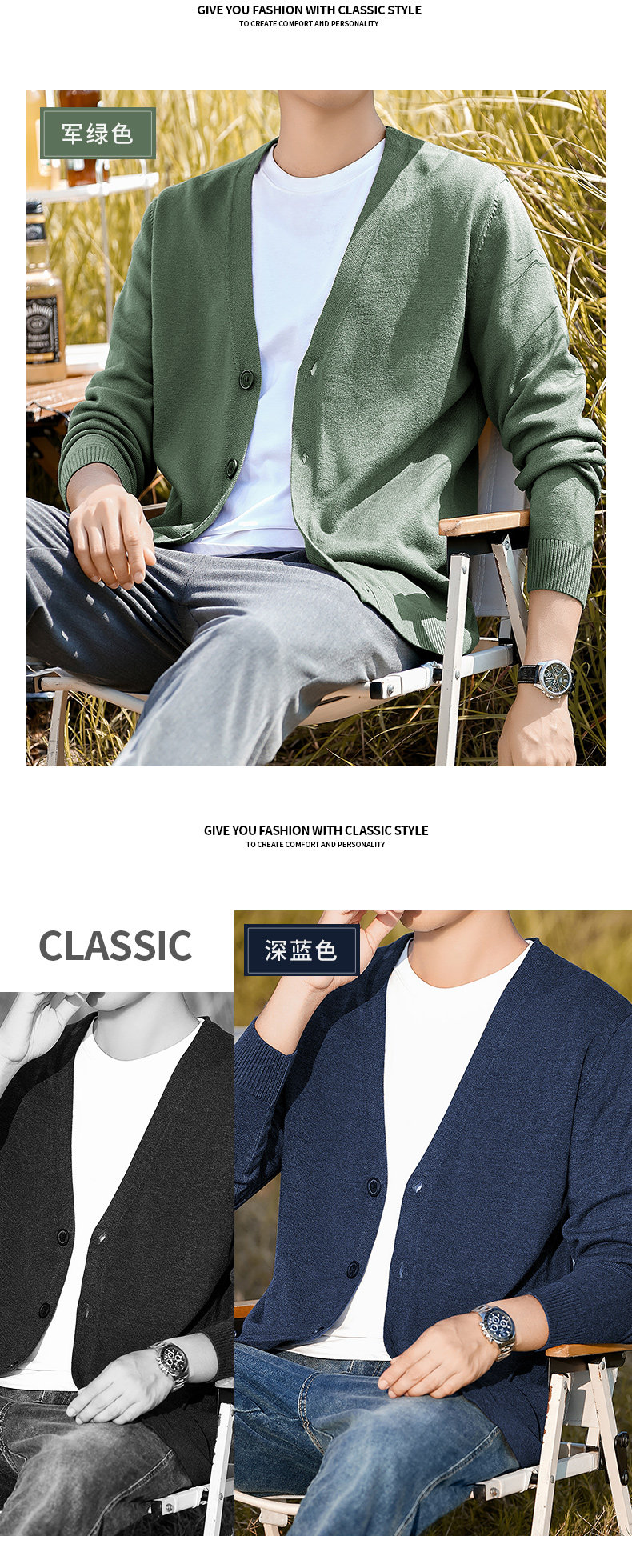 可机洗】猫人自发热毛衣开衫男士薄款外套V领针织衫外穿毛线衣