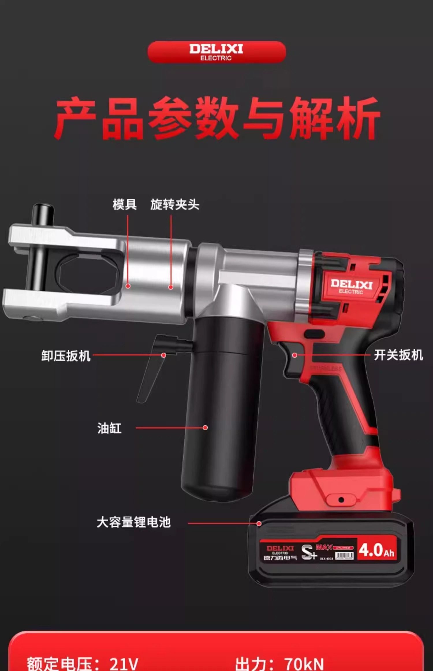 Delixi Electric Hydraulic Pliers Crimping Pliers Rechargeable Lithium Battery Wire Cable Hydraulic Copper Lug Electrician Crimping Pliers