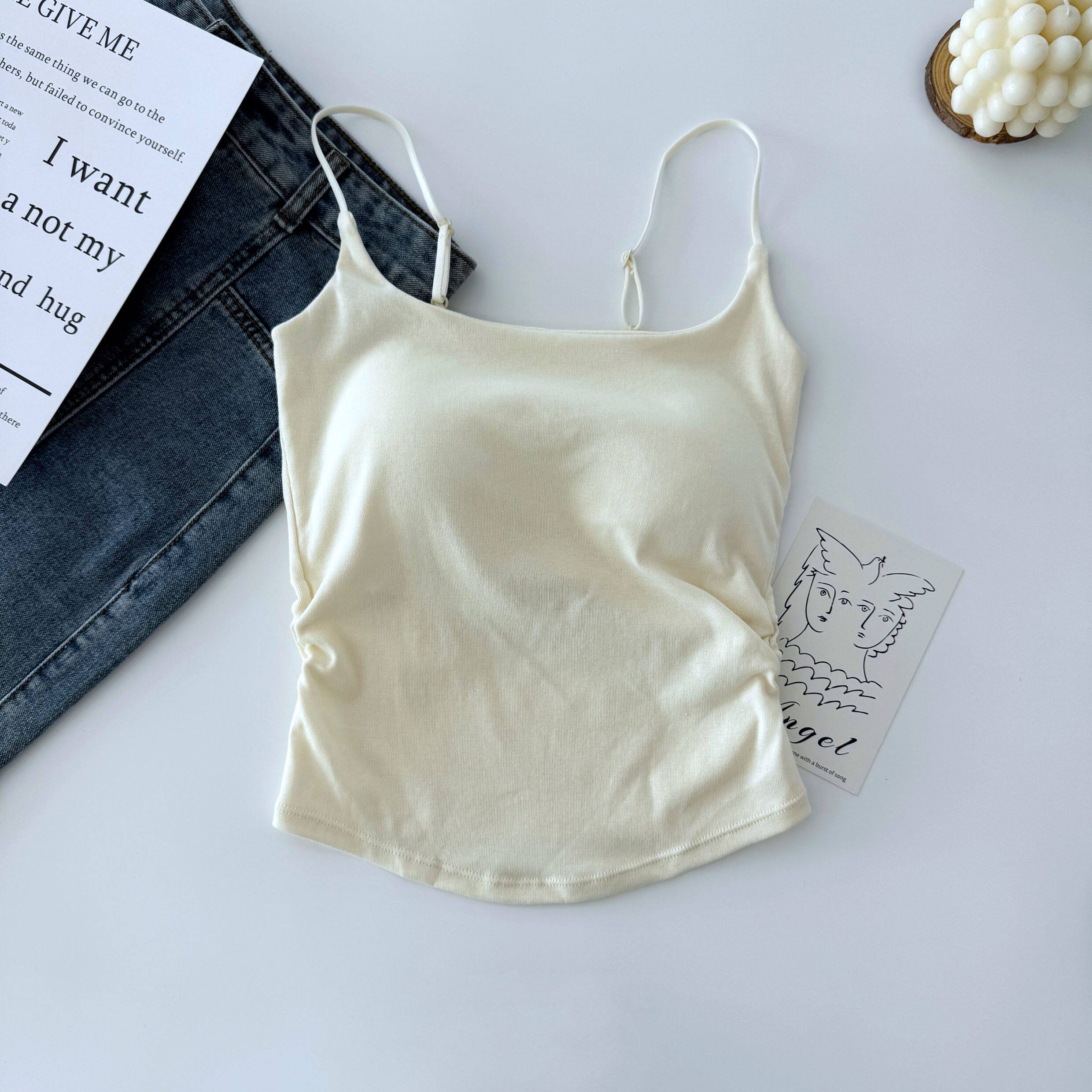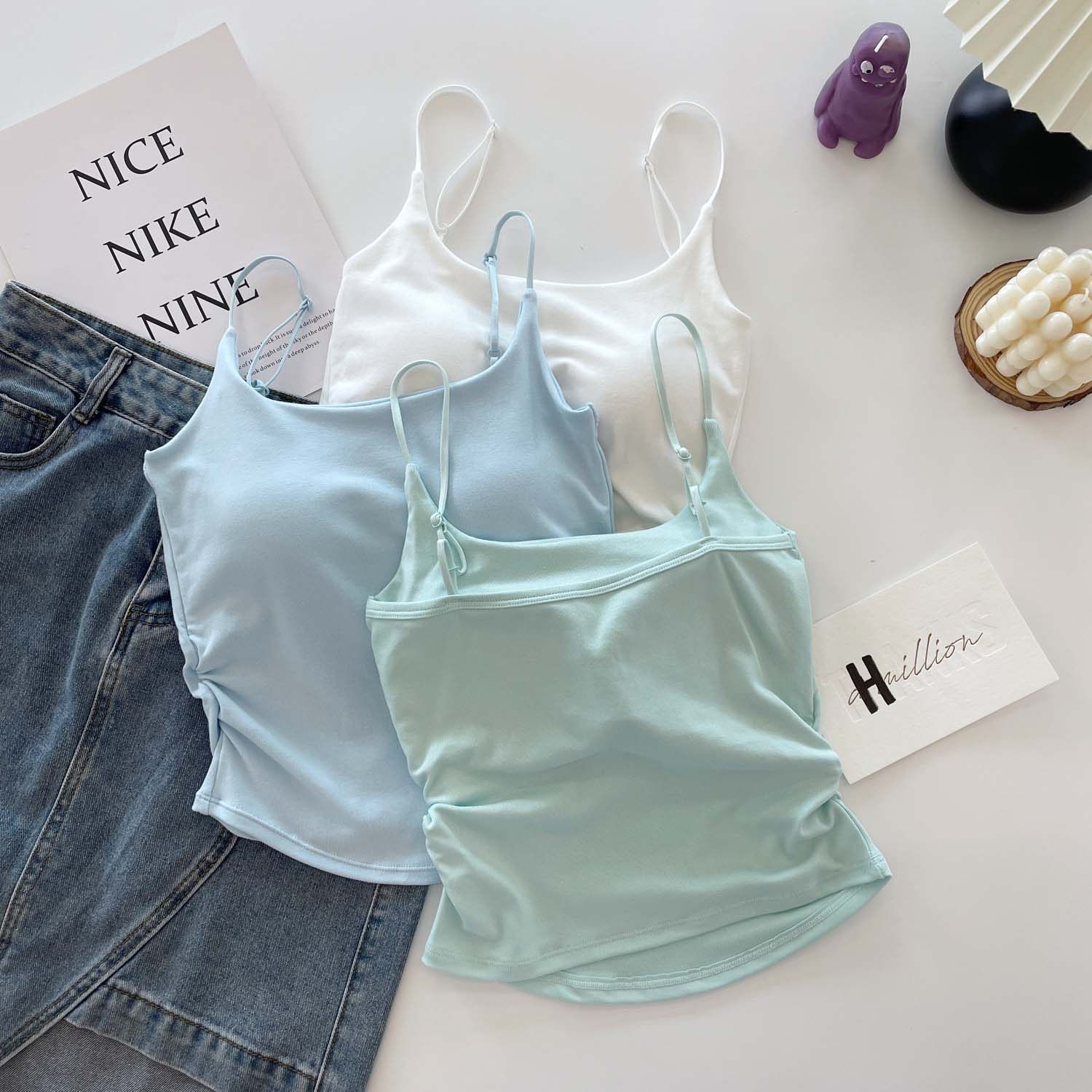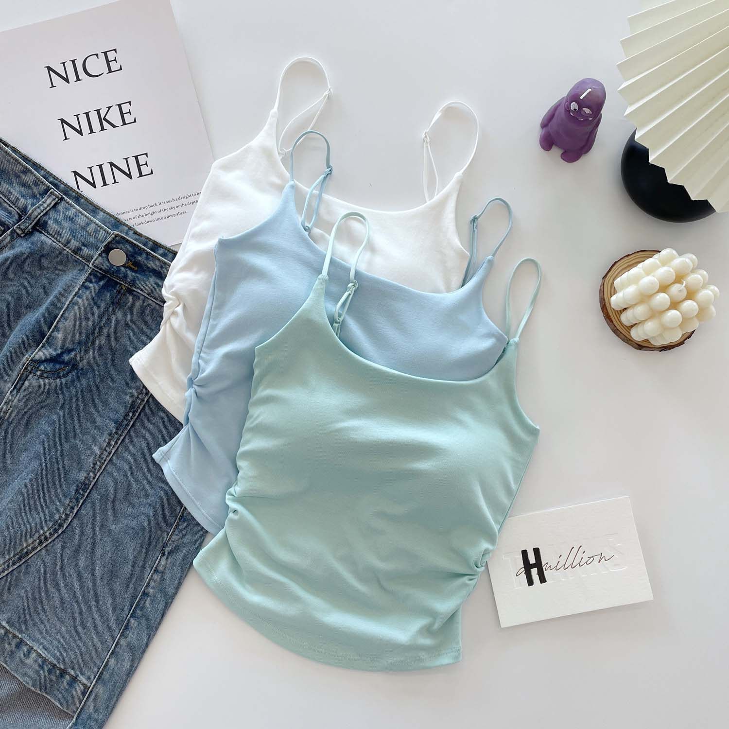 Fresh and Pure Style Design Pleated Camisole for Women, Suitable for Outerwear or Layering, with Chest Pads, Slim Fit, Beautiful Back Top for Summer