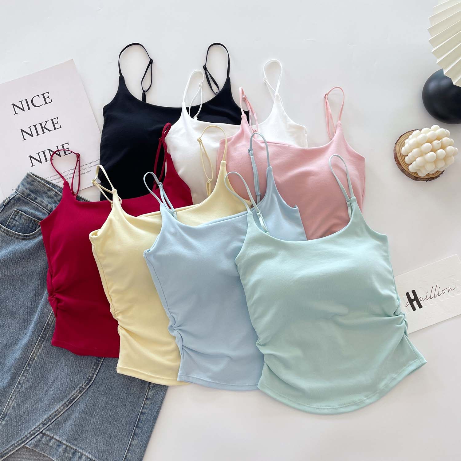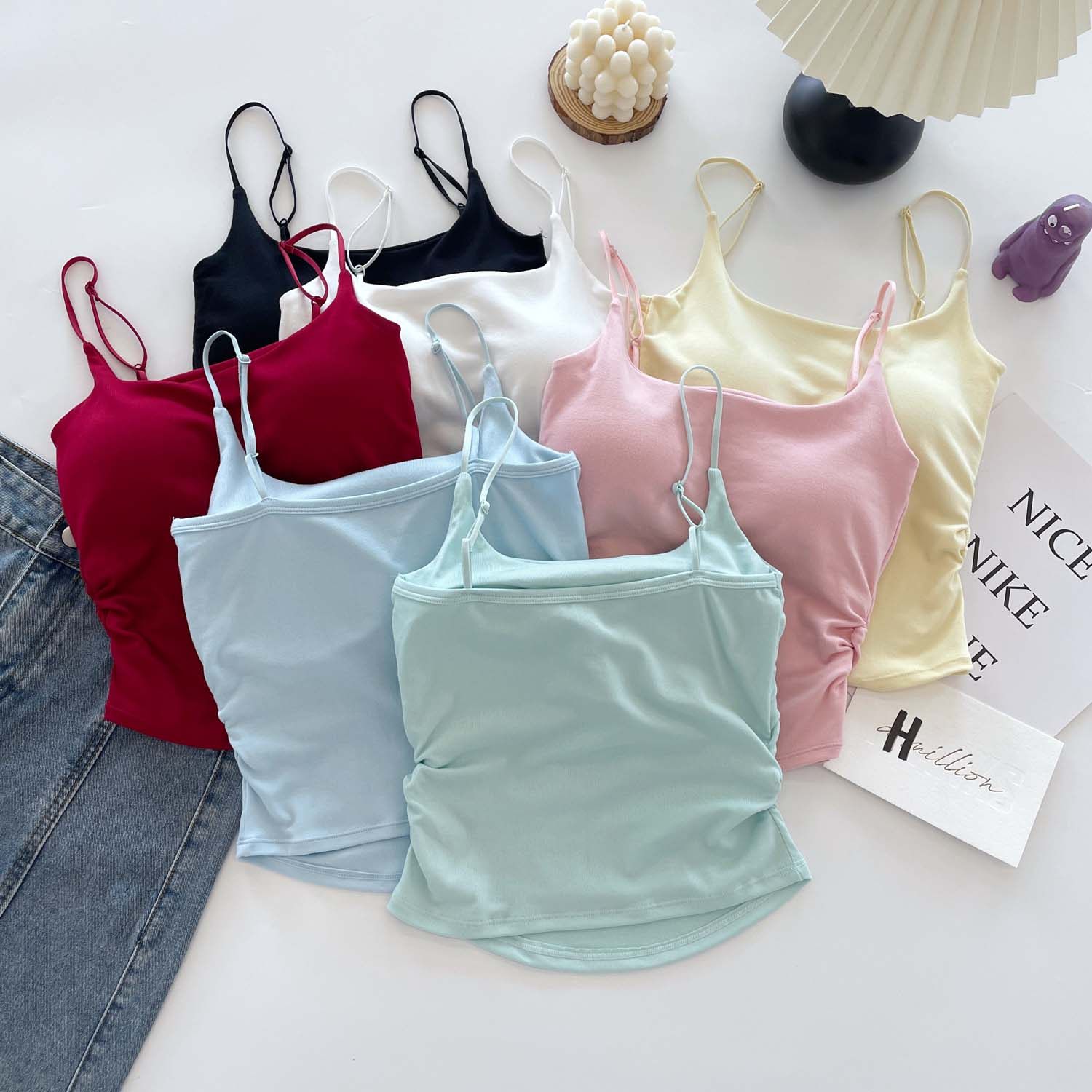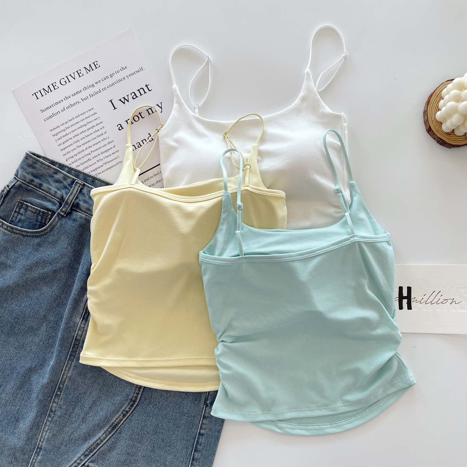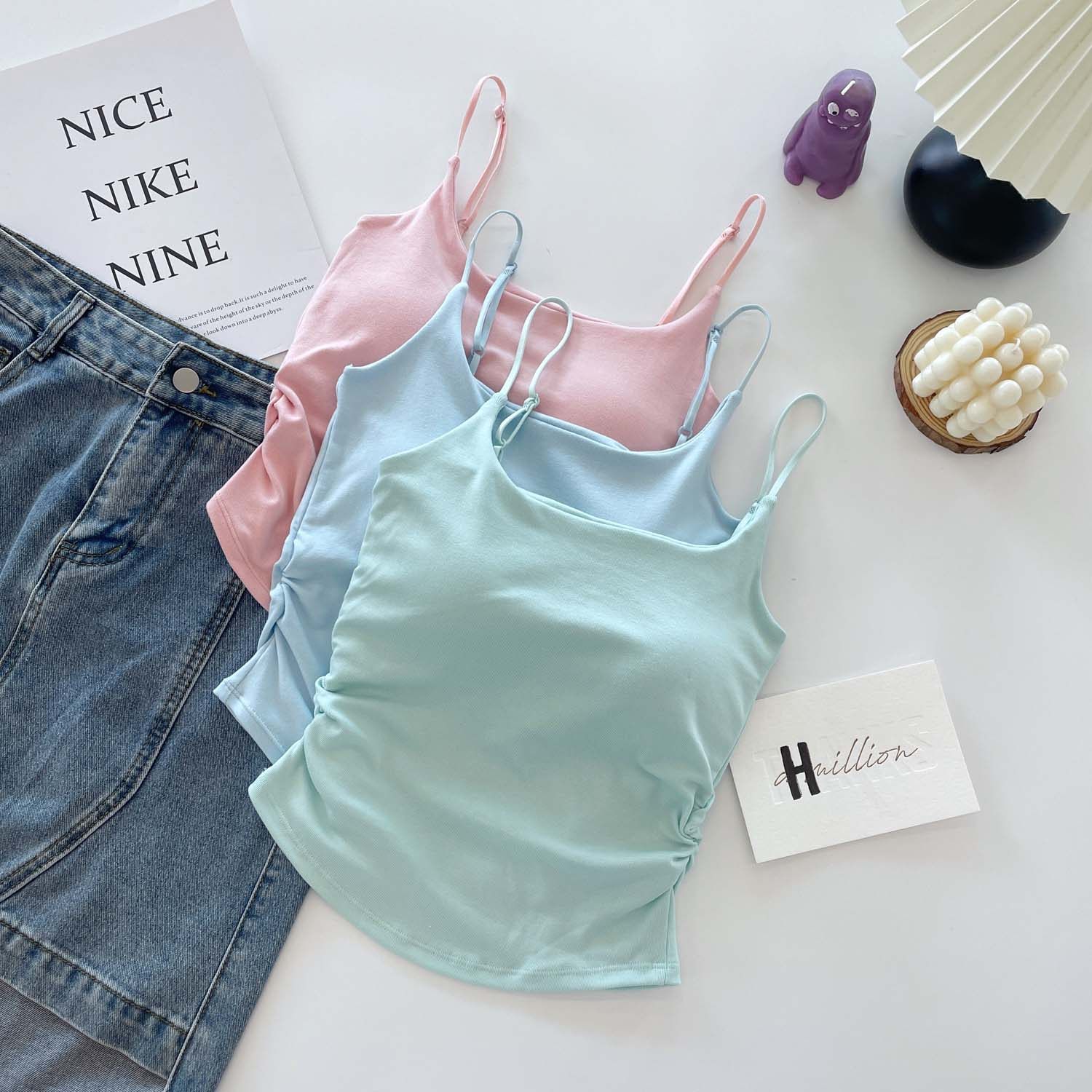 Fresh and Pure Style Design Pleated Camisole for Women, Suitable for Outerwear or Layering, with Chest Pads, Slim Fit, Beautiful Back Top for Summer