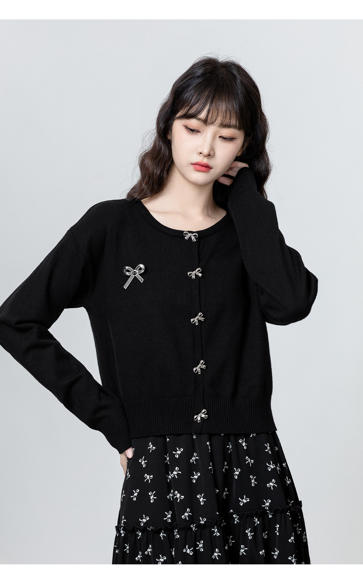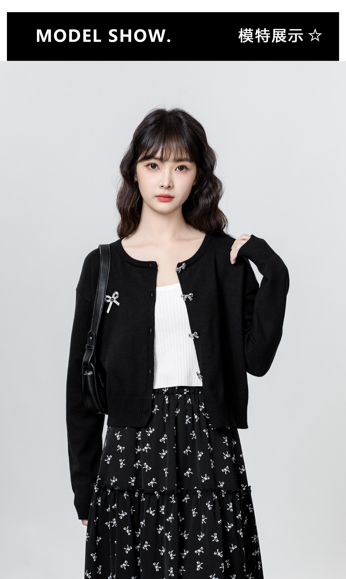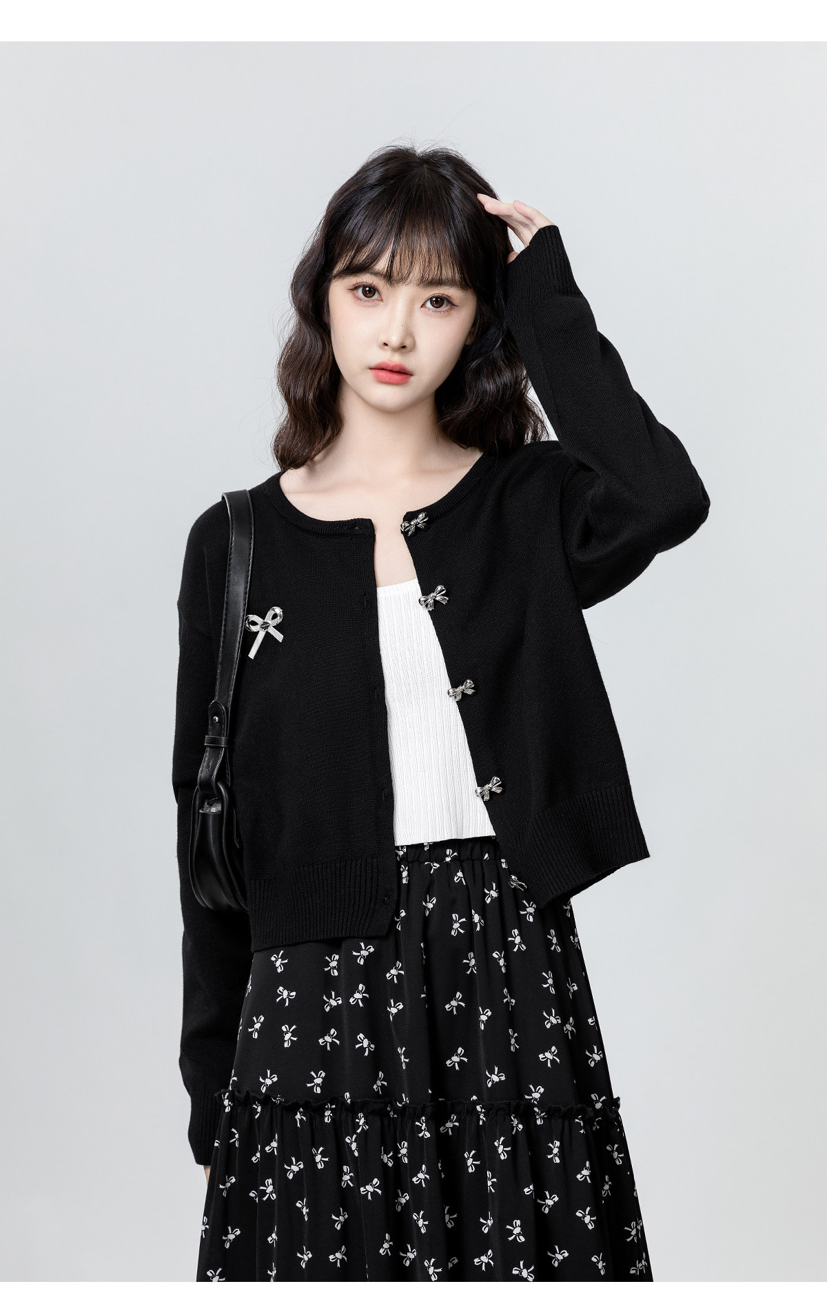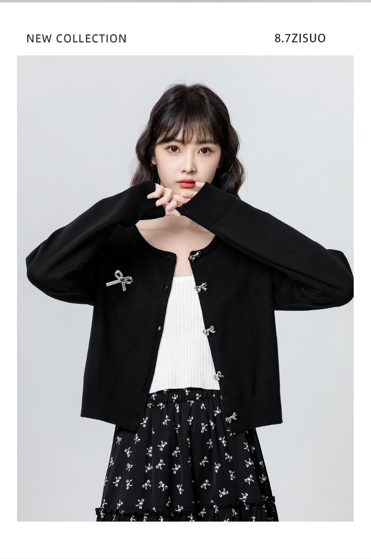 Black Knitted Cardigan Jacket for Women, Spring and Autumn 2025 New Style, Niche Design, Slimming Sweater, Short Outerwear Top