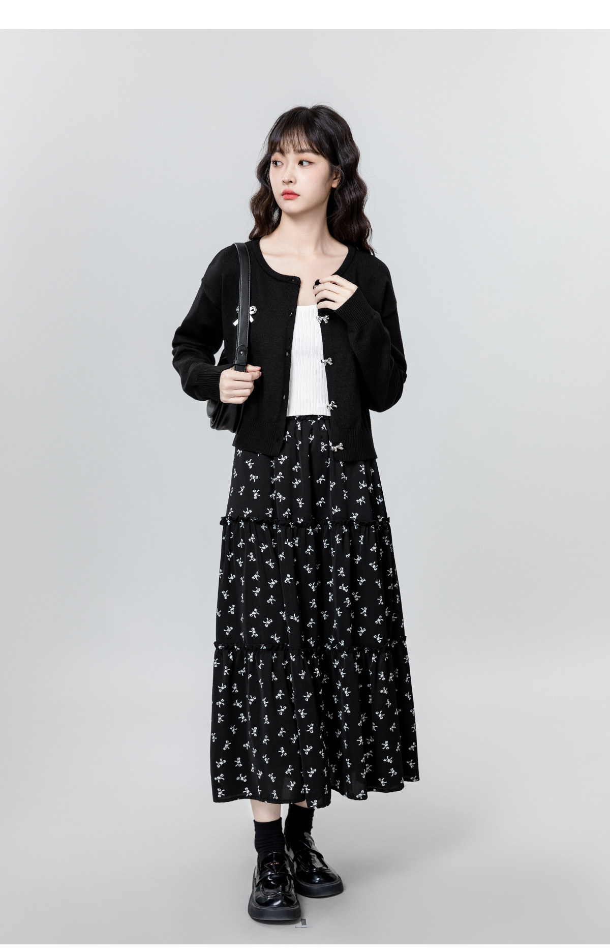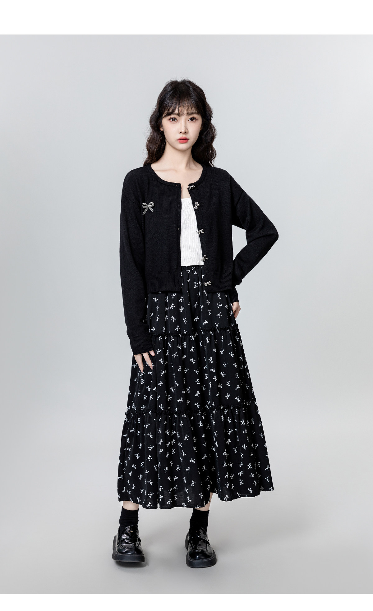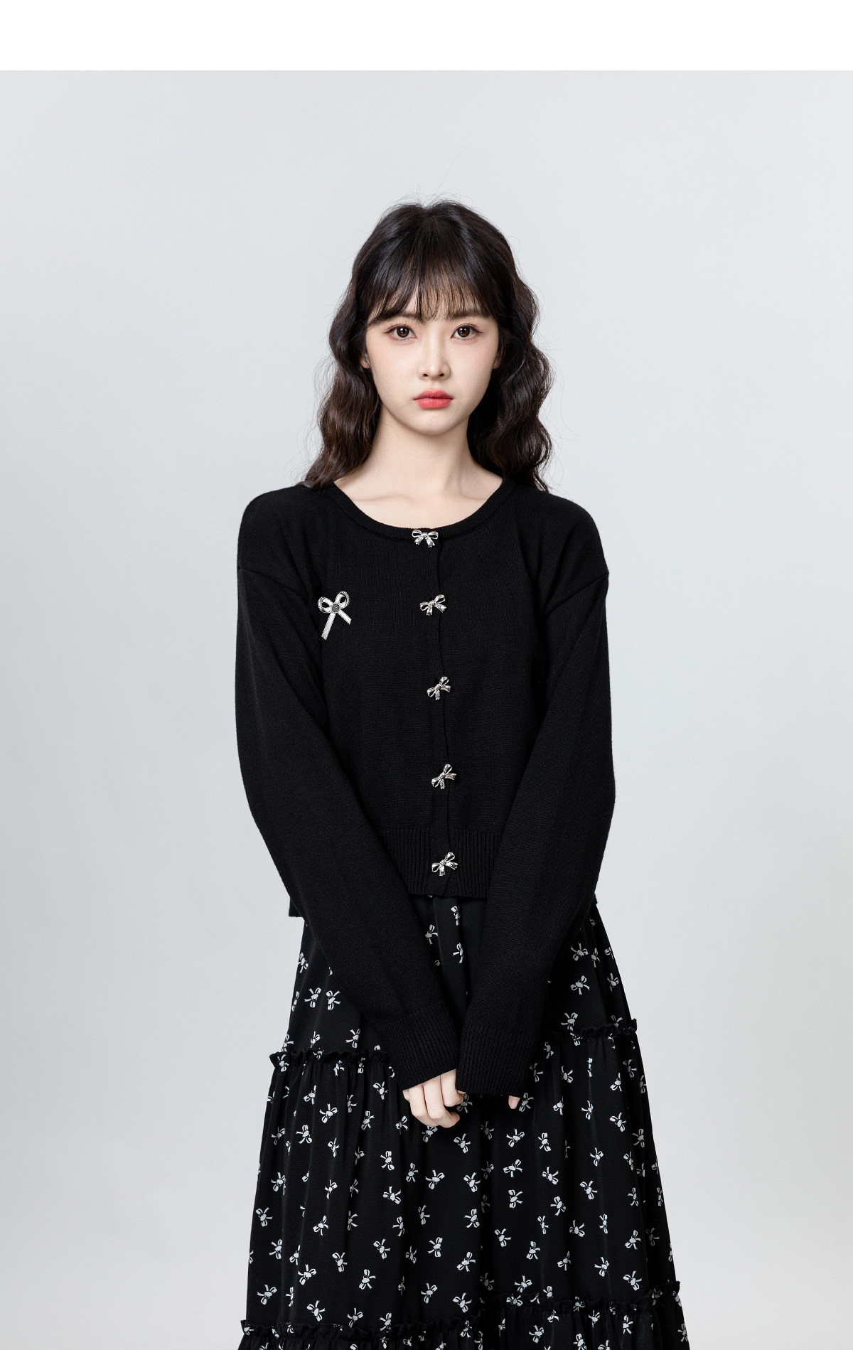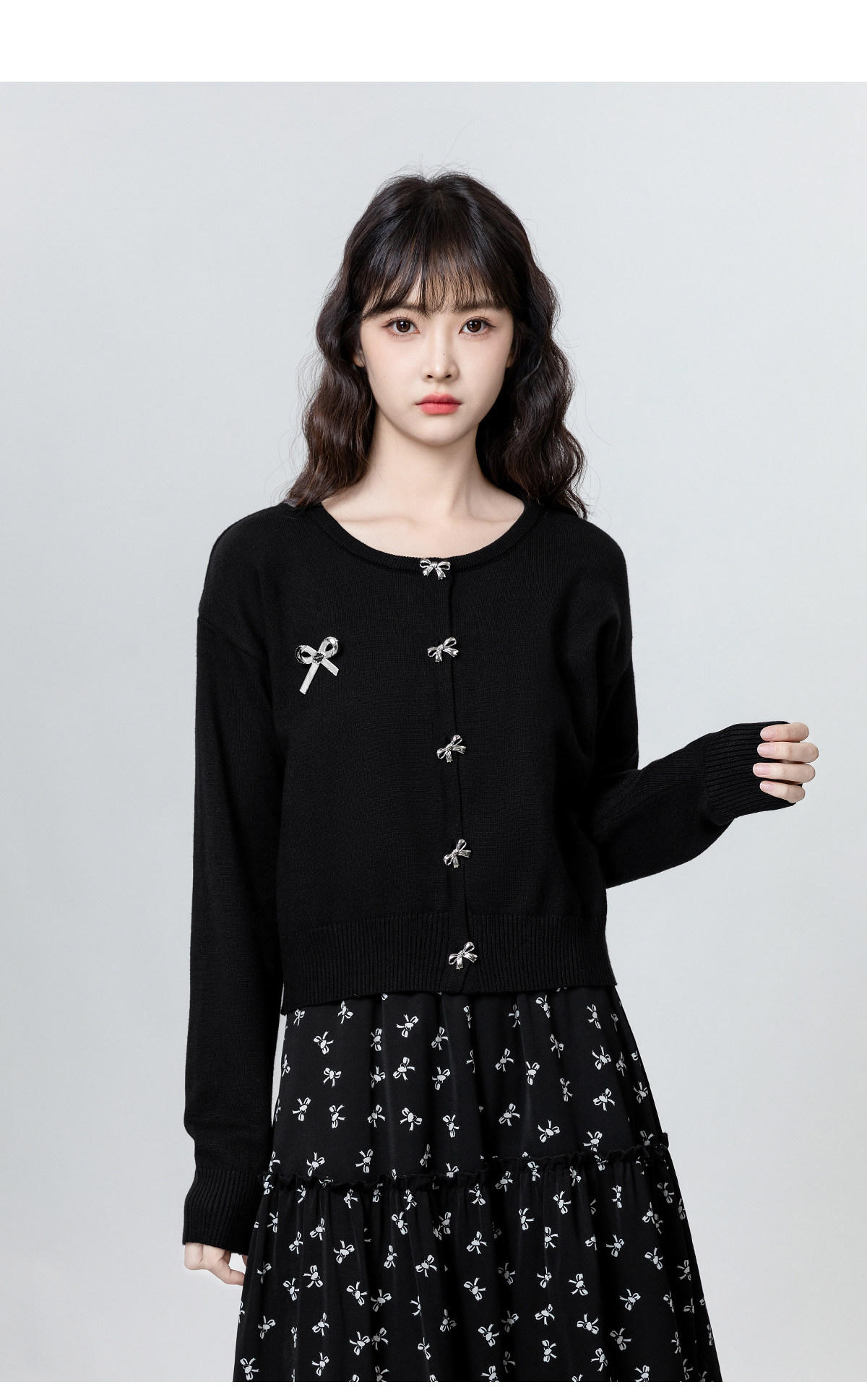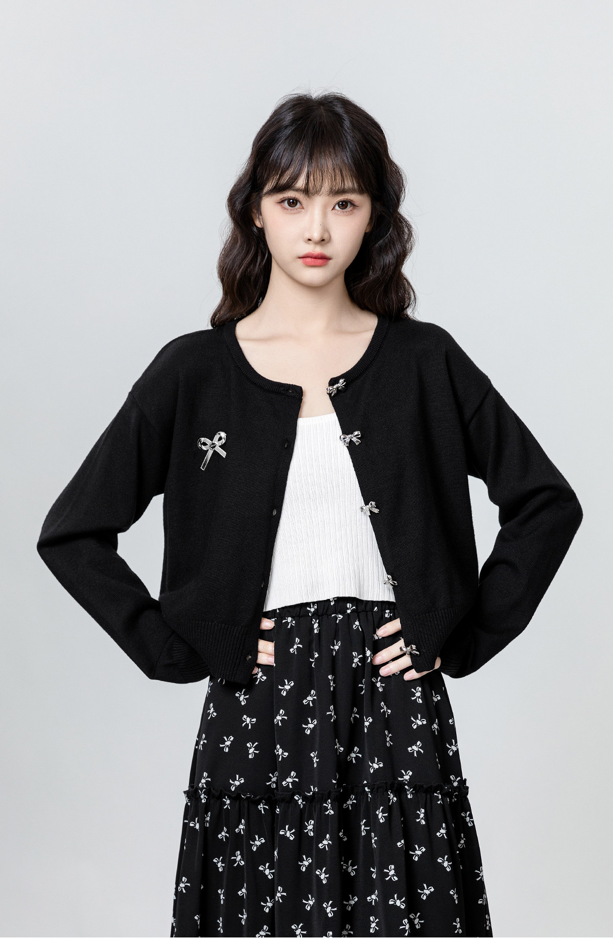Black Knitted Cardigan Jacket for Women, Spring and Autumn 2025 New Style, Niche Design, Slimming Sweater, Short Outerwear Top