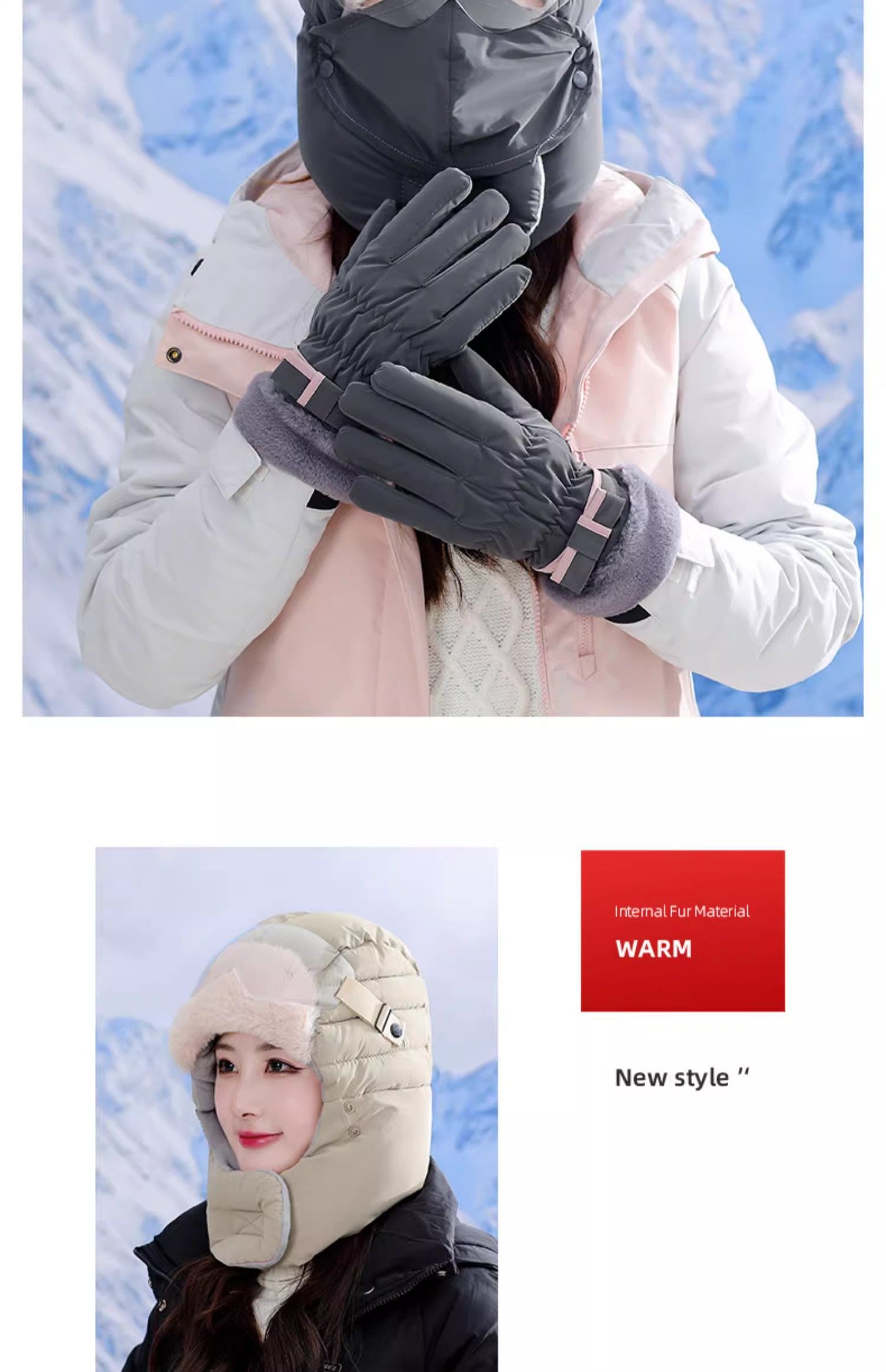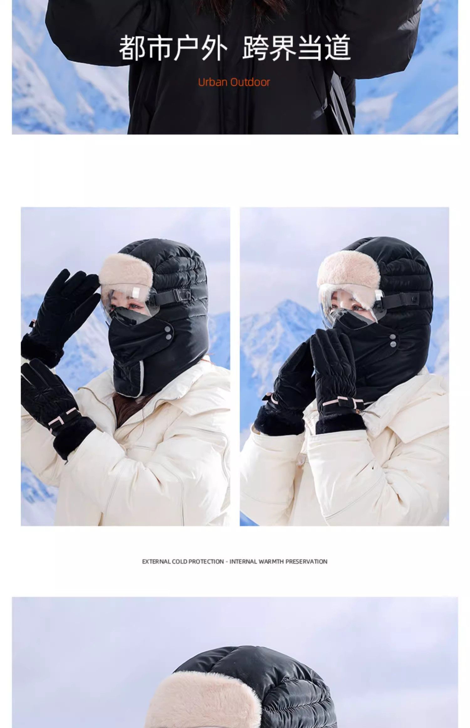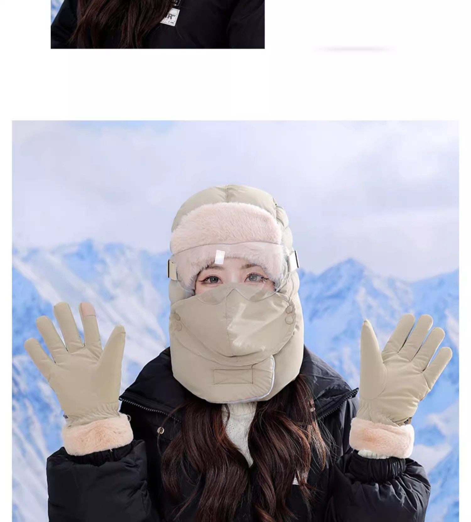Minus 40 Degrees Northeast Harbin Women's Winter Hat, Neck Warmer, Gloves Three-Piece Set, Glasses, Lei Feng Hat, Men's Fleece-Lined, Thickened, Warm