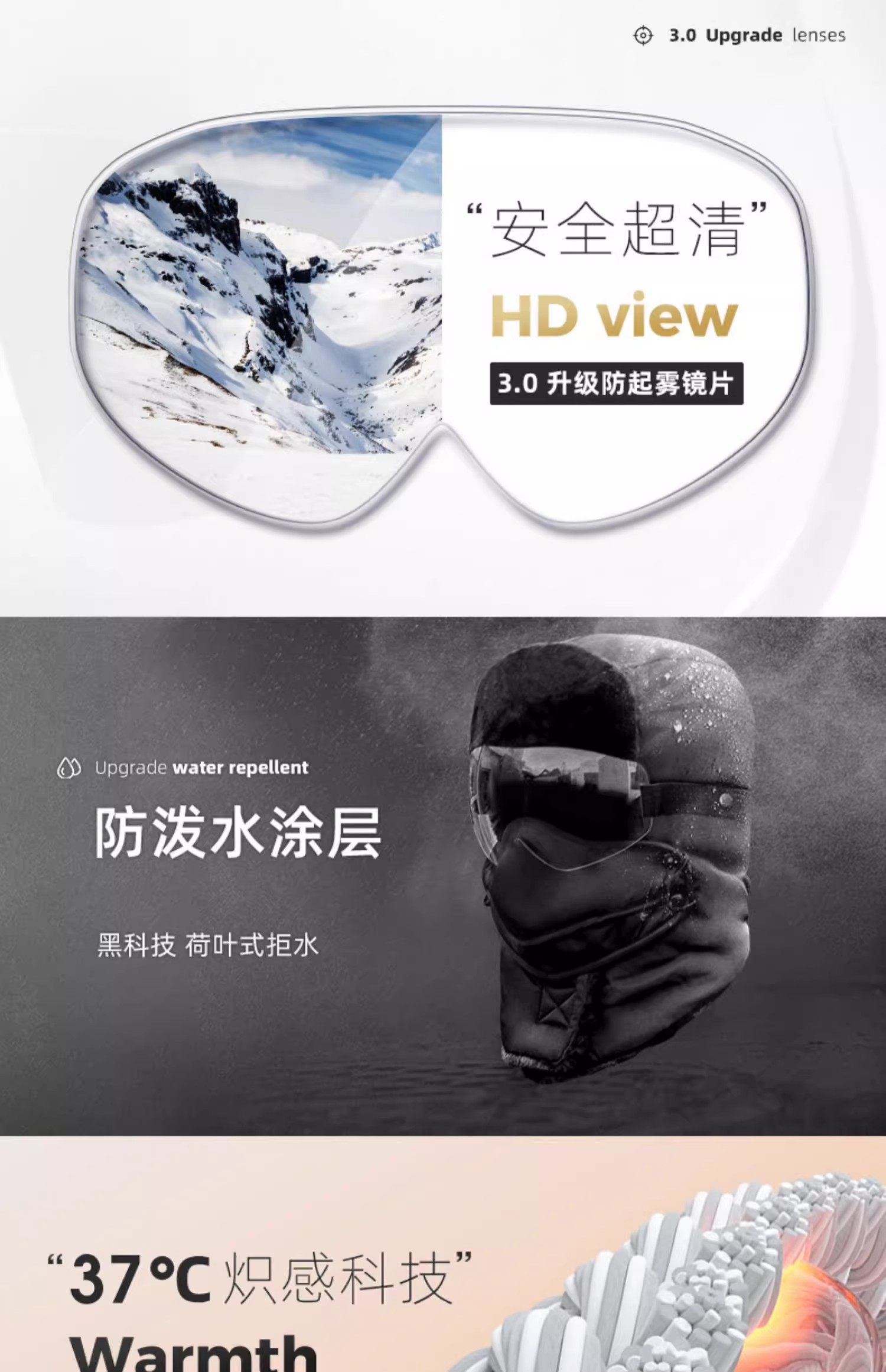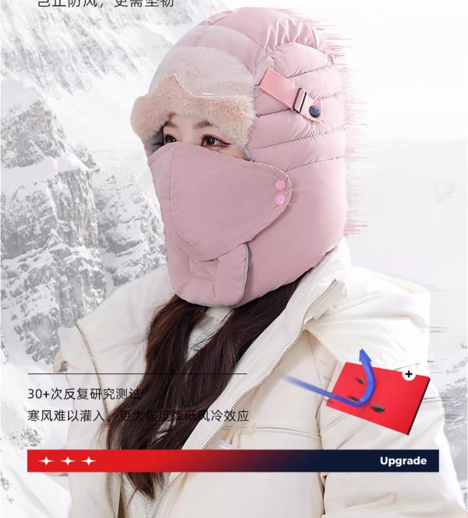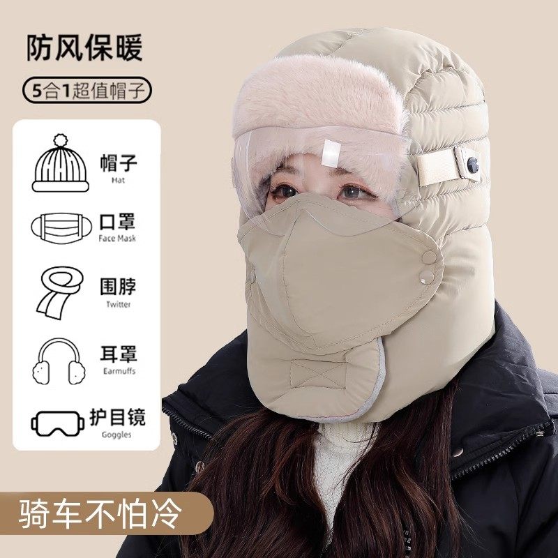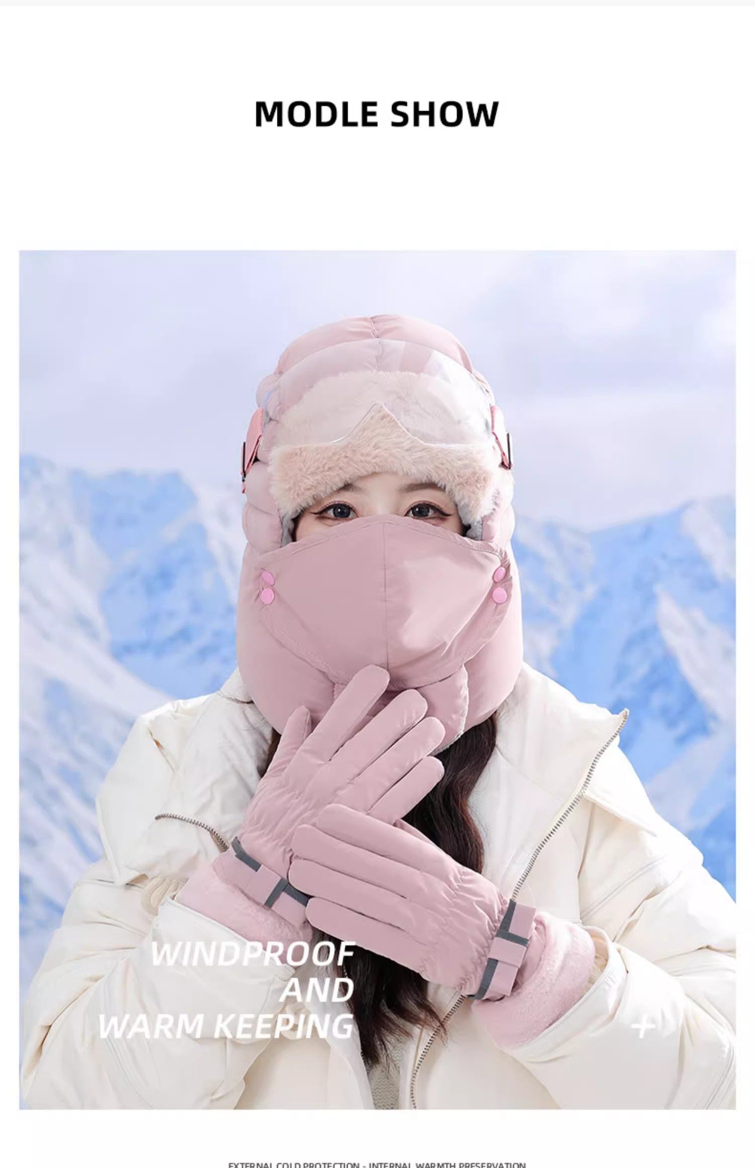 Minus 40 Degrees Northeast Harbin Women's Winter Hat, Neck Warmer, Gloves Three-Piece Set, Glasses, Lei Feng Hat, Men's Fleece-Lined, Thickened, Warm