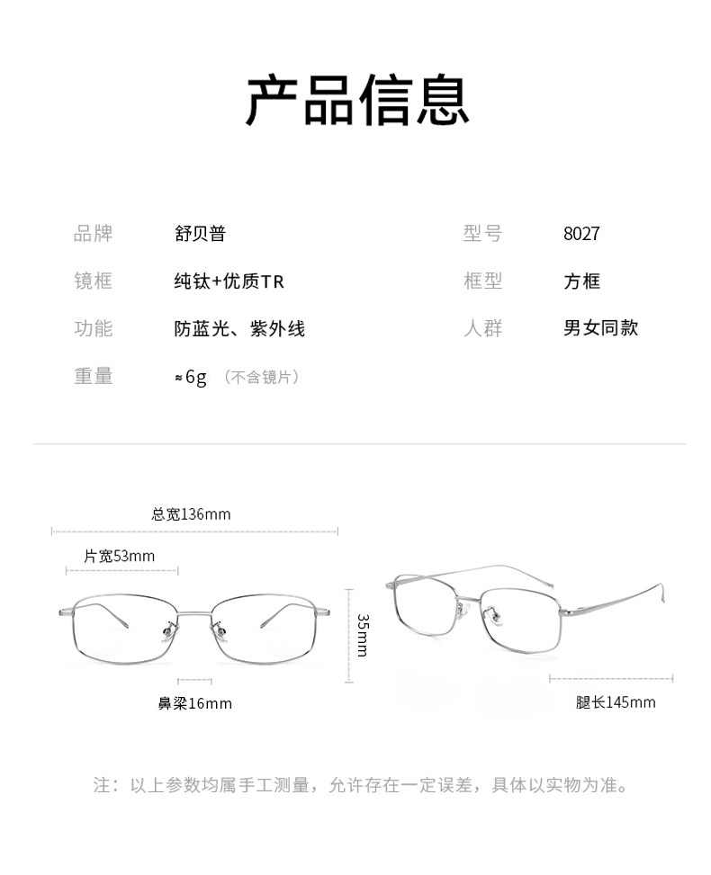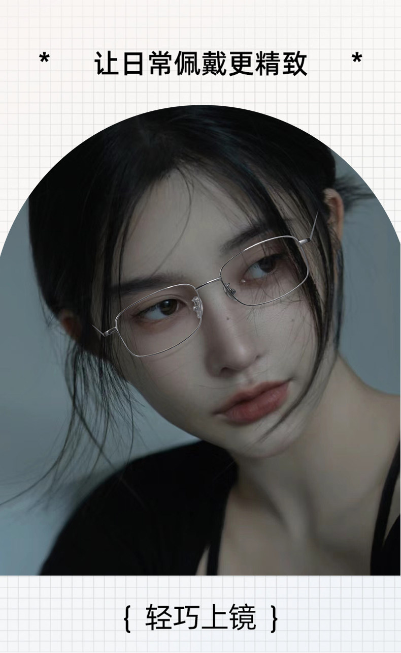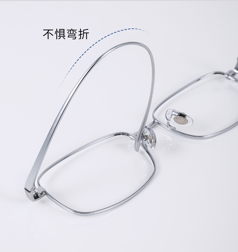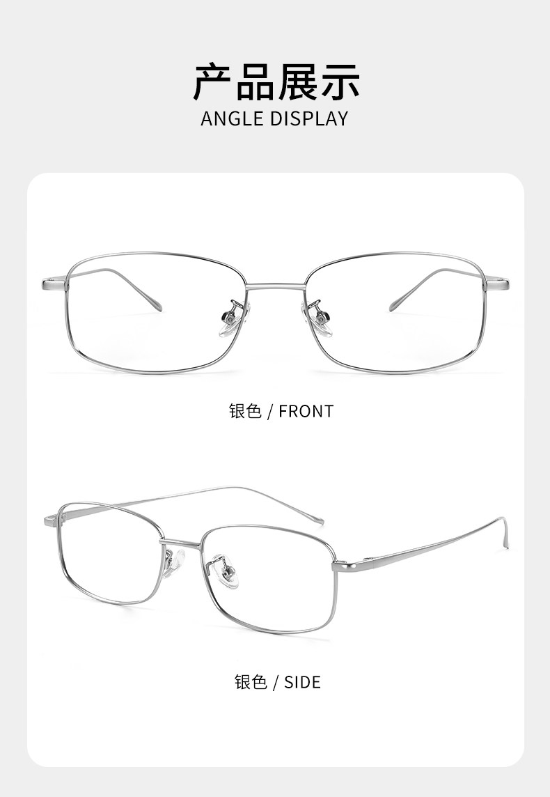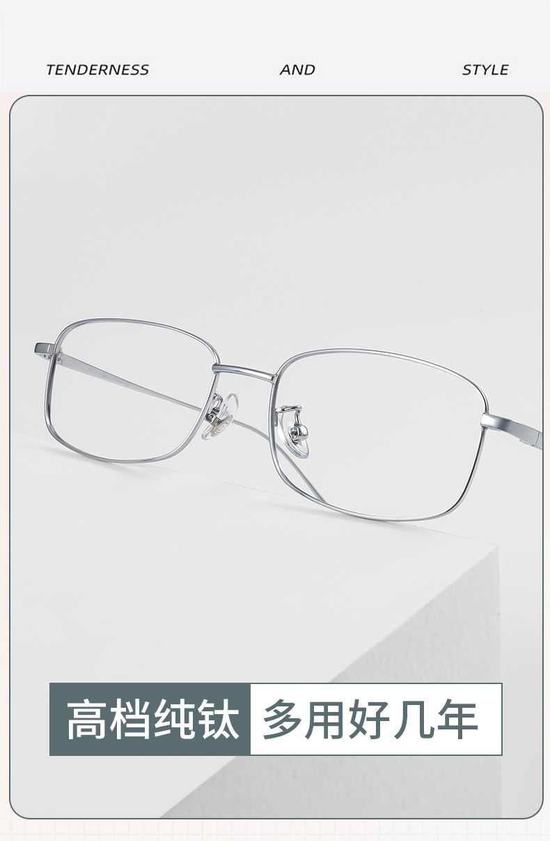 Geniales gafas cuadradas de titanio puro plateado para mujeres miopes, se pueden equipar con un marco de ojos anti-luz azul Estilo de marco estrecho Yujie