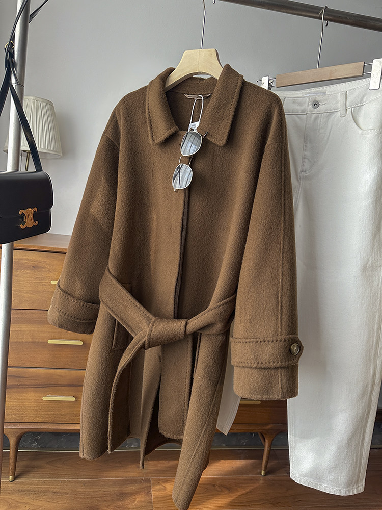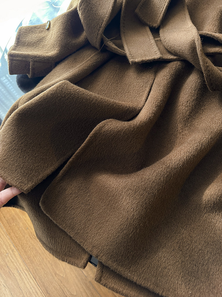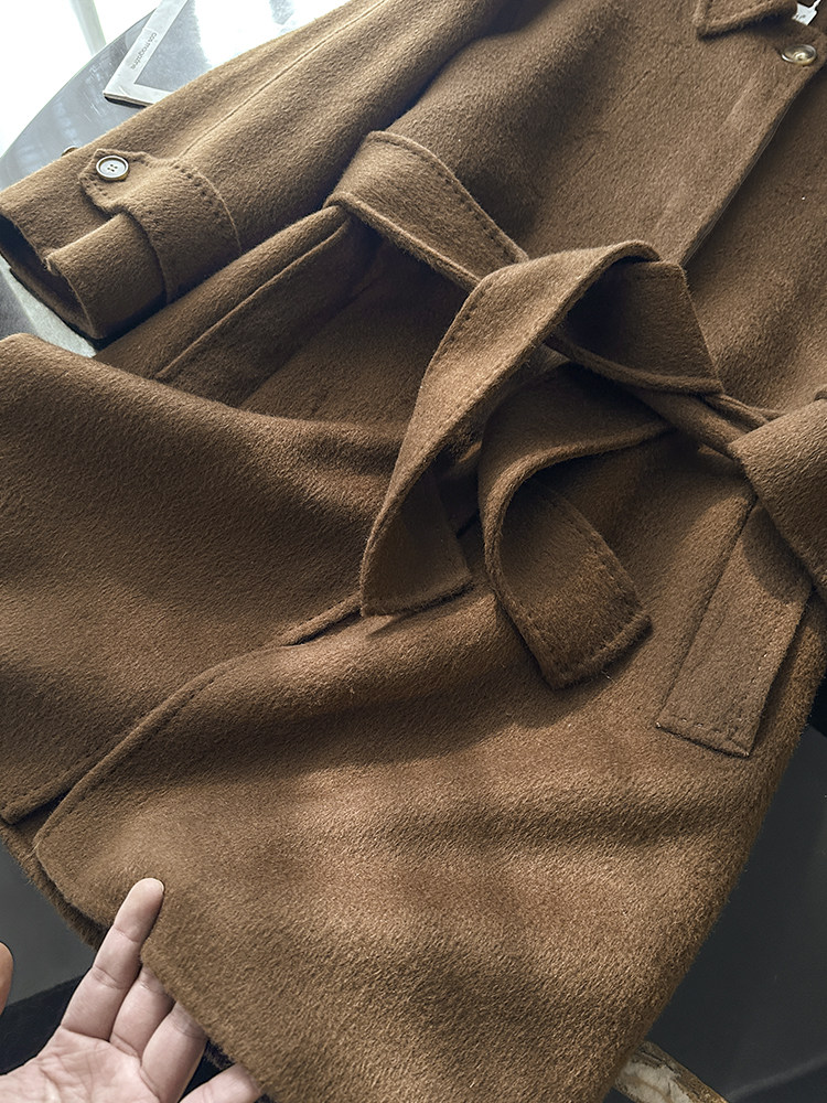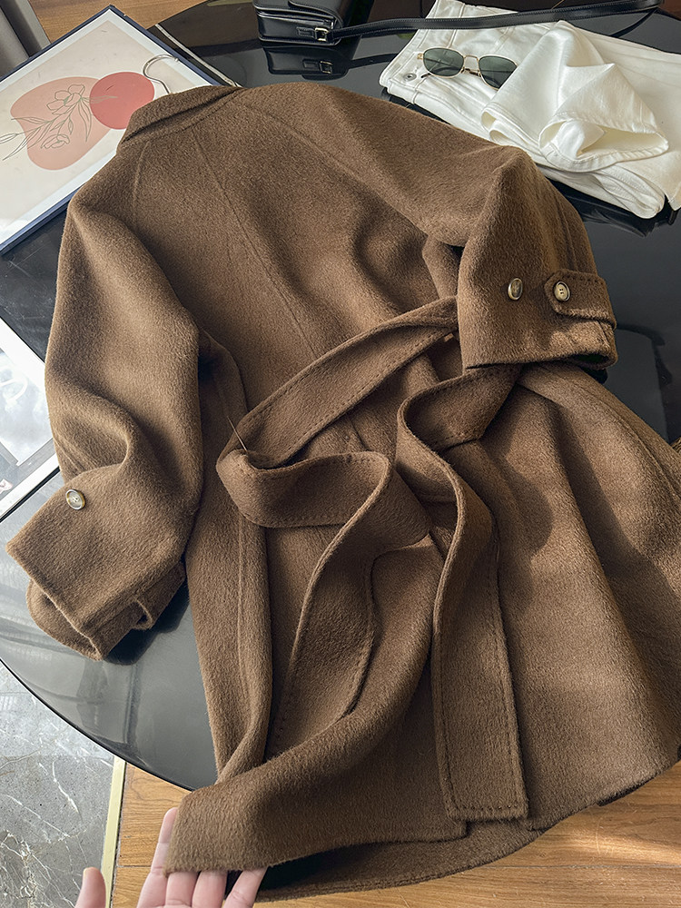 100 wool! love it to death! tobacco brown lapel classic british style belt double woolen coat jacket for women new