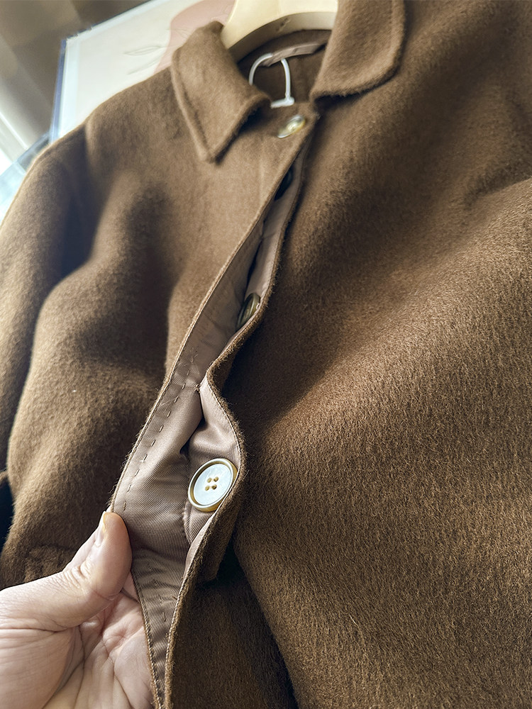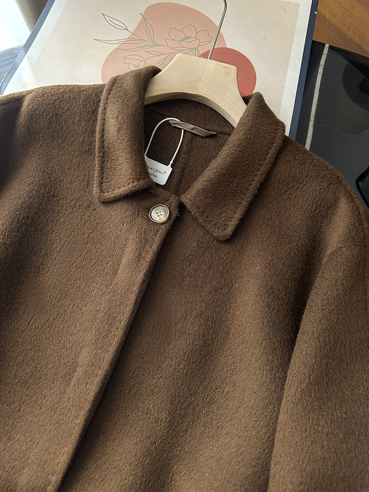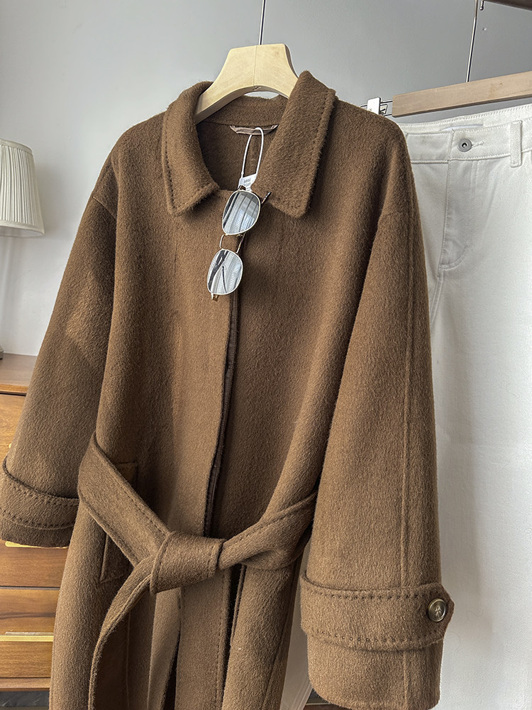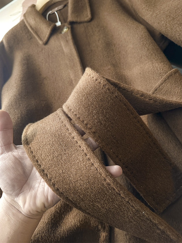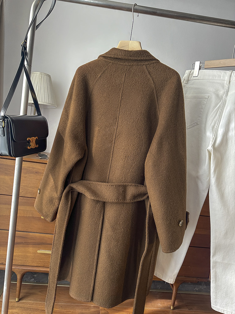 100 wool! love it to death! tobacco brown lapel classic british style belt double woolen coat jacket for women new