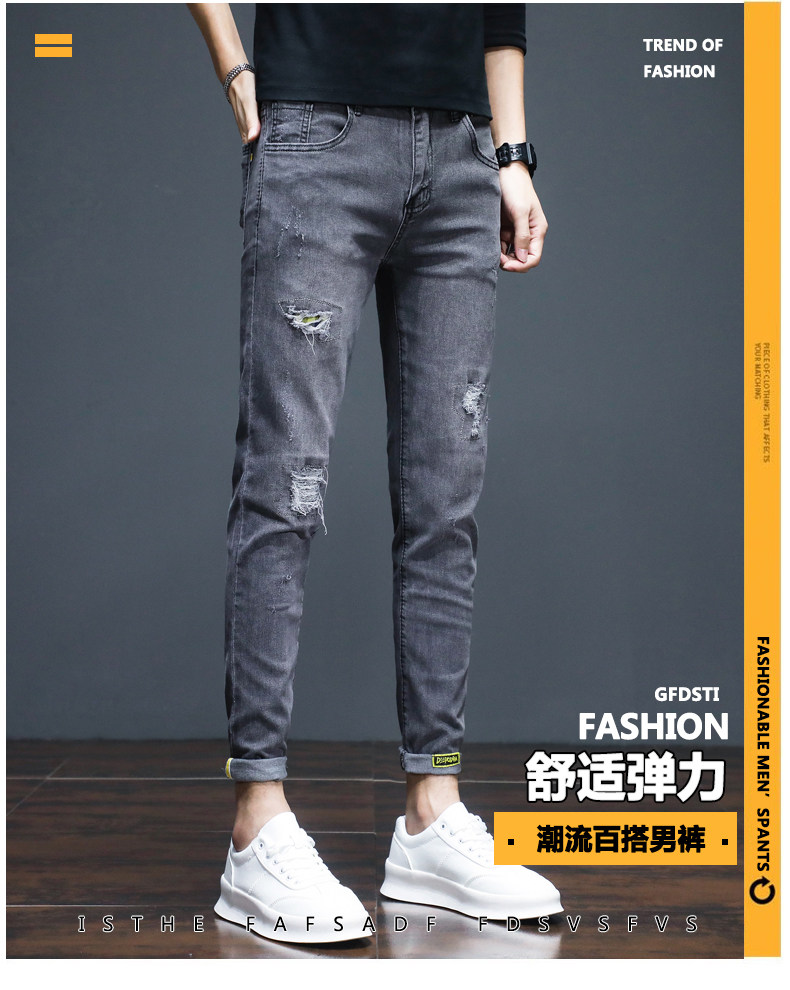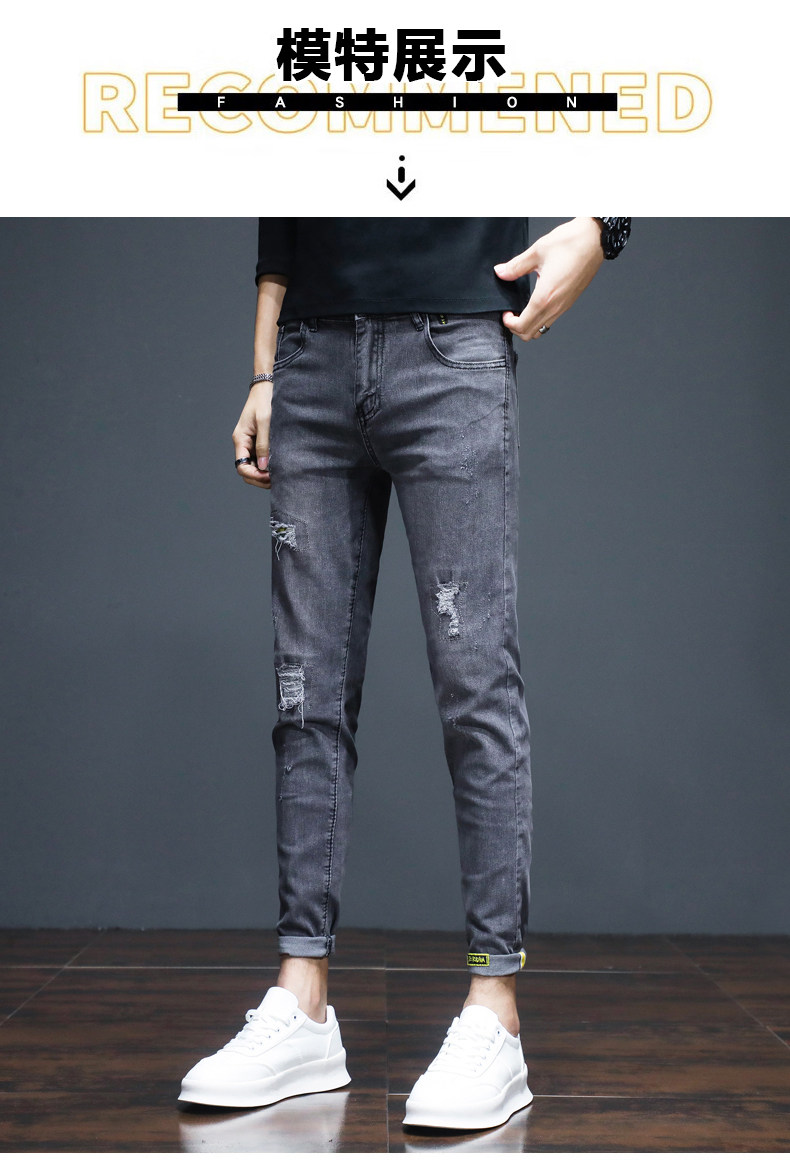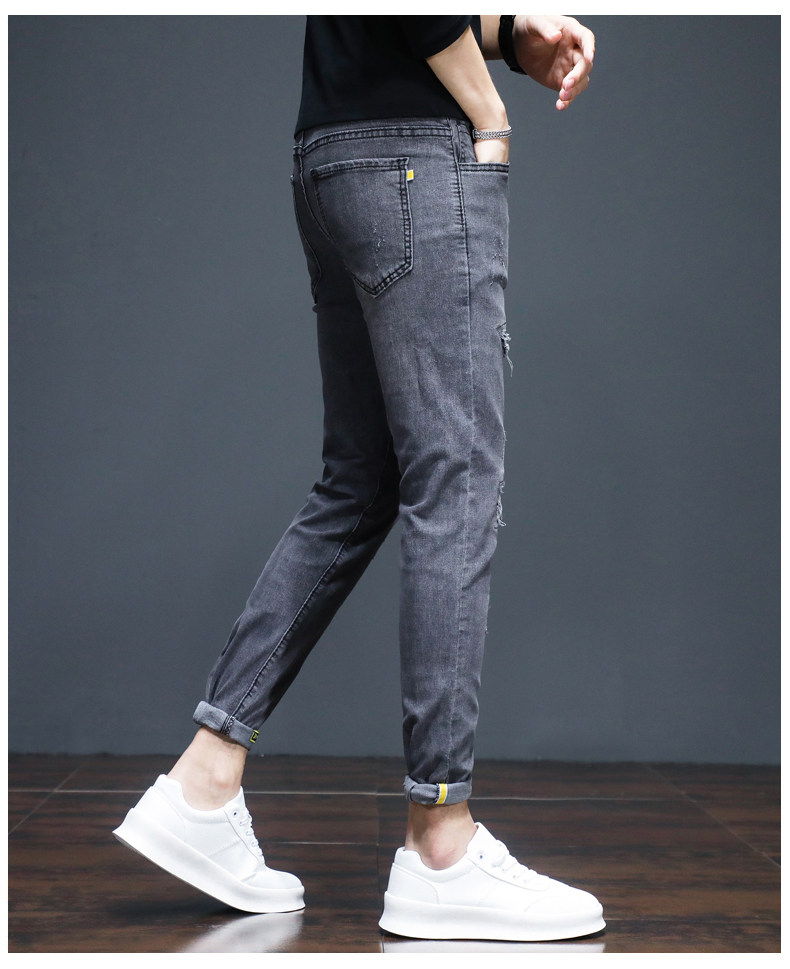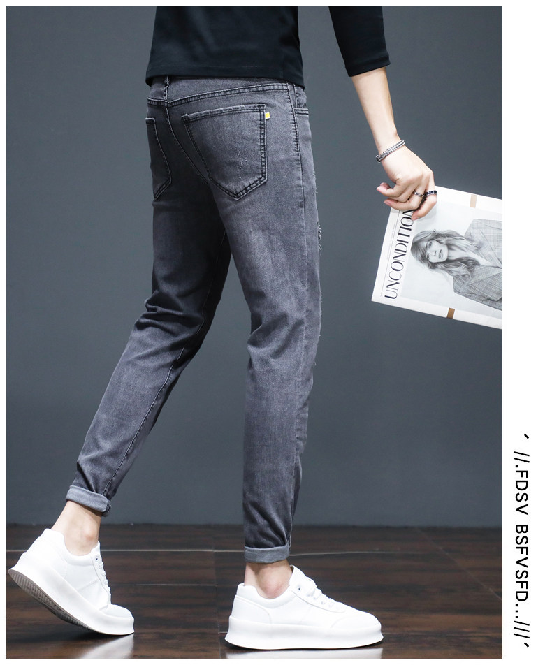 Jeans décontractés à neuf points pour hommes, pantalons à petites jambes, tendance, élastiques, nouvelle collection automne printemps 2024