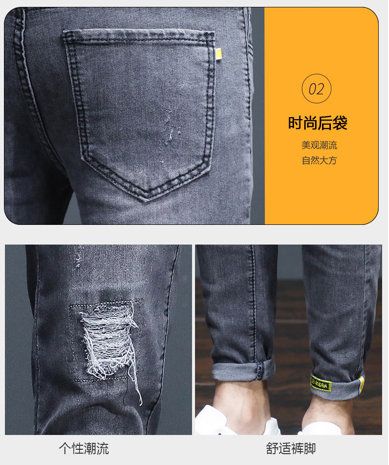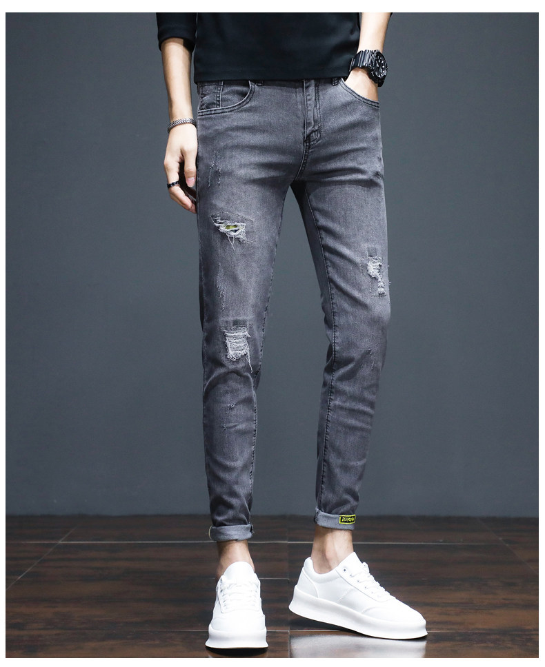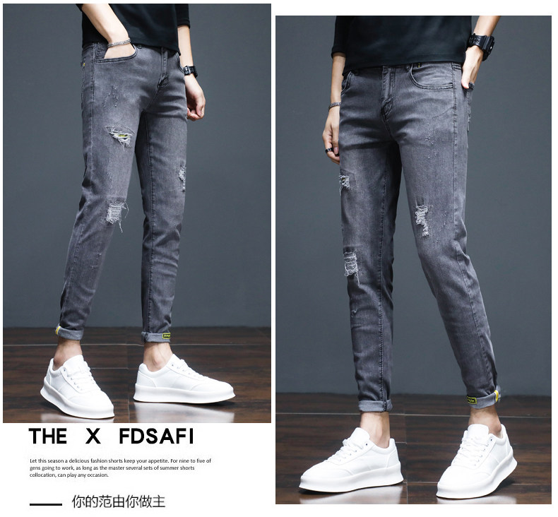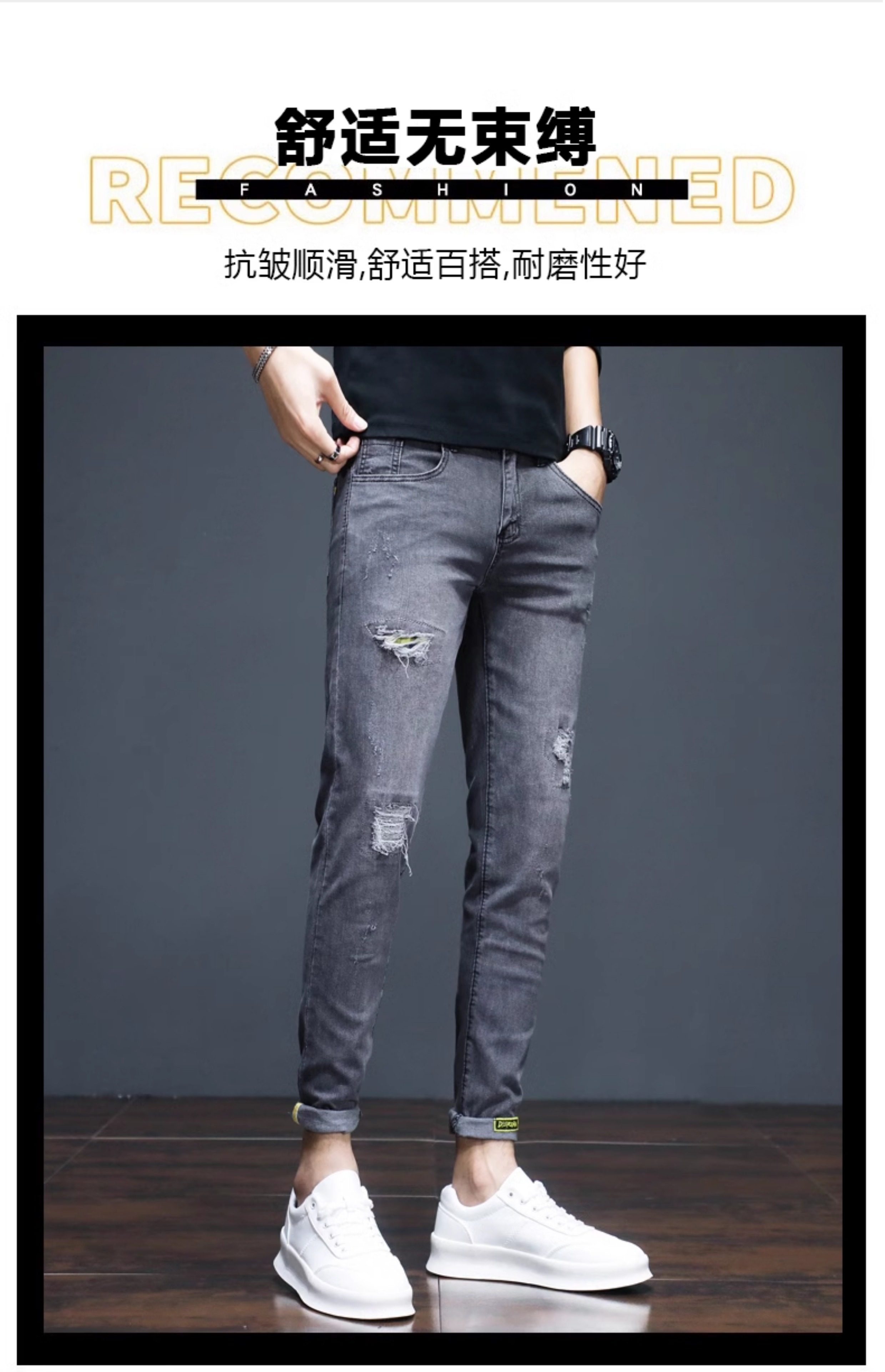 Jeans décontractés à neuf points pour hommes, pantalons à petites jambes, tendance, élastiques, nouvelle collection automne printemps 2024