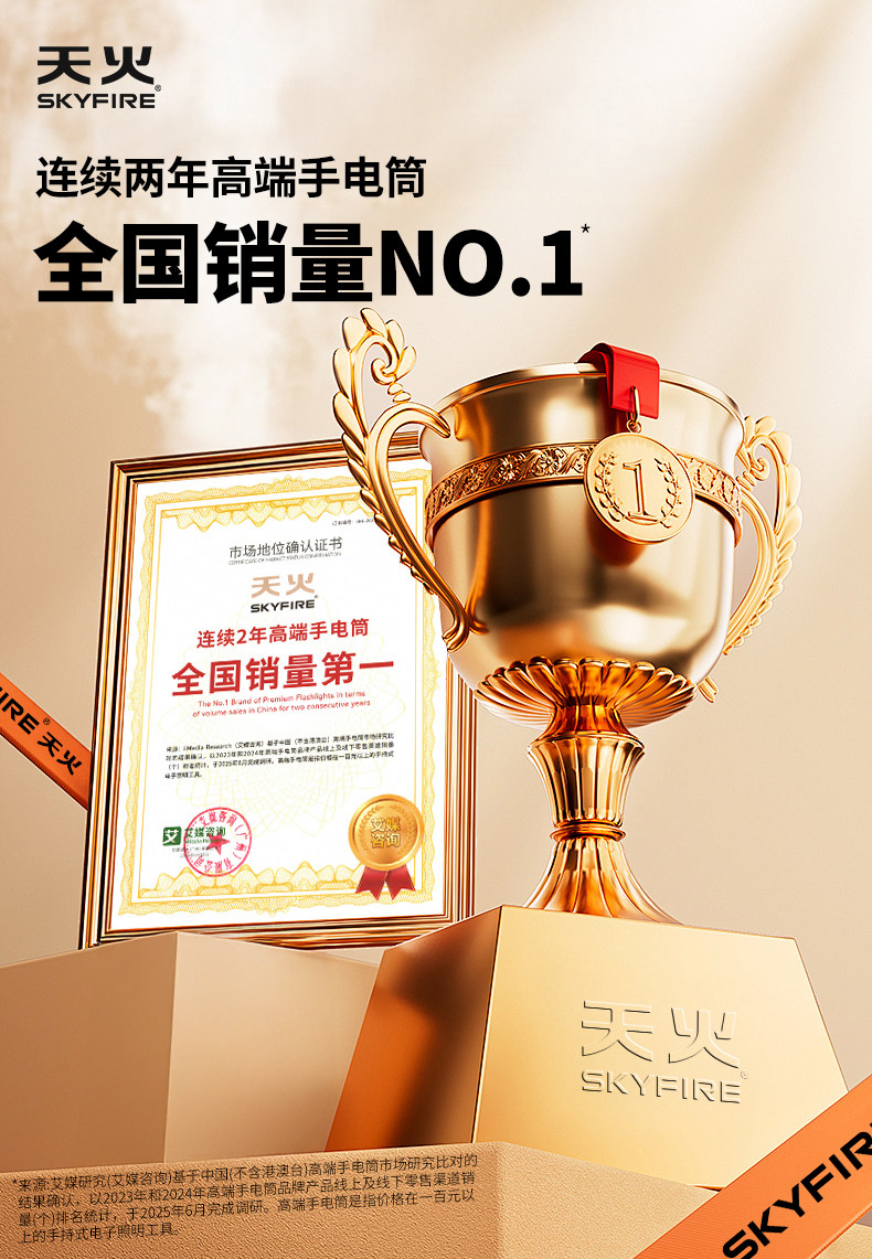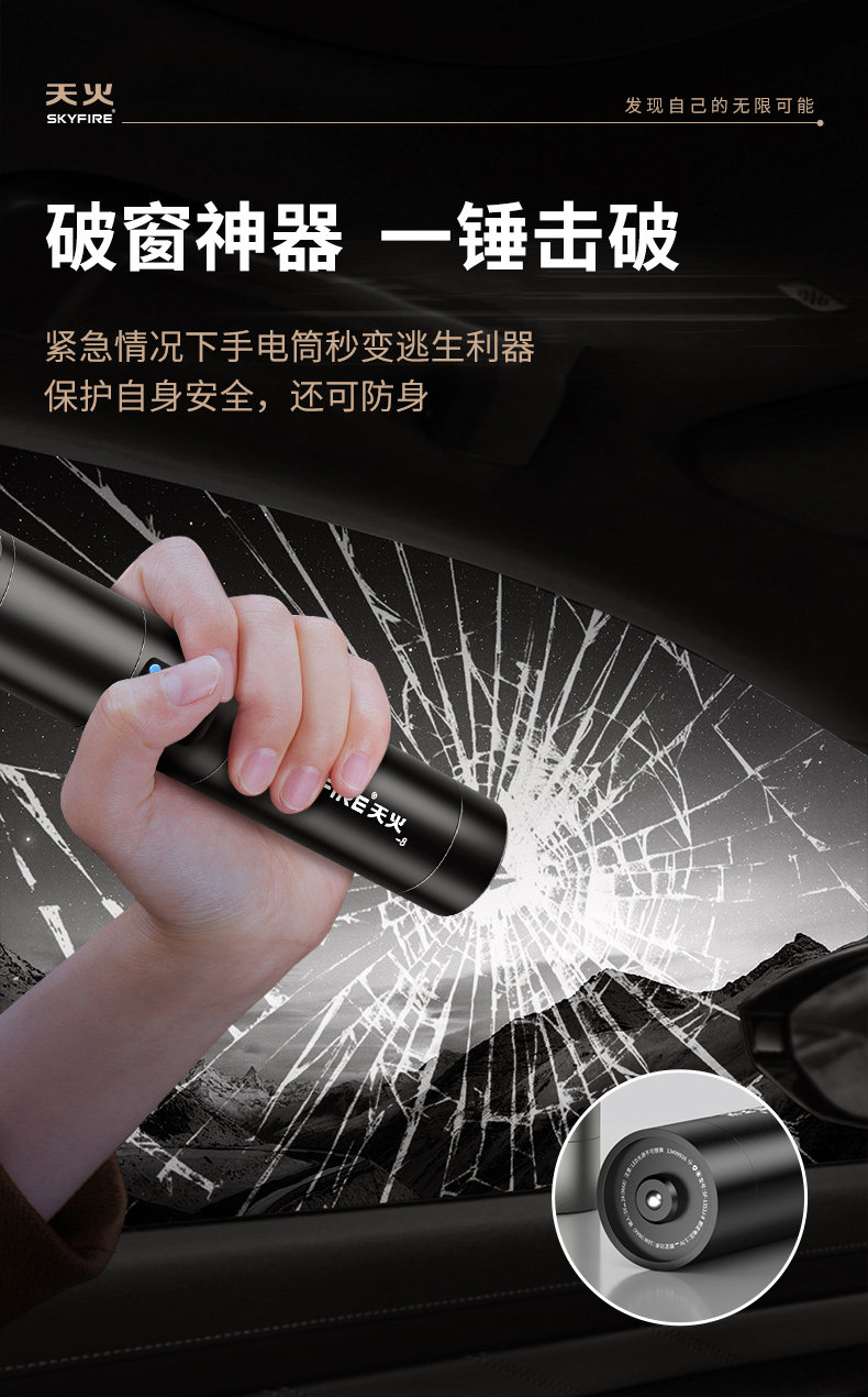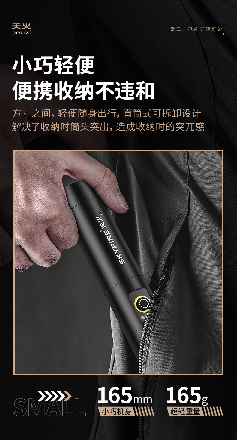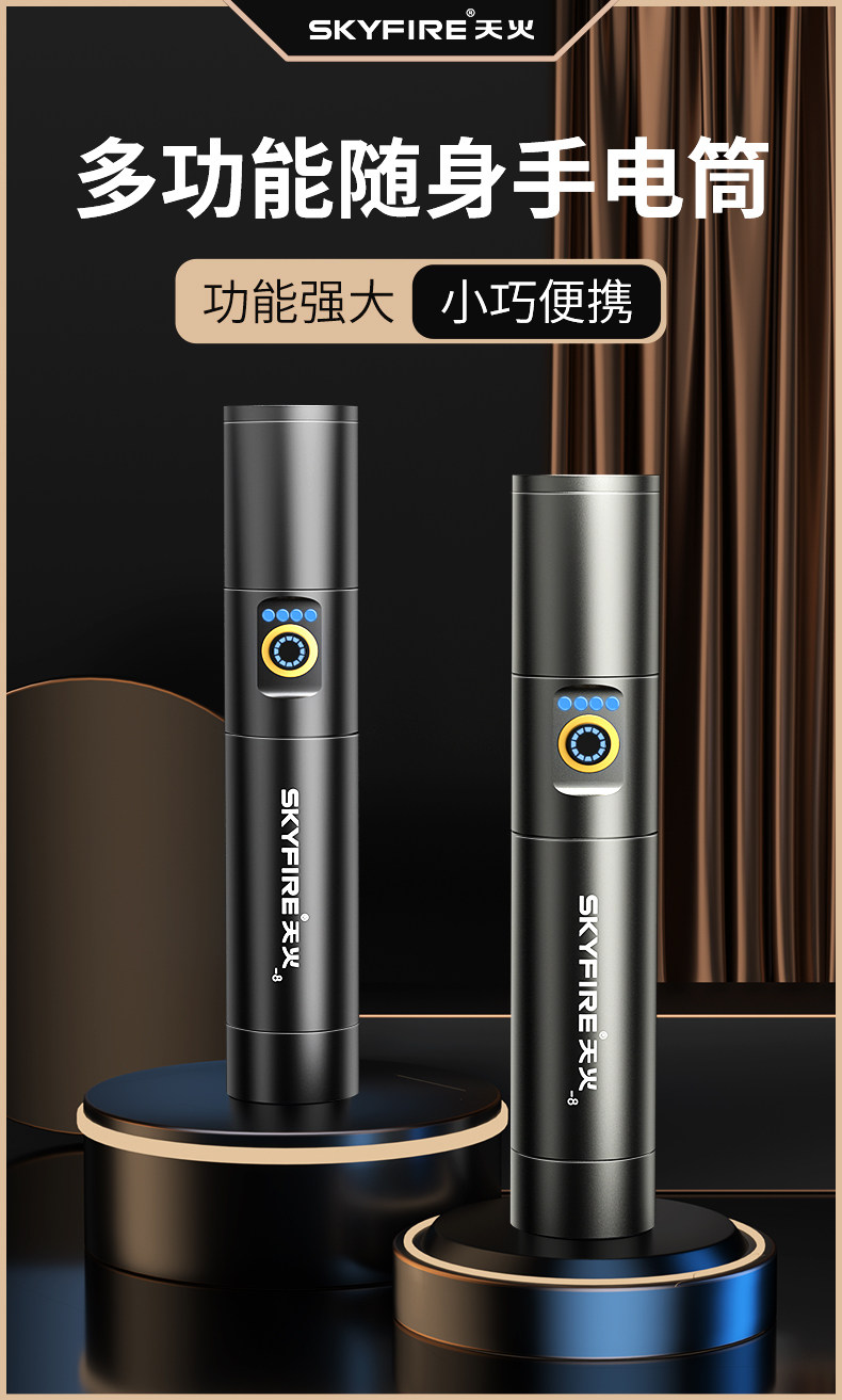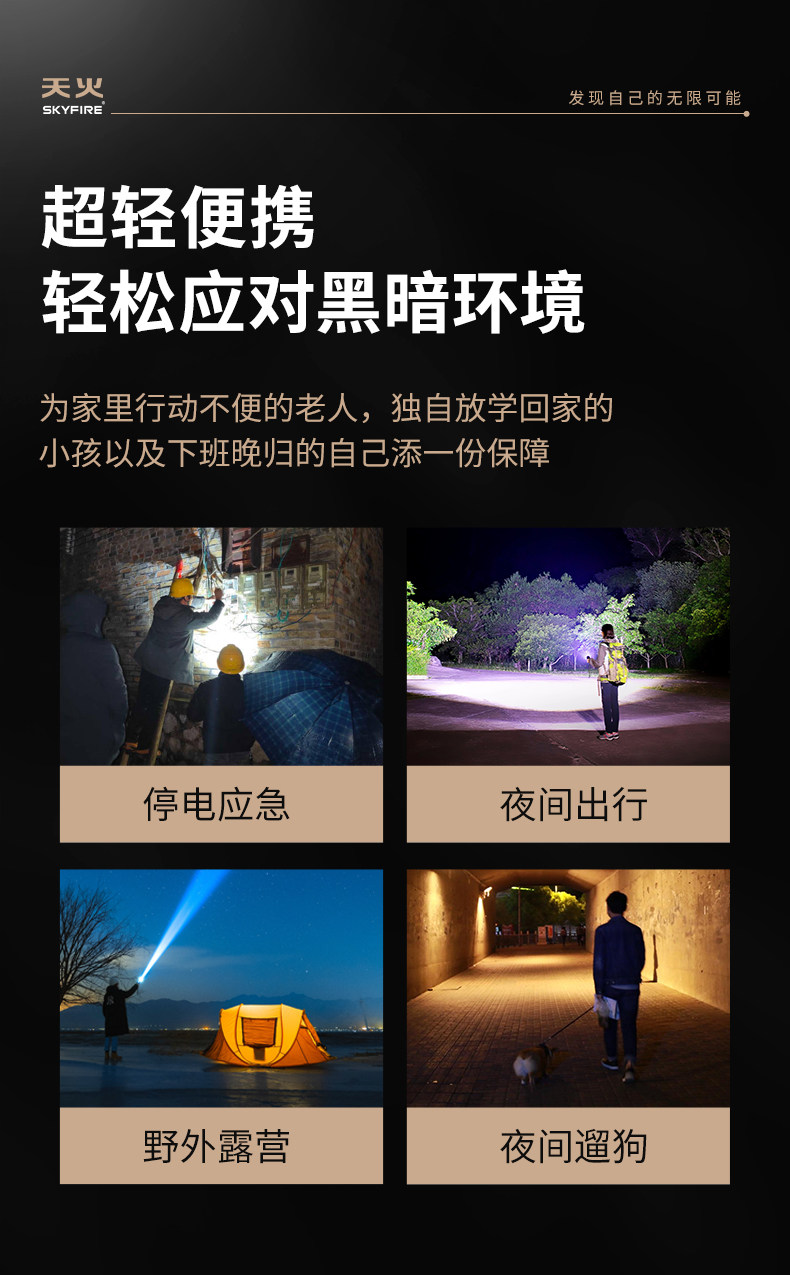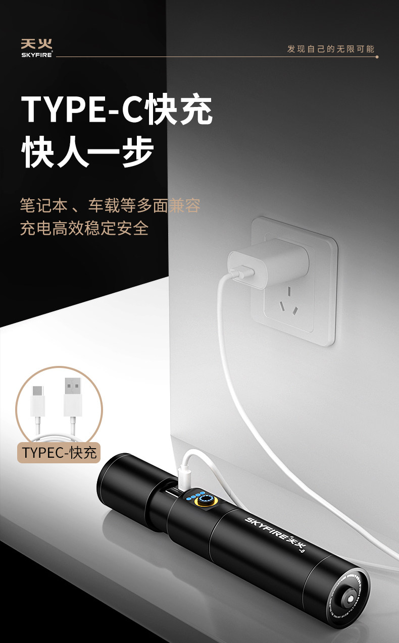 天火手电筒强光充电户外超亮便携登山聚光远射长续航大容量多功能
