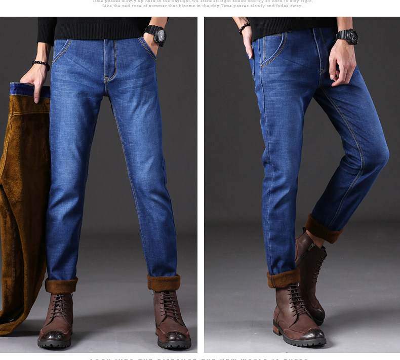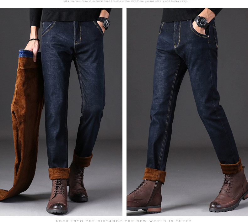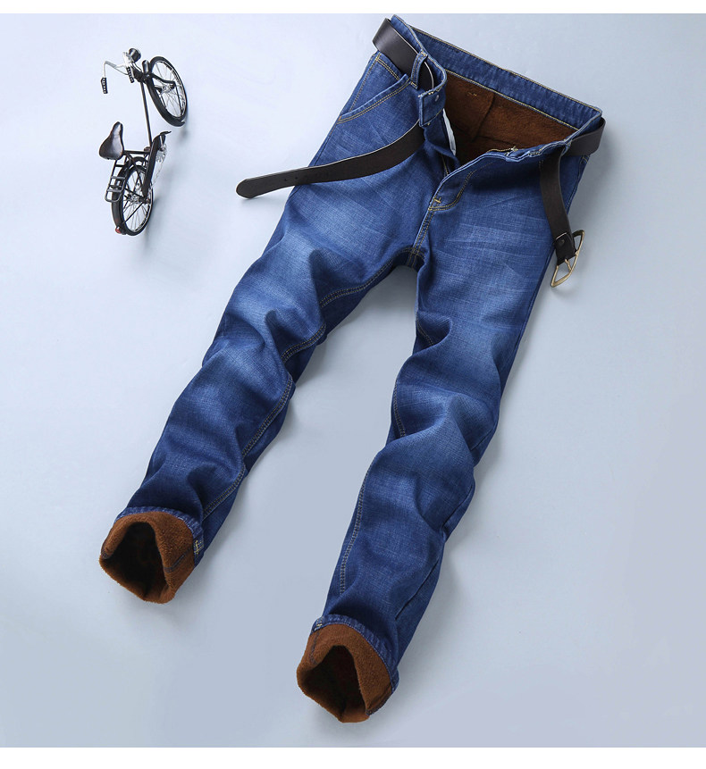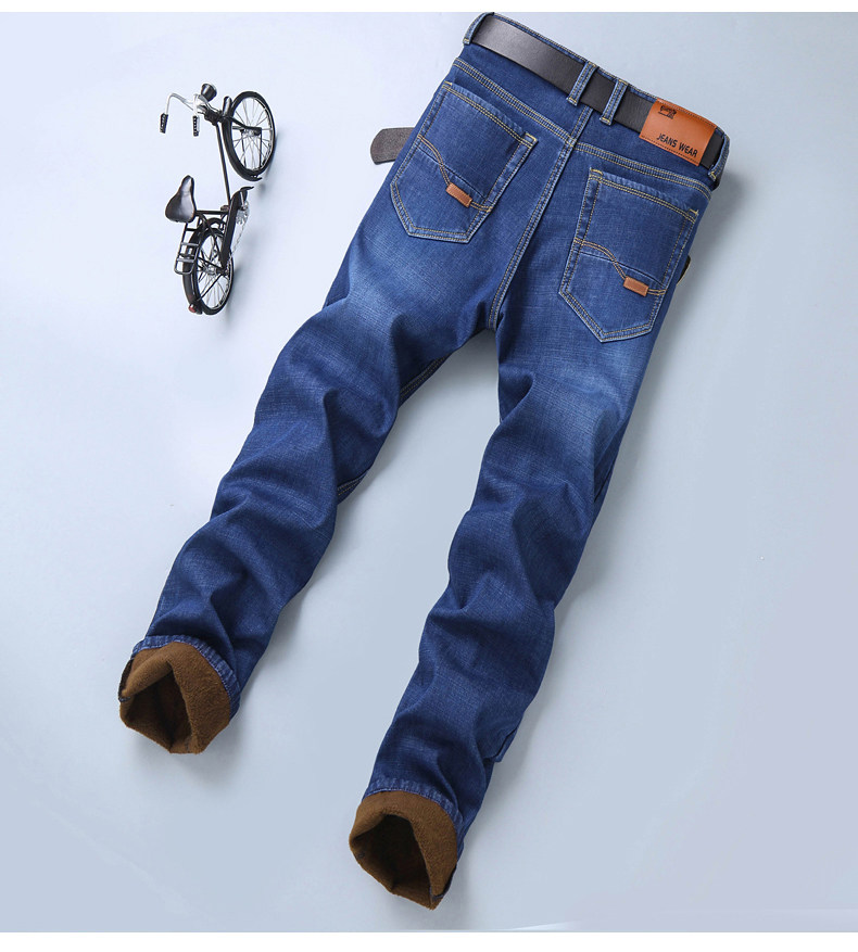 Samtverdickte Herbst- und Winterjeans für Herren, lockere, strapazierfähige Hose mit geradem Bein für den Winter, dicke, kältebeständige und warme Hose