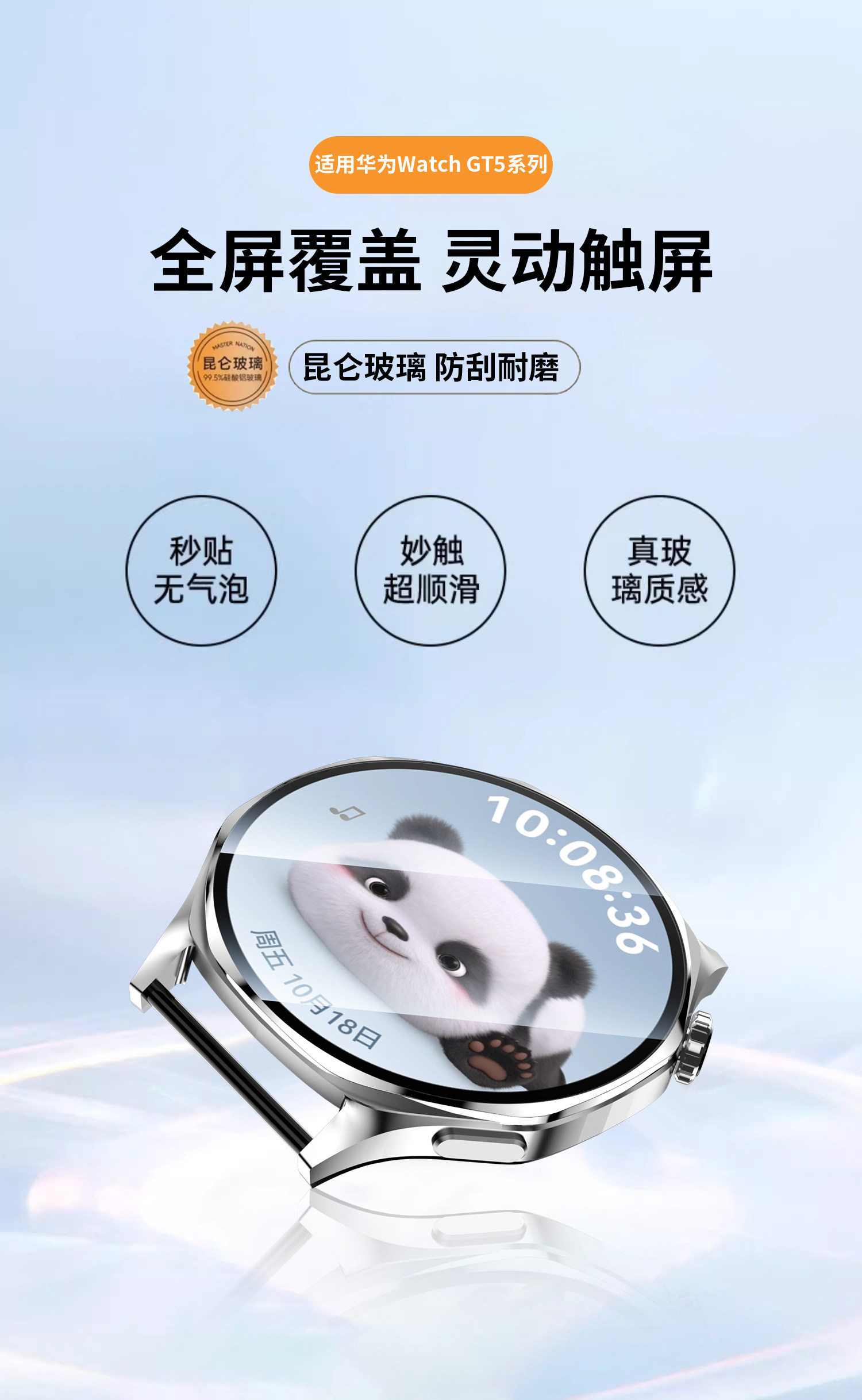 【昆仑玻璃】适用华为gt5手表膜Watchgt6pro新款钢化膜HUAWEI智能保护膜gt4女全包防摔41m运动表盘壳46男士蓬