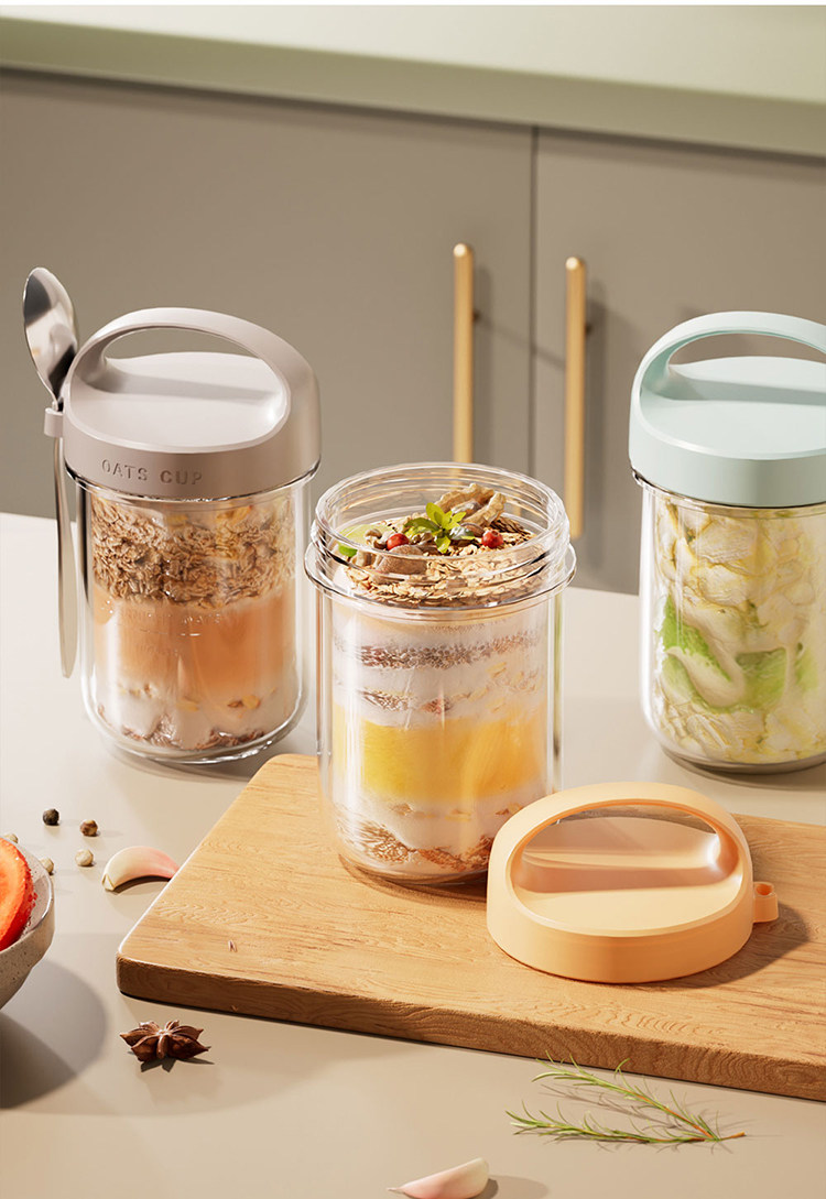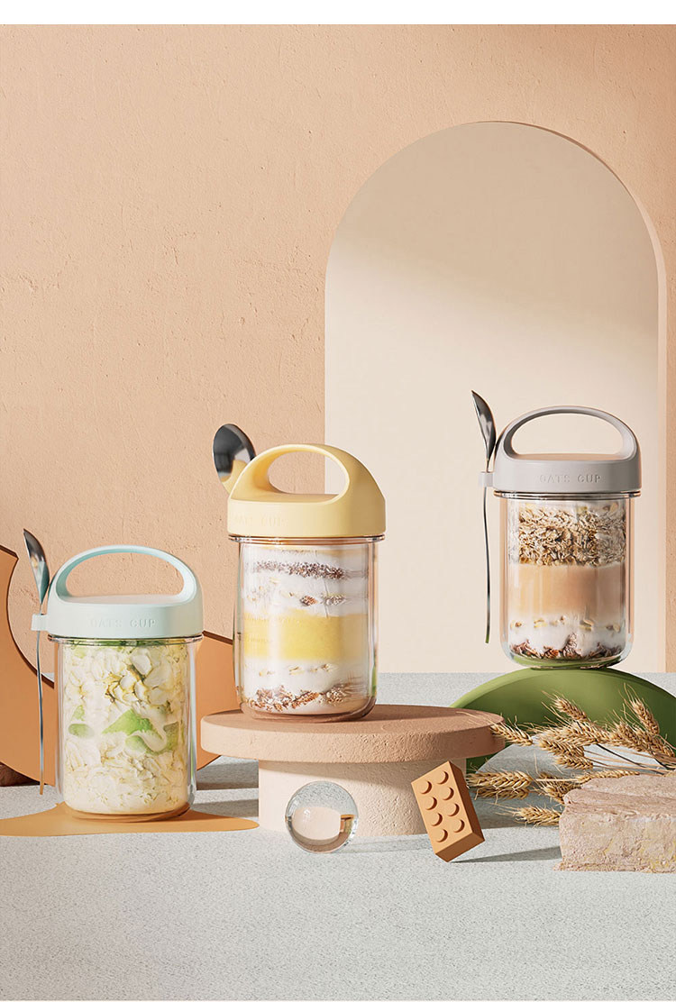 挖到宝!隔夜燕麦杯便携早餐酸奶杯带盖勺外带水果沙拉杯牛奶杯