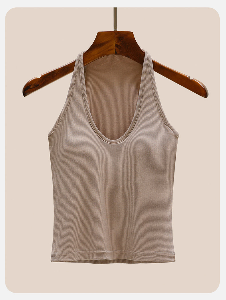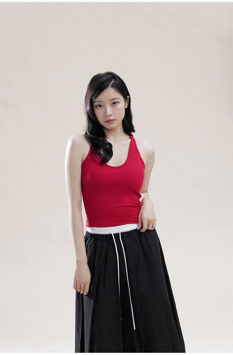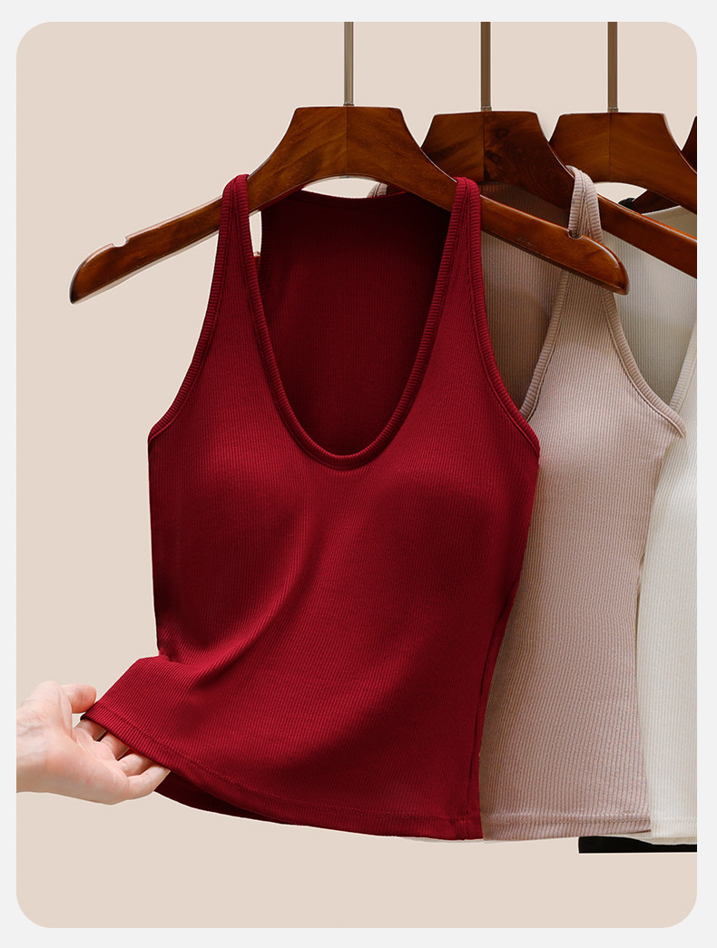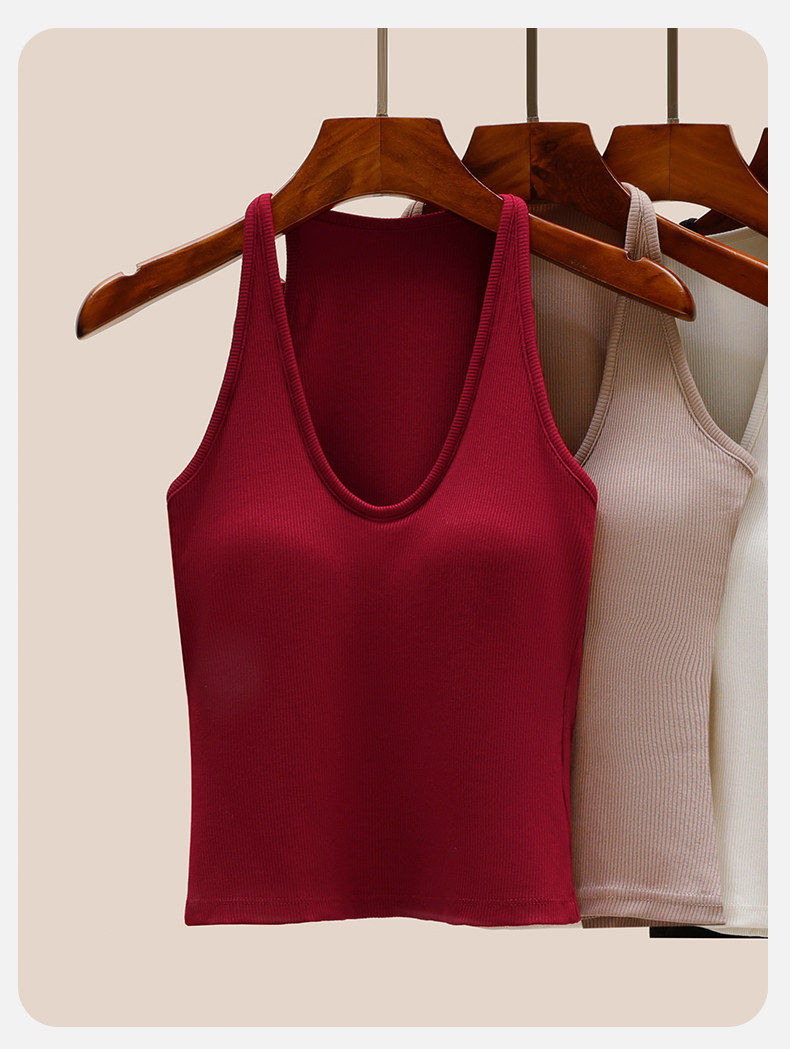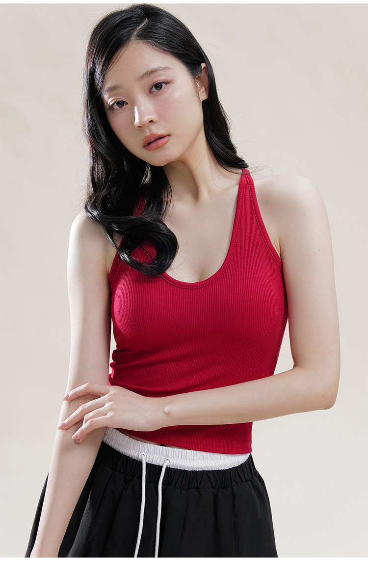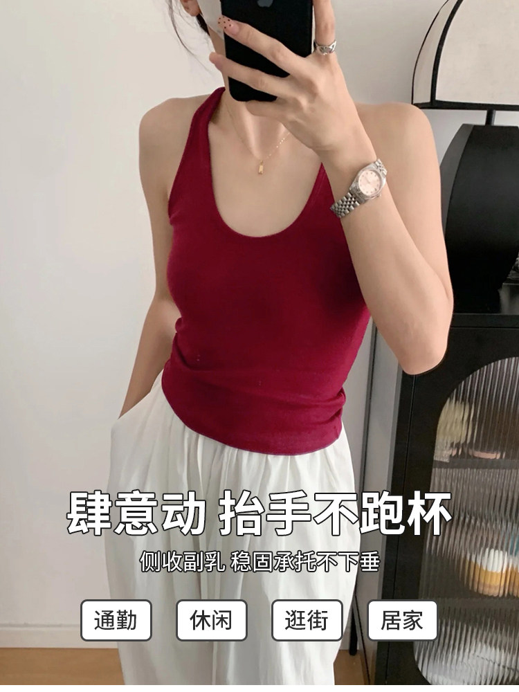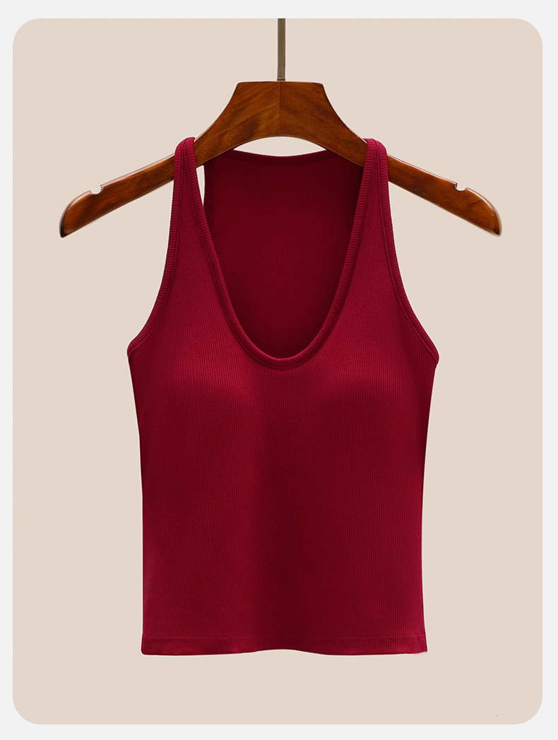 Red Halter Neck Camisole with Chest Pads for Women, 2025 New Short Sleeveless Yoga Top for Summer