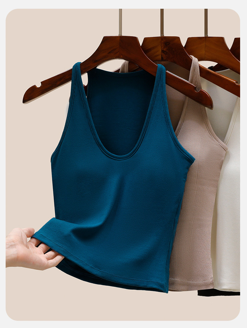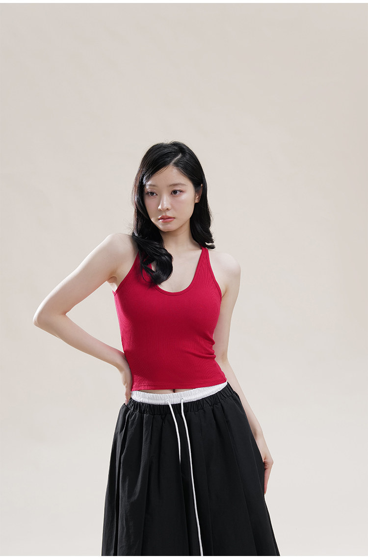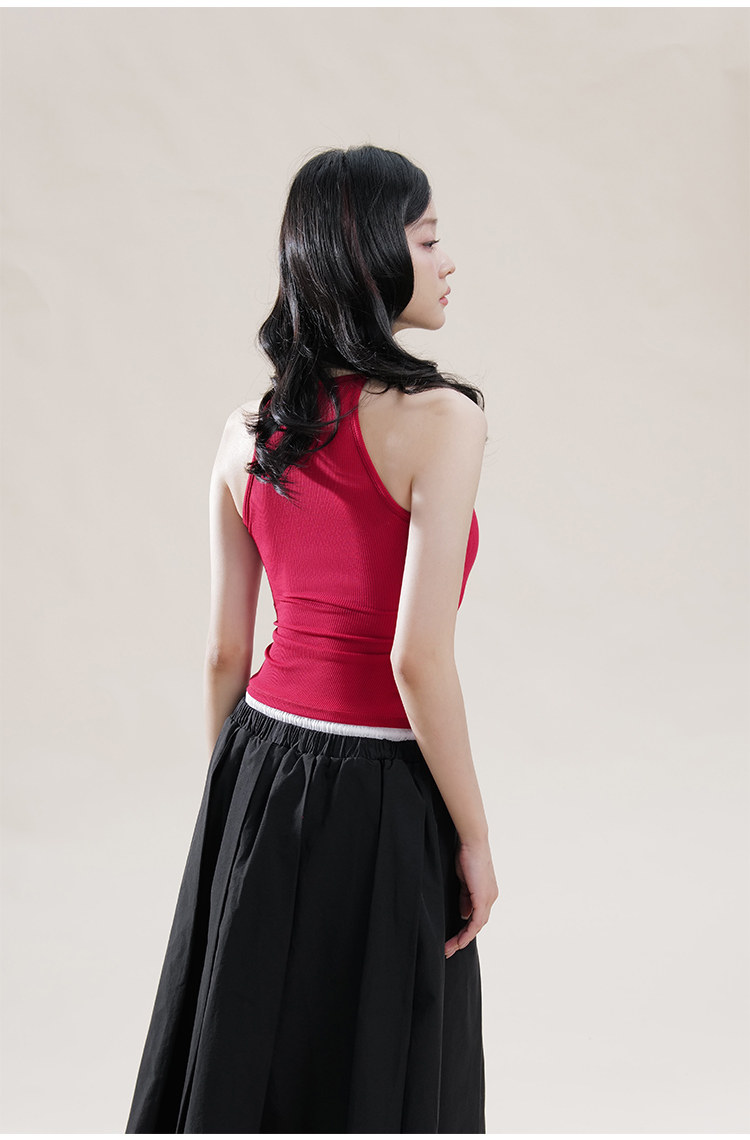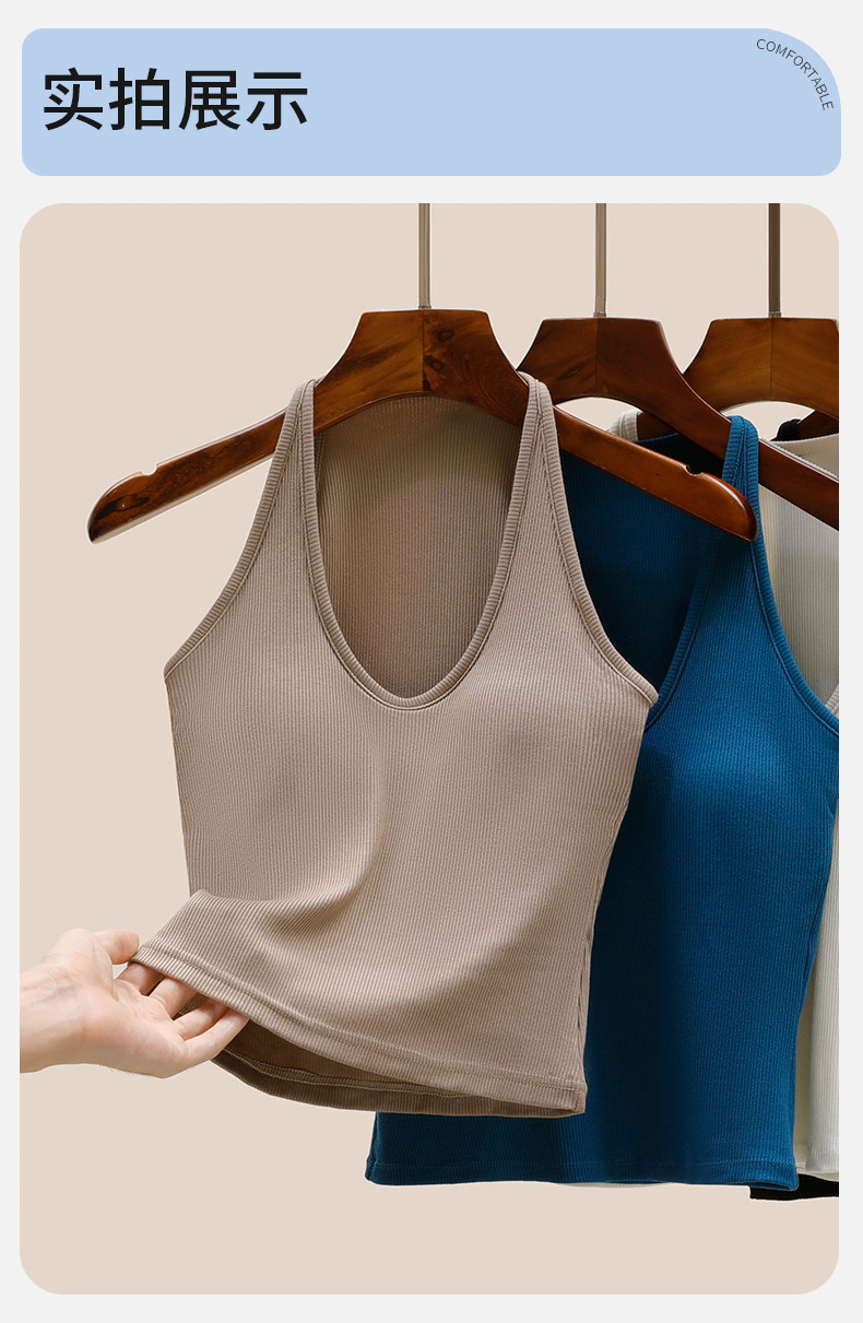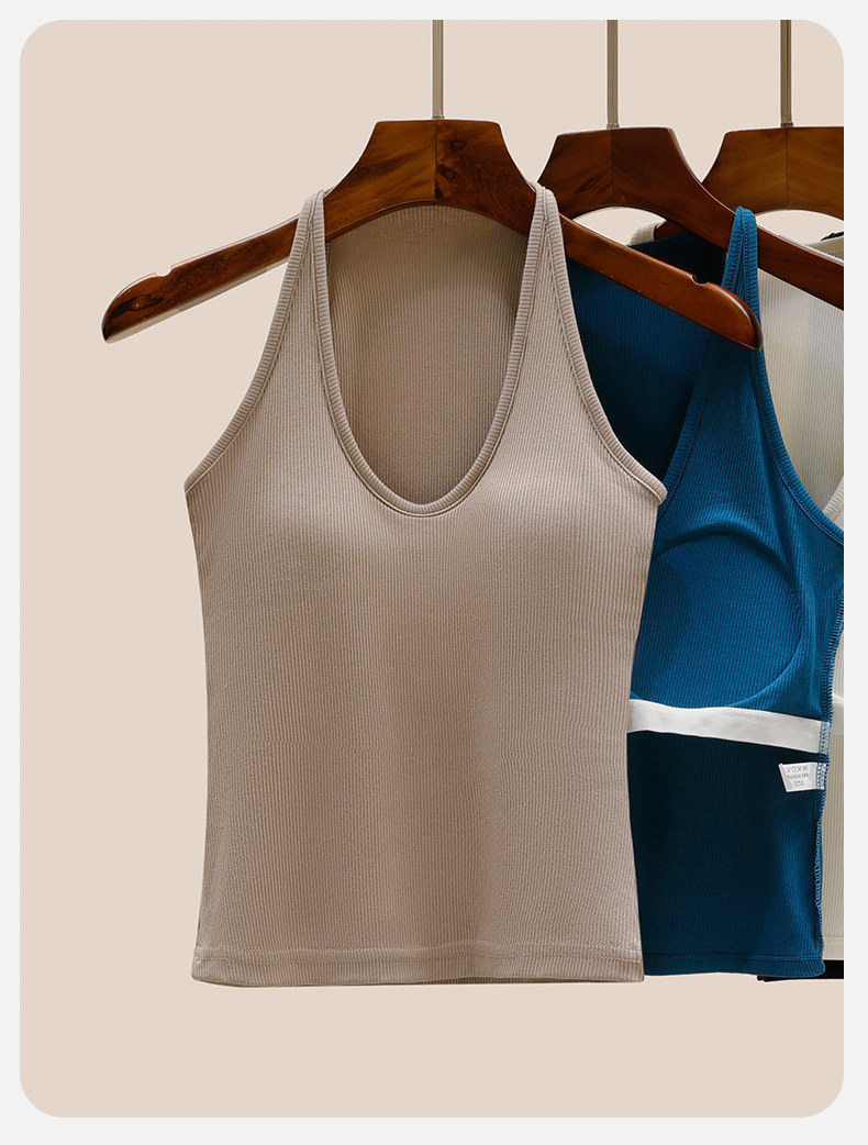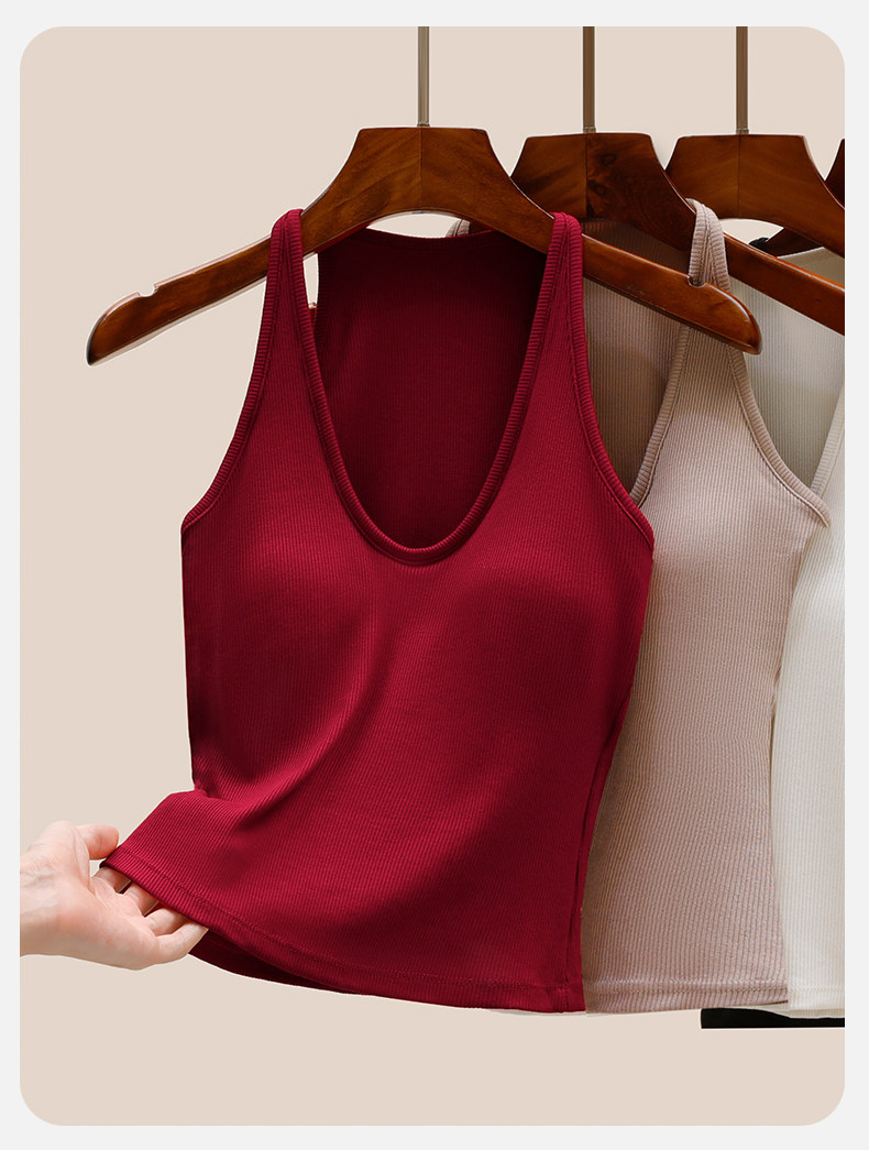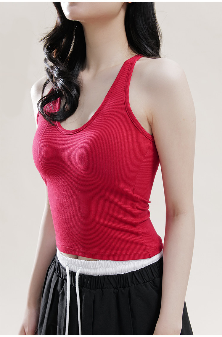 Red Halter Neck Camisole with Chest Pads for Women, 2025 New Short Sleeveless Yoga Top for Summer