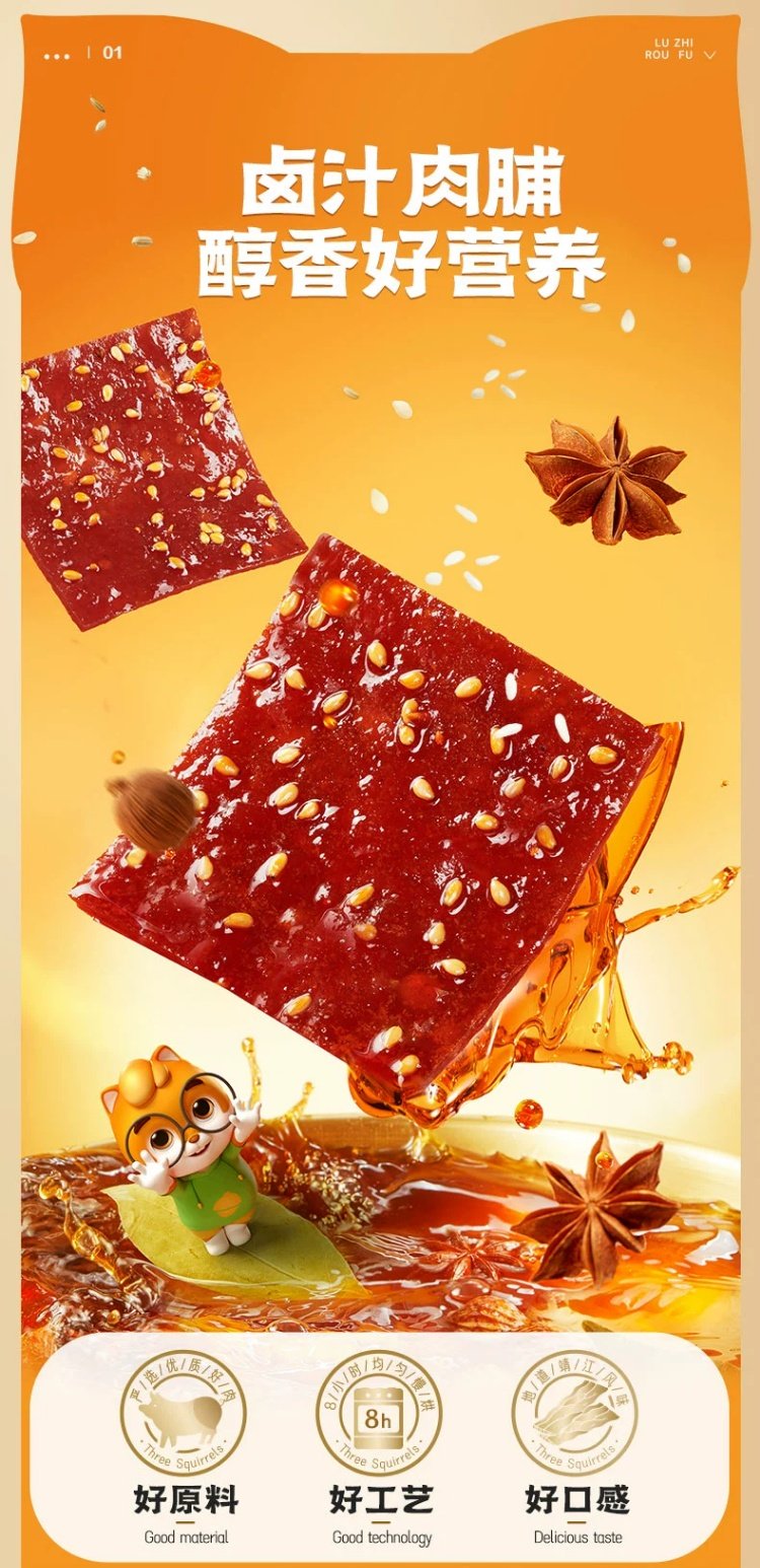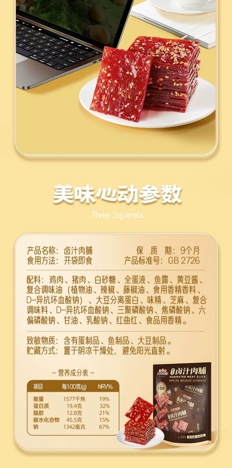 三只松鼠卤汁肉脯靖江特产地道风味肉类零食开袋即食解馋休闲零食