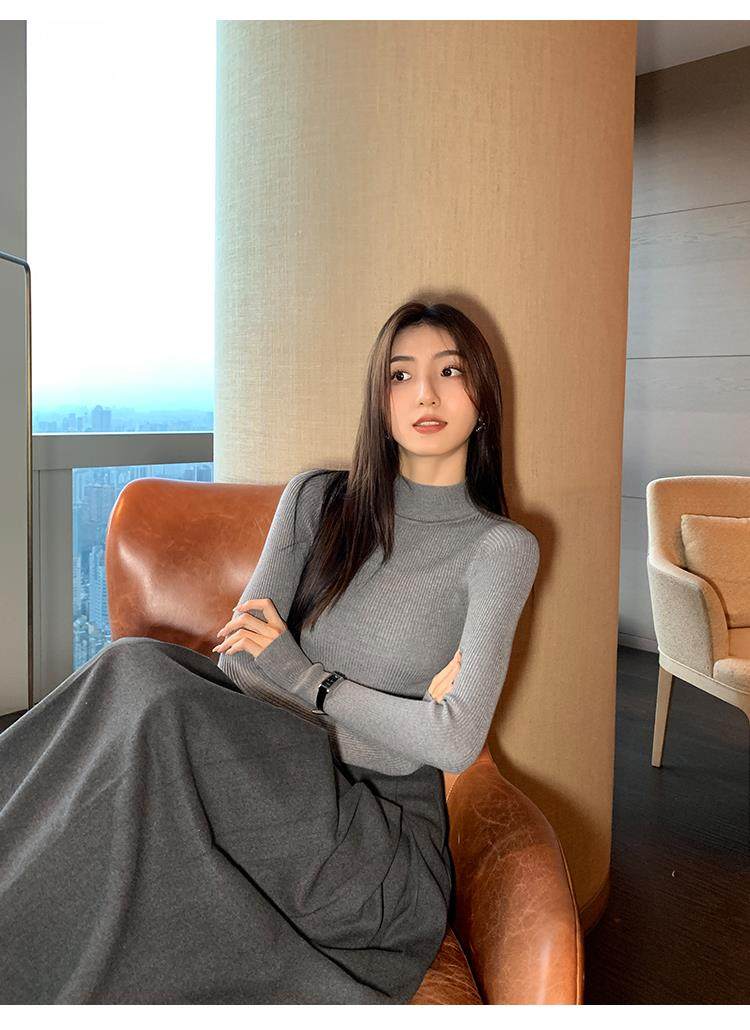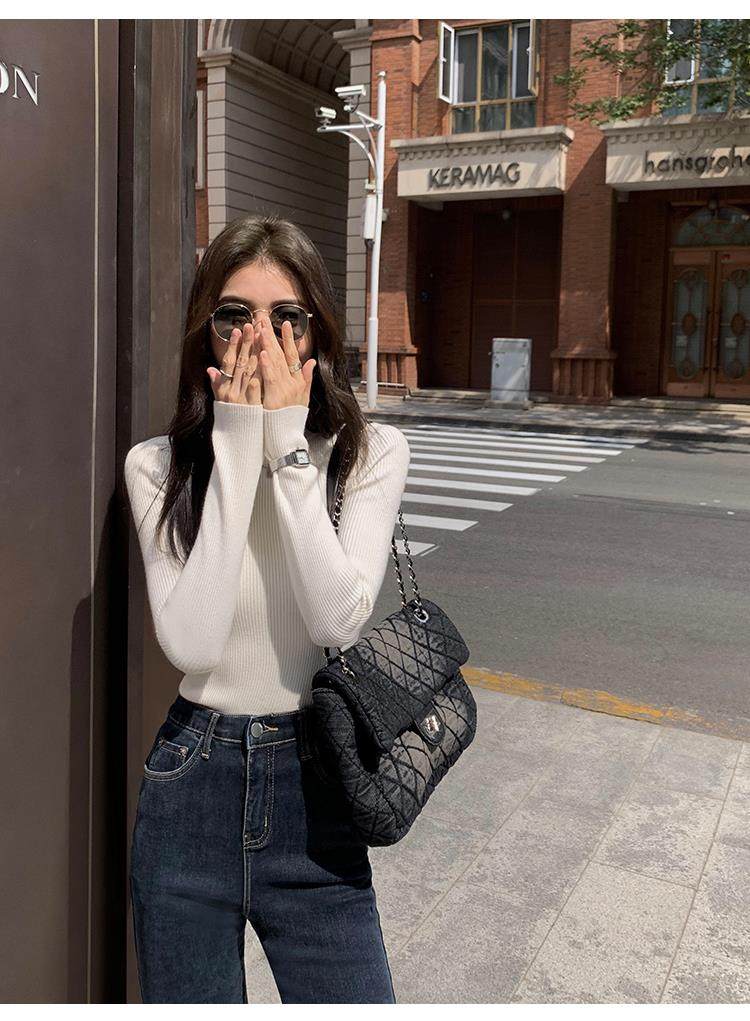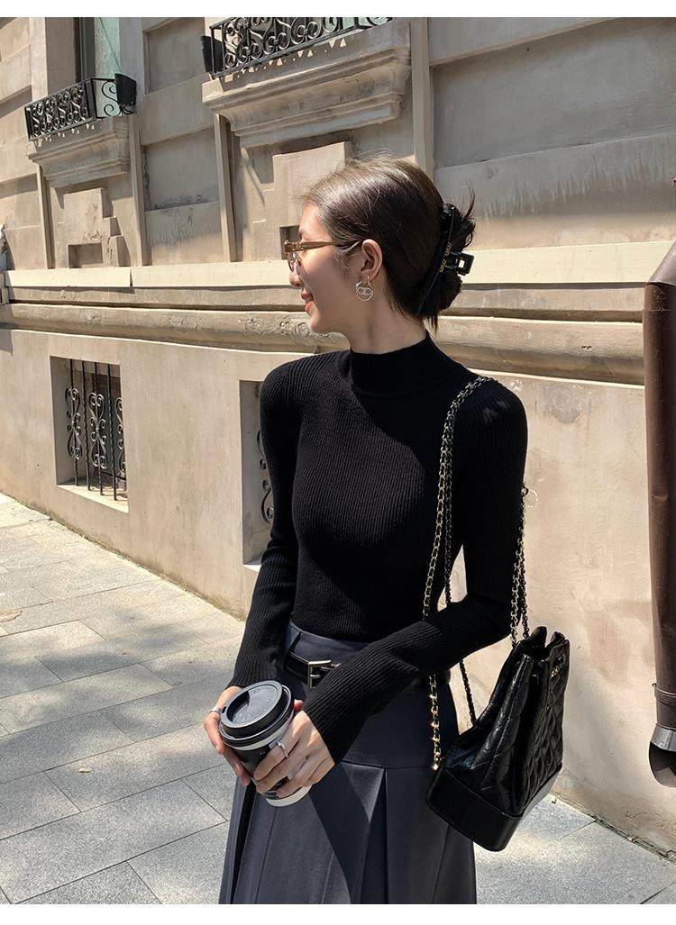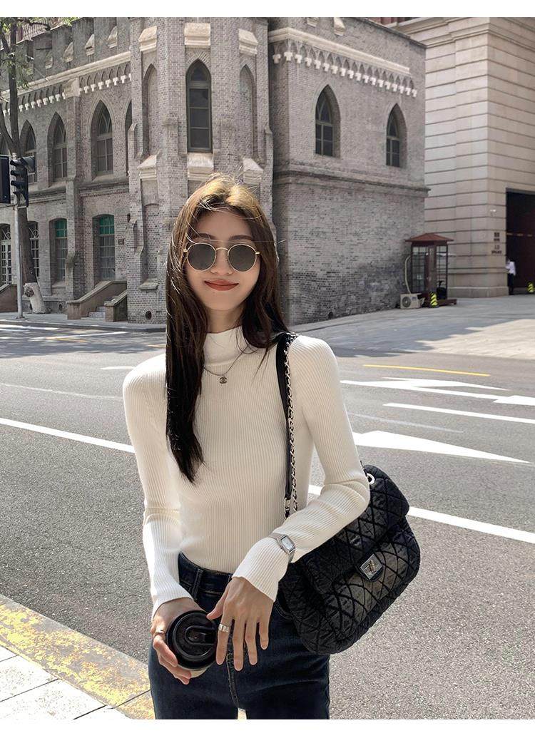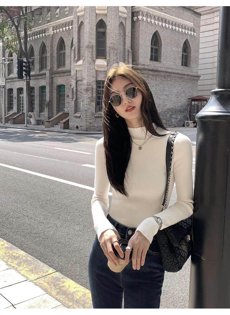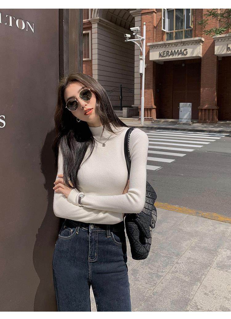 Korean autumn and winter new white half turtleneck sweater for women with pullover and base layer basic slim fit top