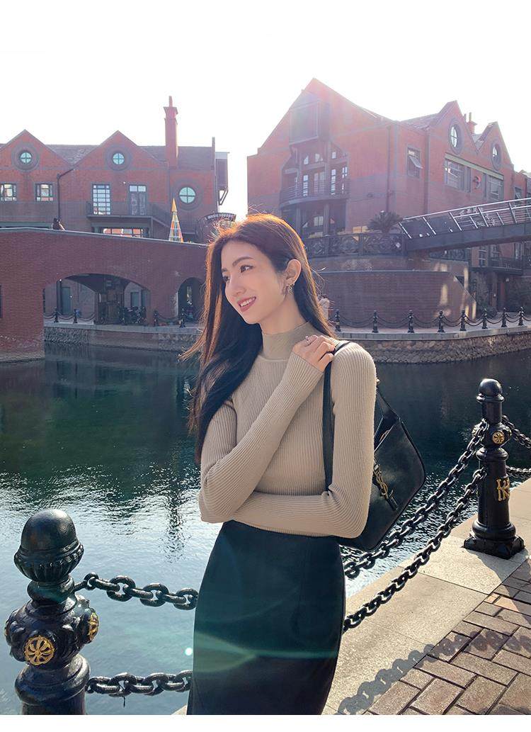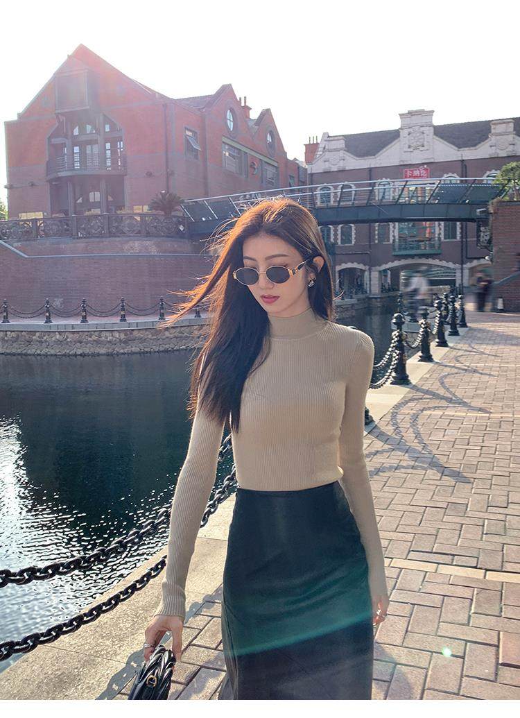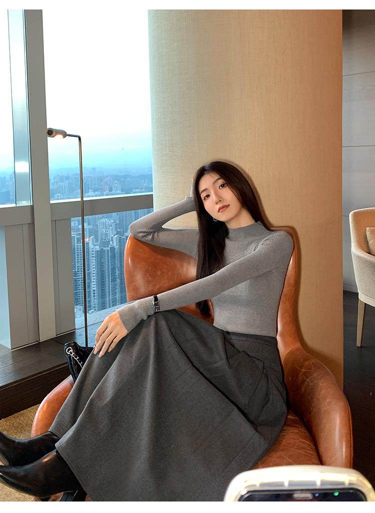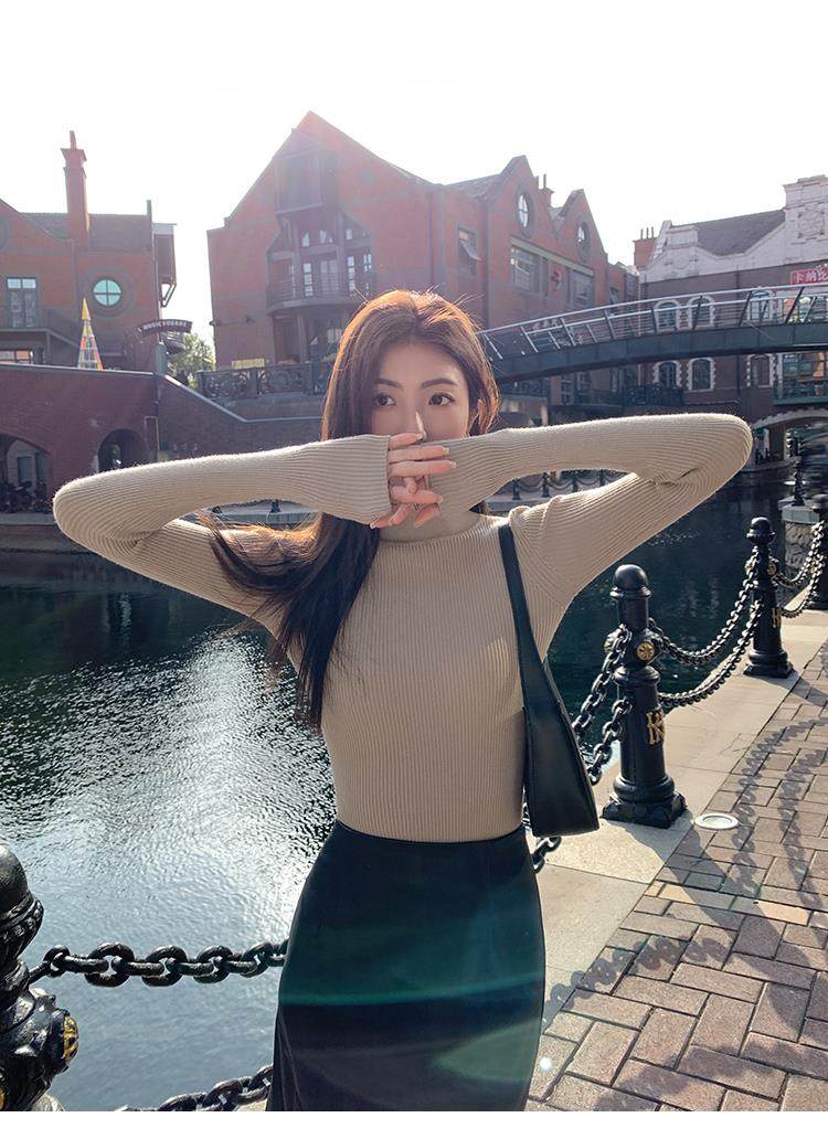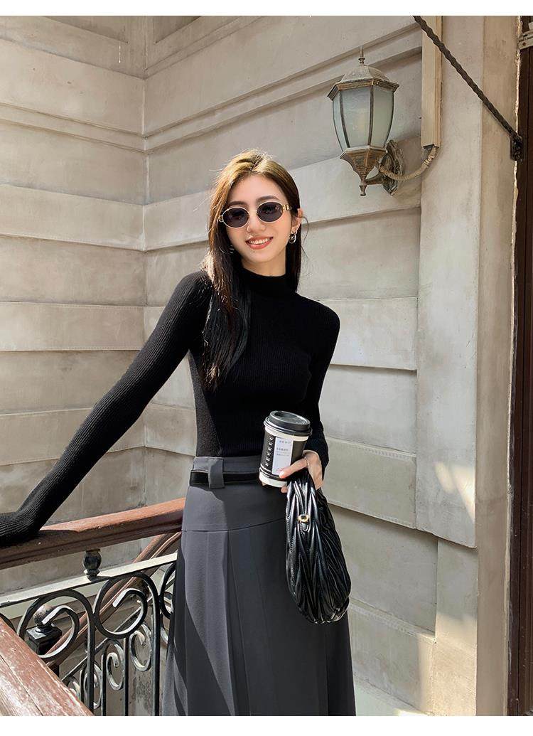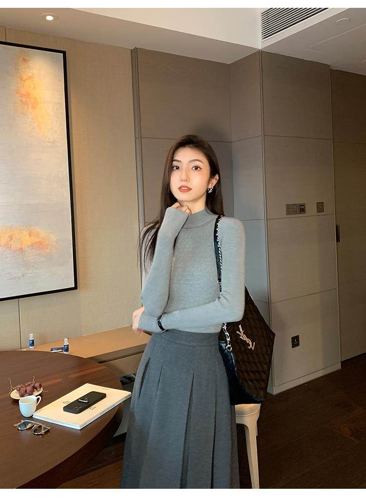Korean autumn and winter new white half turtleneck sweater for women with pullover and base layer basic slim fit top