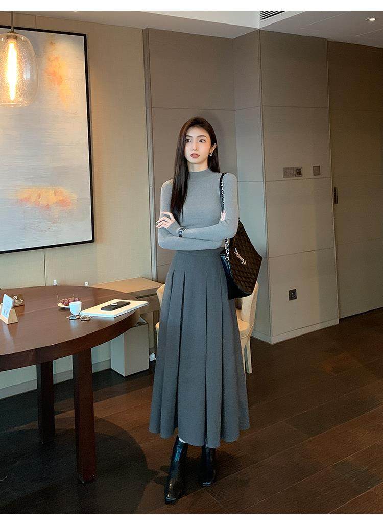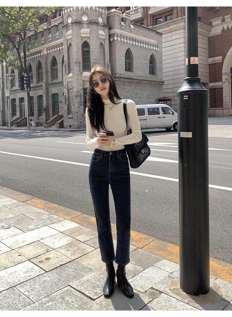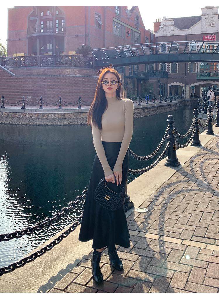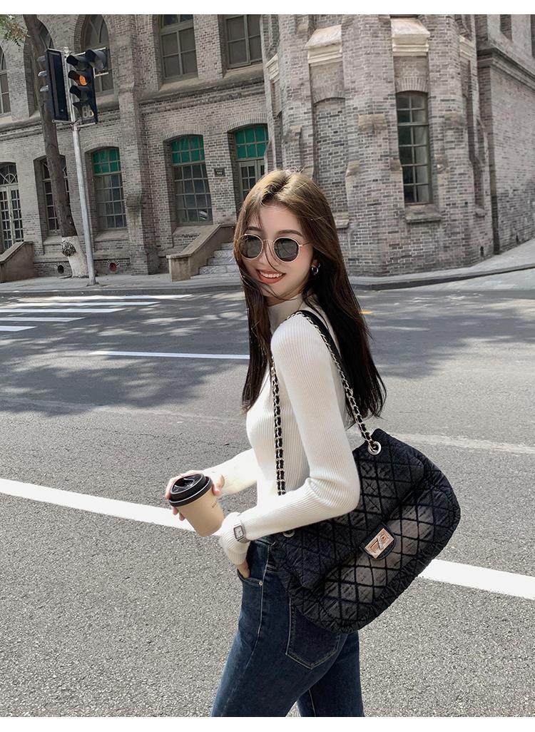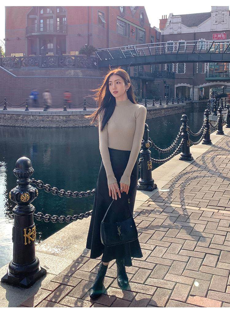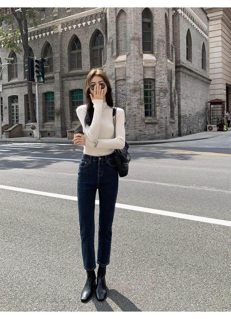 Korean autumn and winter new white half turtleneck sweater for women with pullover and base layer basic slim fit top