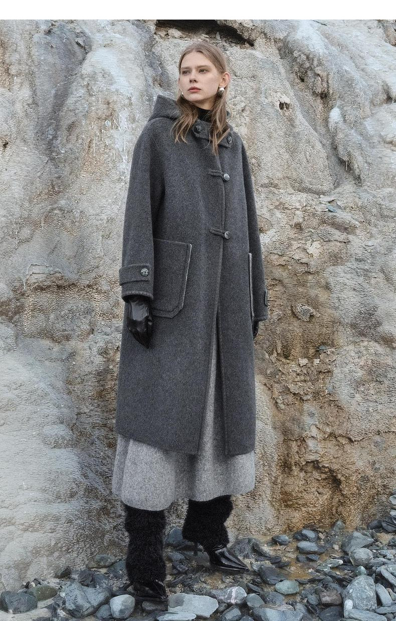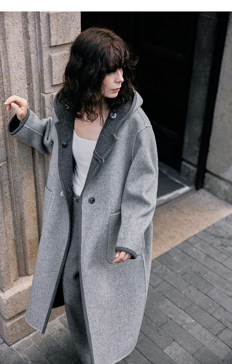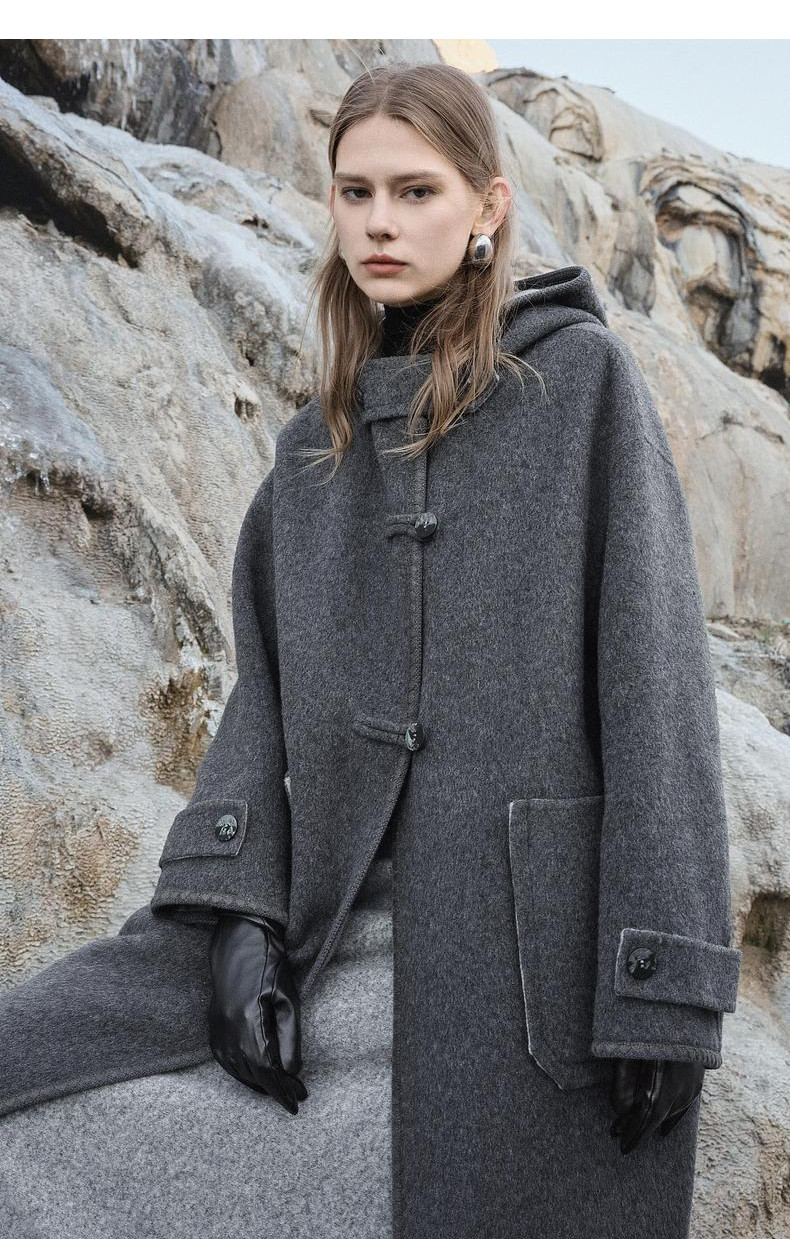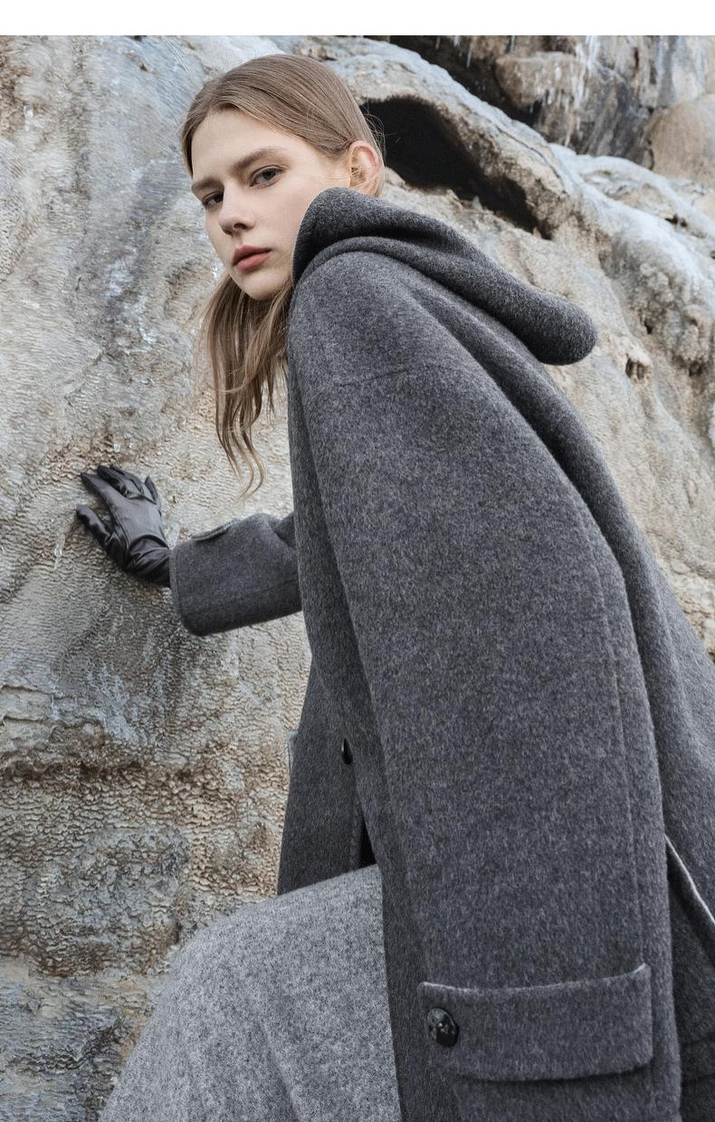 [100% Sheep Wool]Elle Gray Hooded Wool Coat for Women 2025 Winter New Long Wool Coat