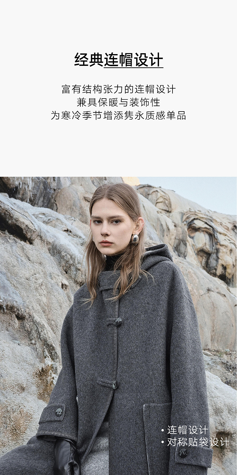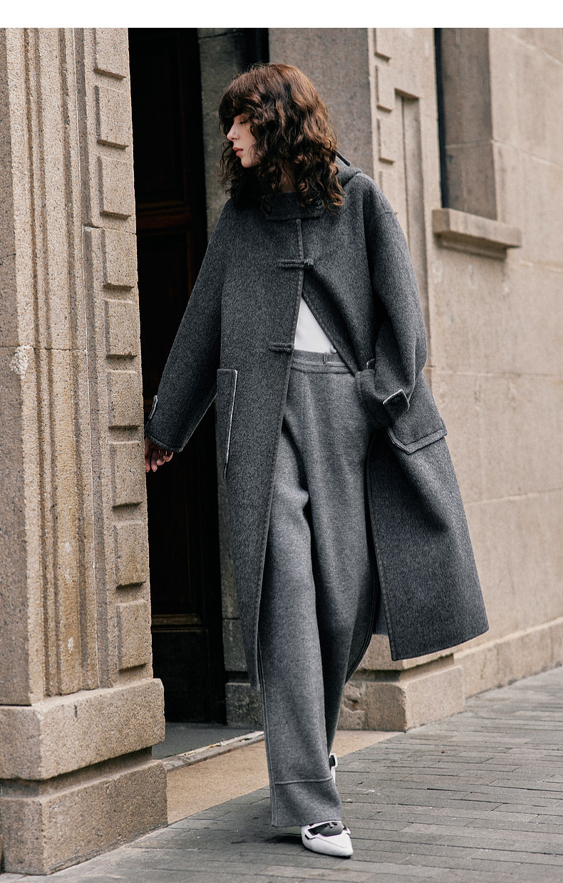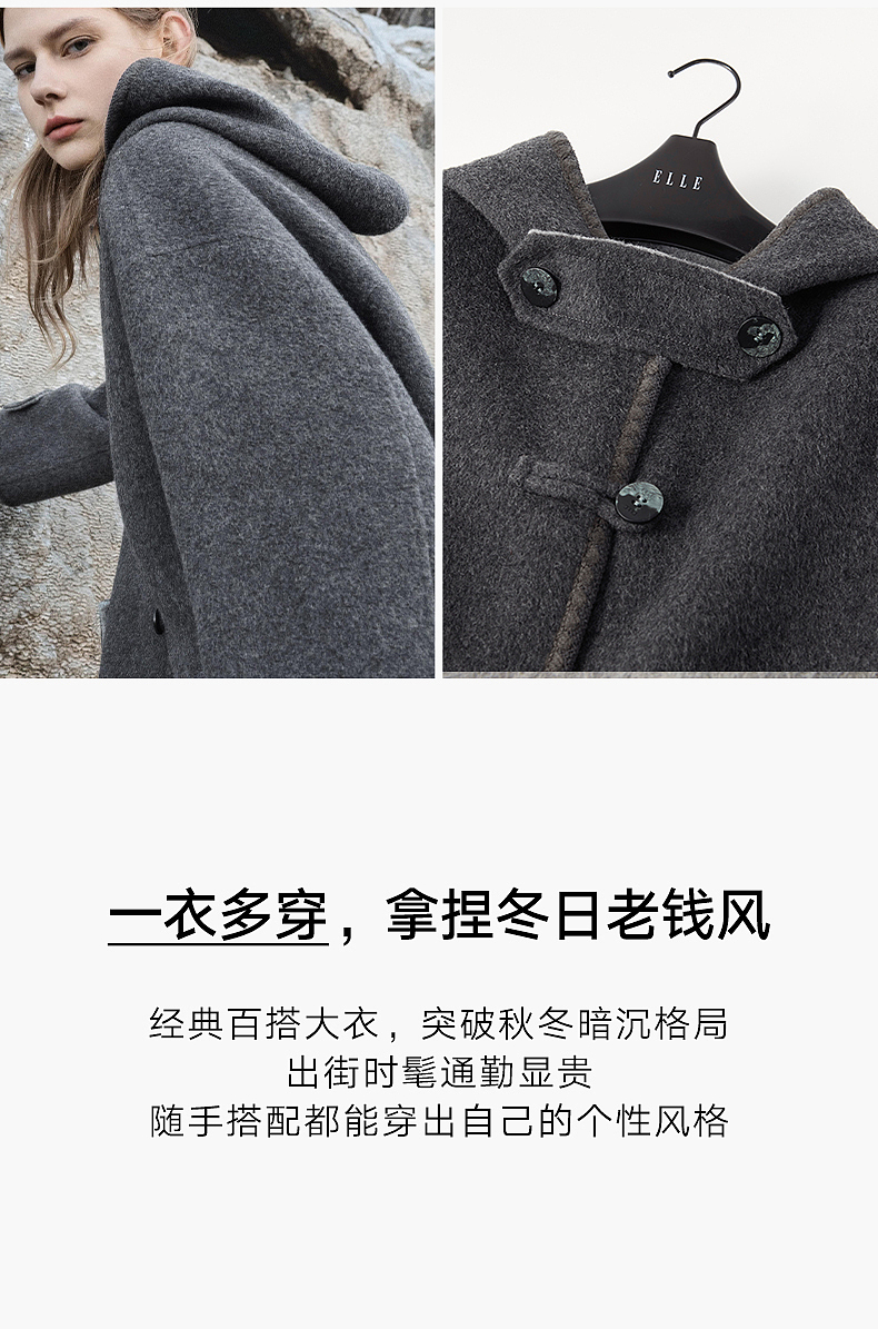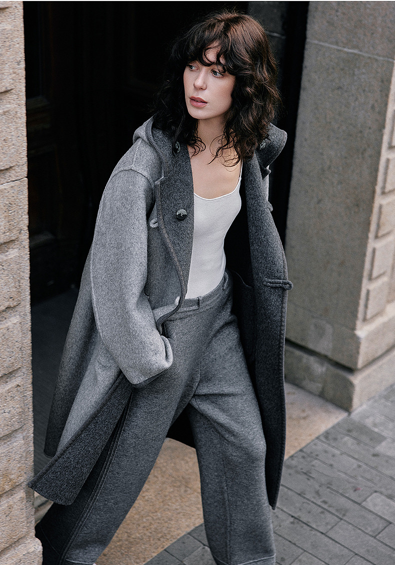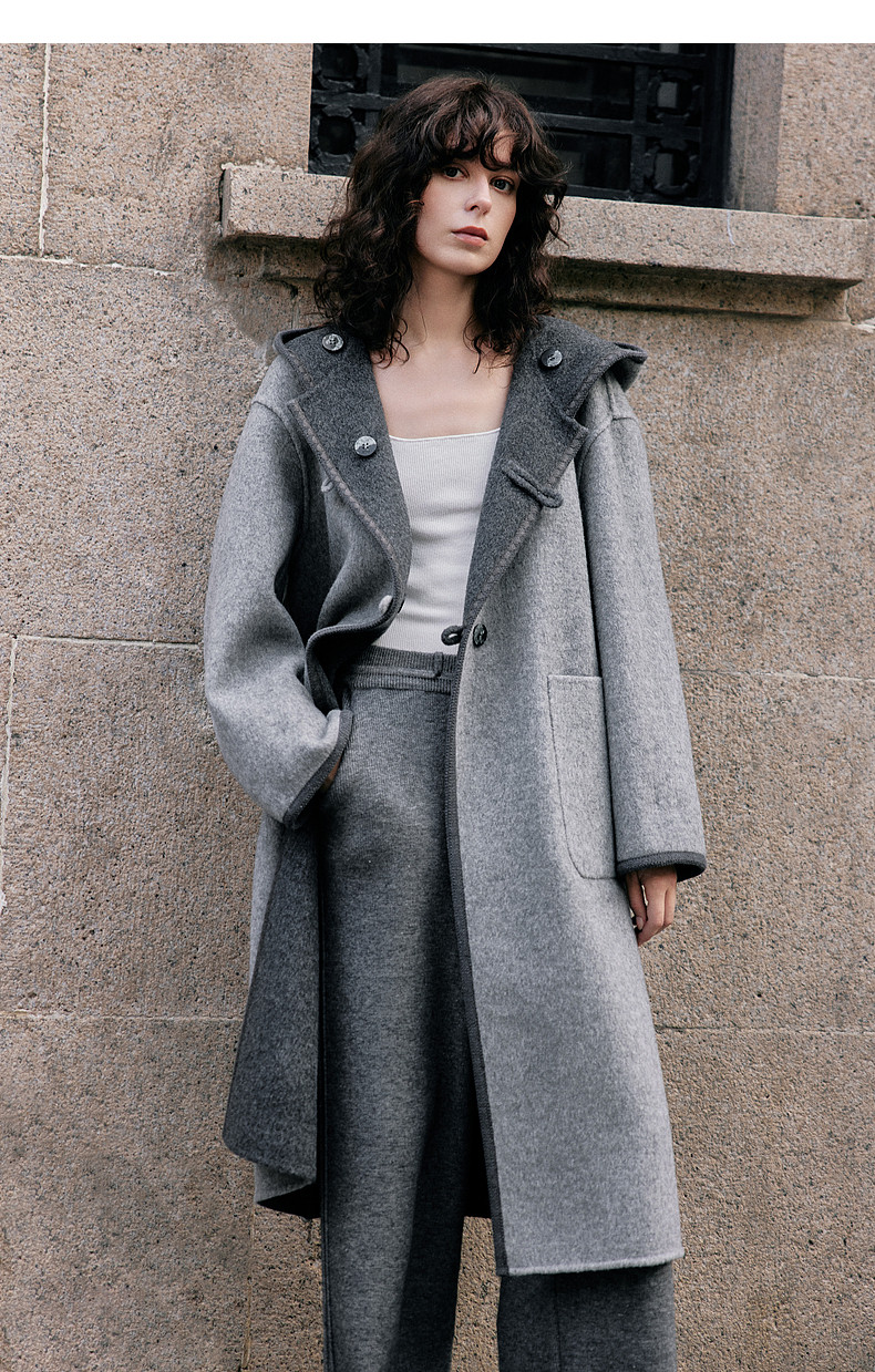 [100% Sheep Wool]Elle Gray Hooded Wool Coat for Women 2025 Winter New Long Wool Coat