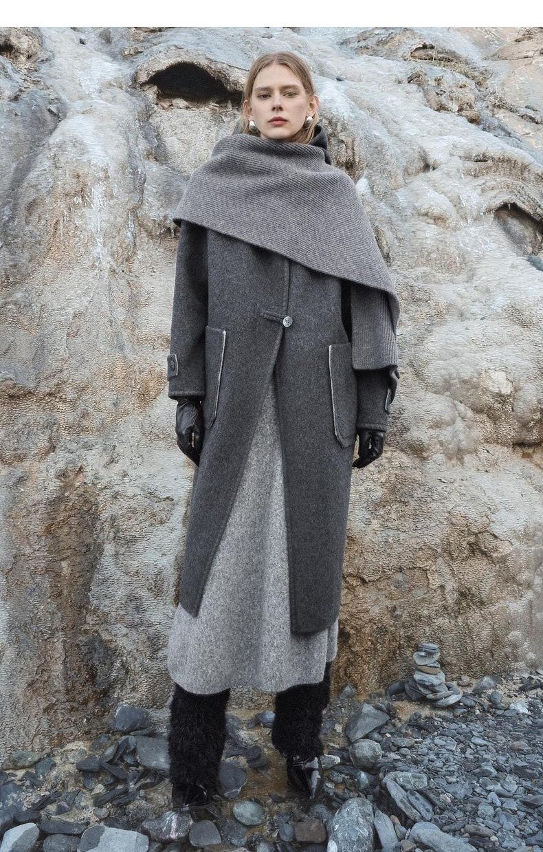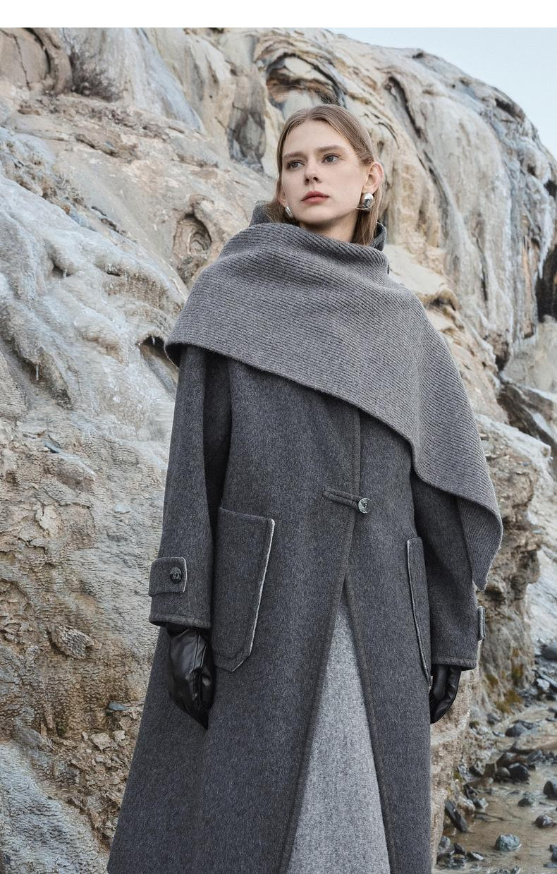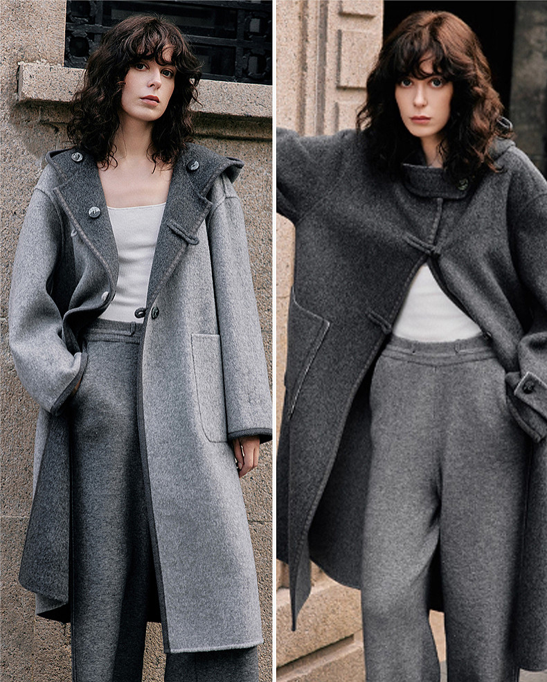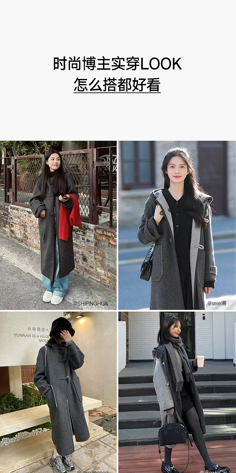 [100% Sheep Wool]Elle Gray Hooded Wool Coat for Women 2025 Winter New Long Wool Coat