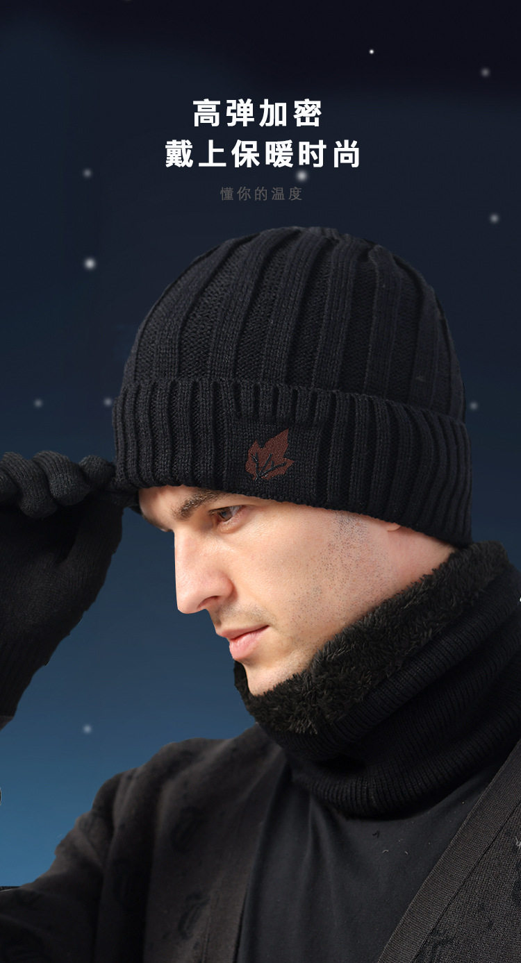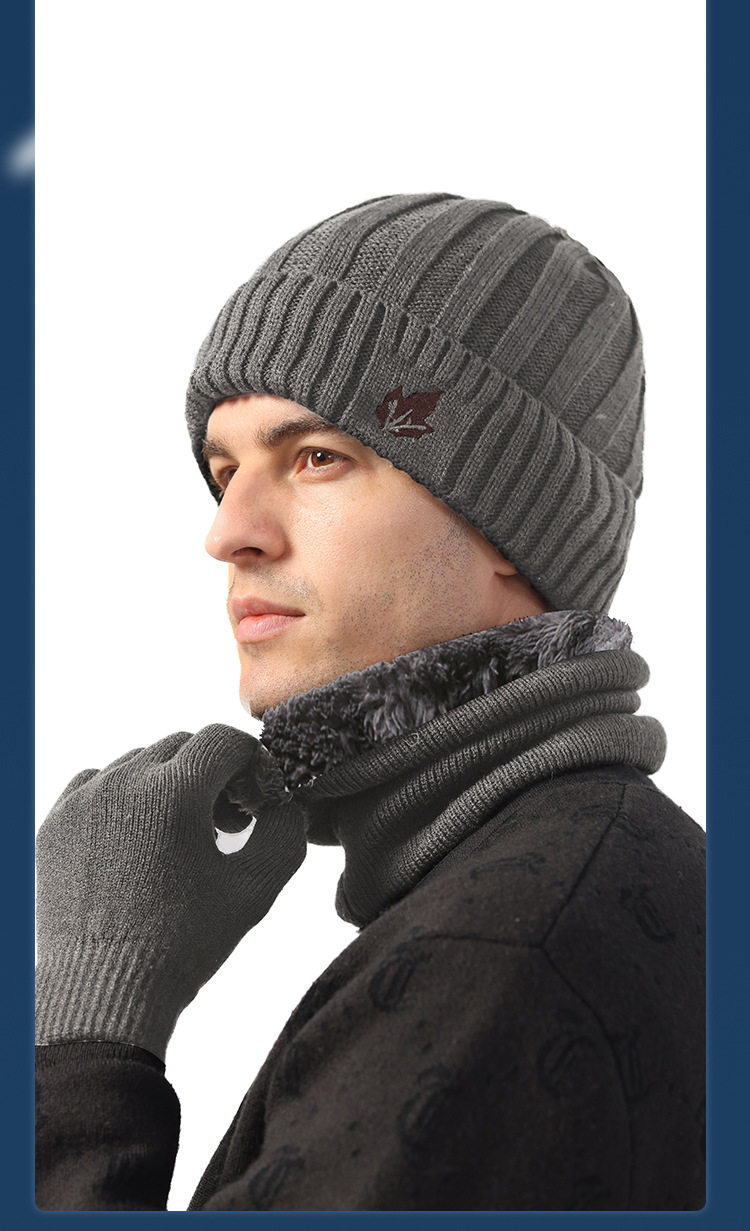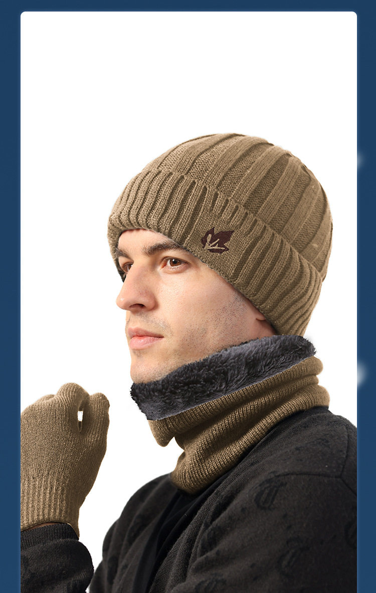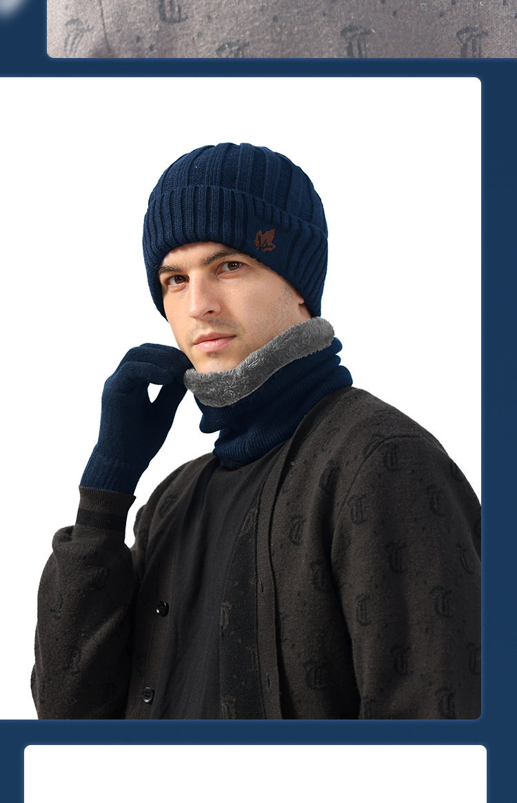 Winter Warm Hat, Scarf, and Gloves Three-Piece Set, Fleece-Lined Knitted Wool Hat, Dad's Cold-Proof Head-Covering Hat