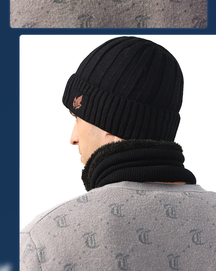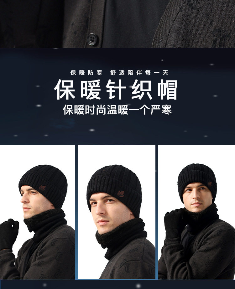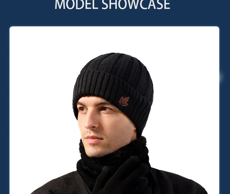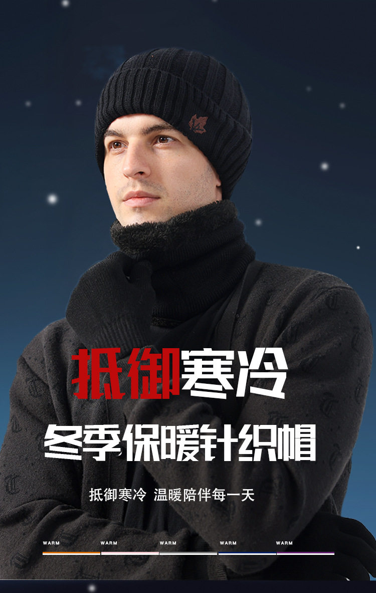 Winter Warm Hat, Scarf, and Gloves Three-Piece Set, Fleece-Lined Knitted Wool Hat, Dad's Cold-Proof Head-Covering Hat