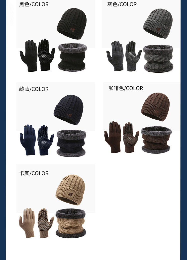 Color Classification Hat + Scarf and Gloves Three-Piece Set Black,Hat + Scarf and Gloves Three-Piece Set Gray,Hat + Scarf and Gloves Three-Piece Set Navy Blue,Brown Hat, Scarf, and Gloves Set,Hat + Scarf and Gloves Three-Piece Set in Khaki Color,Hat + Scarf Set Black,Hat + Scarf Set Gray,Hat + Scarf Set Brown,Hat + Scarf Set Khaki,Hat + Scarf Set Navy Blue