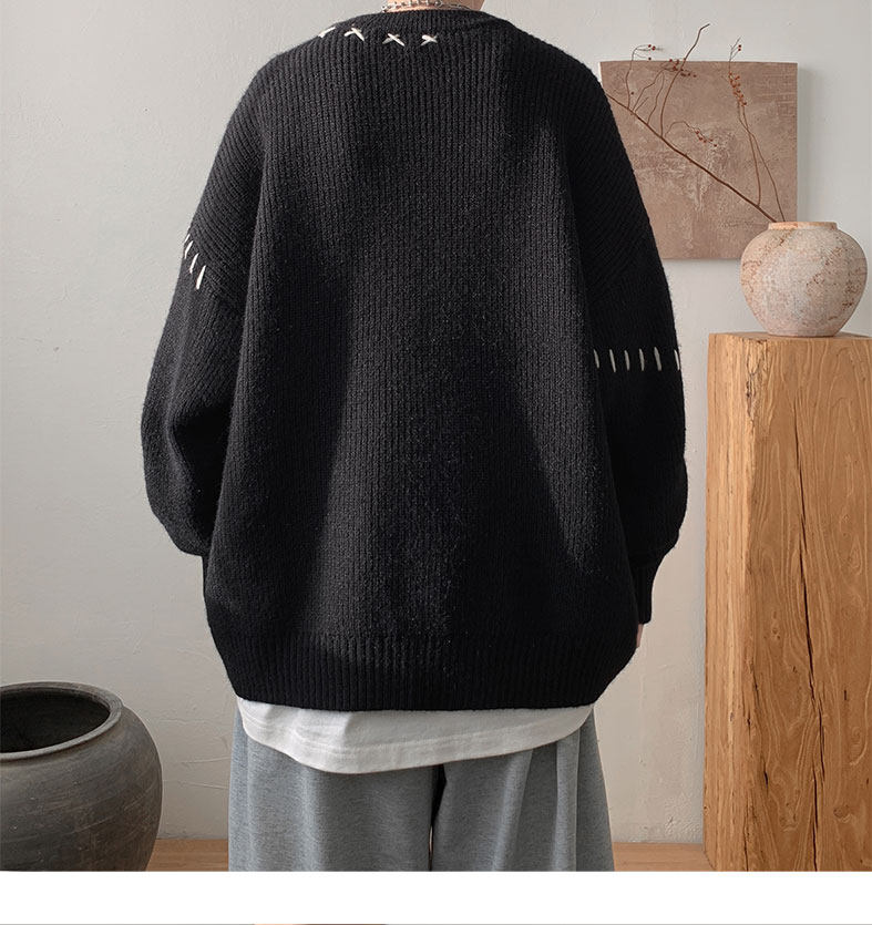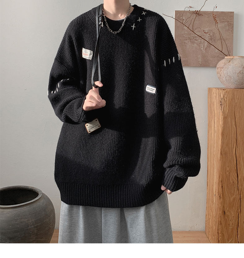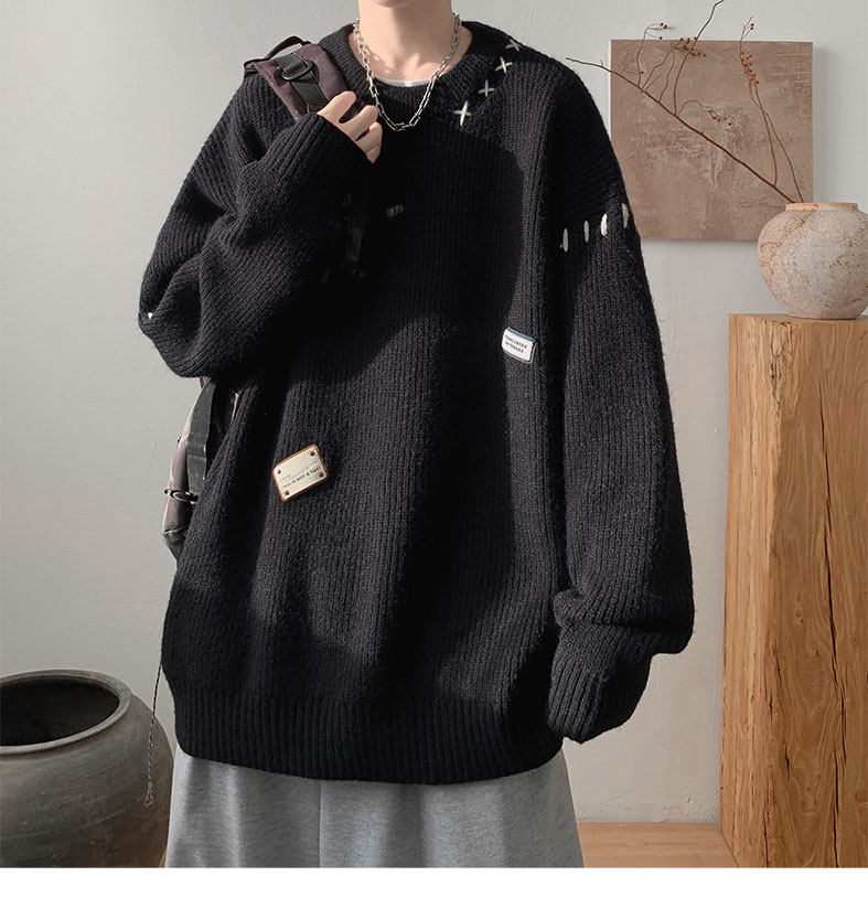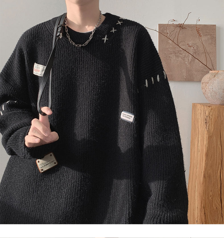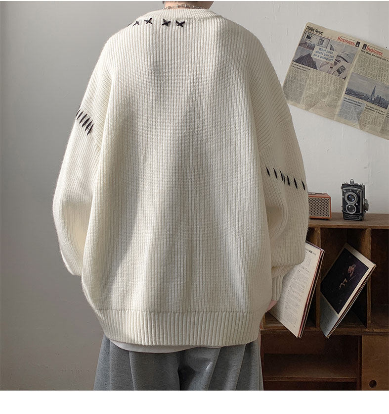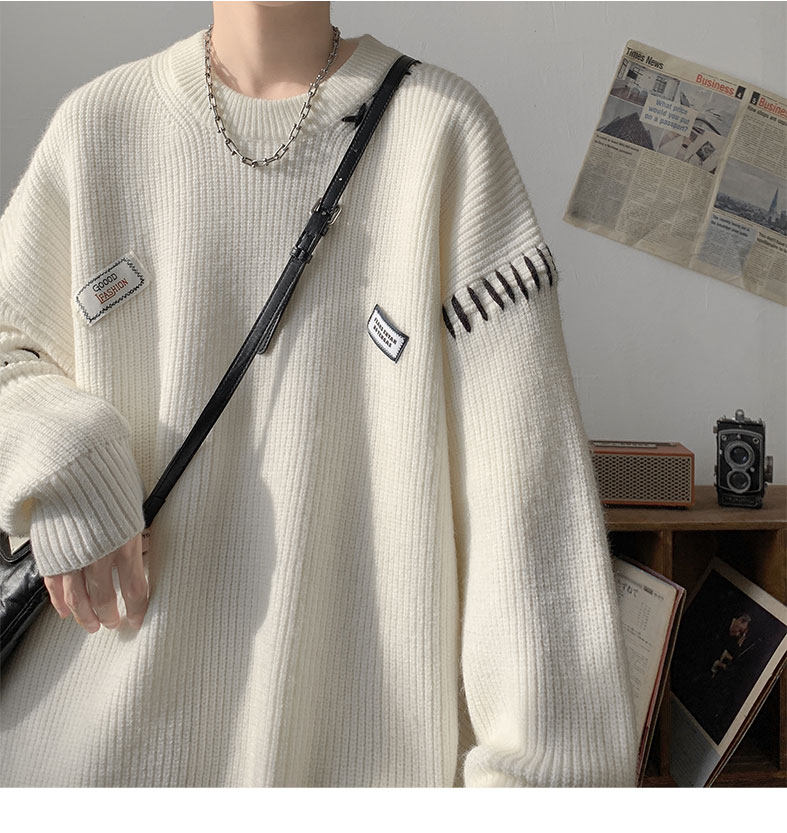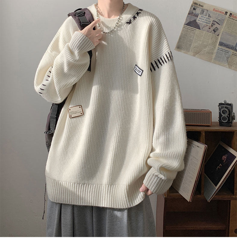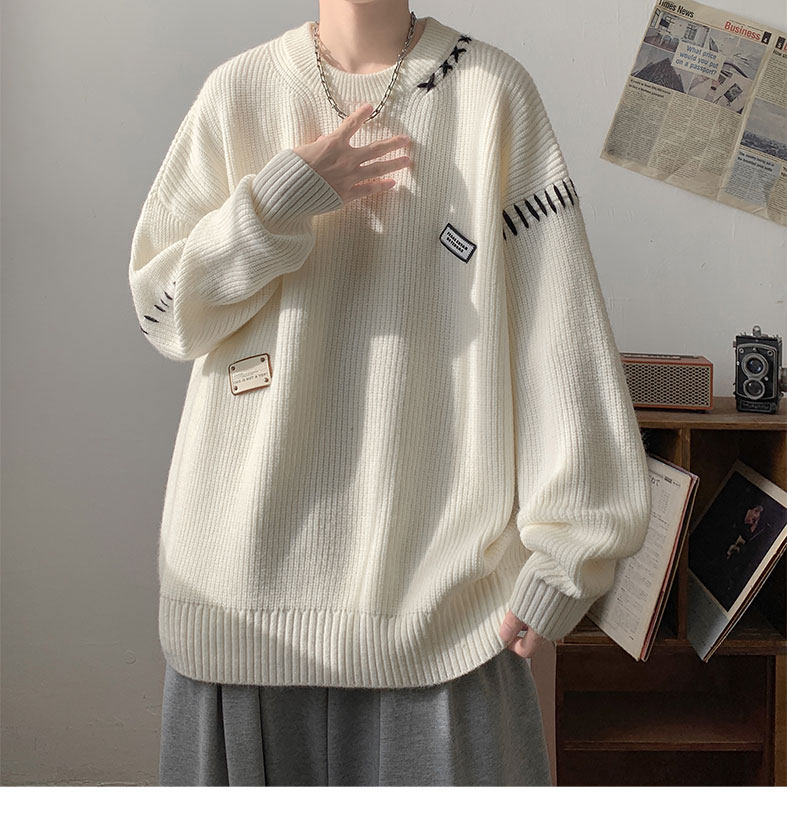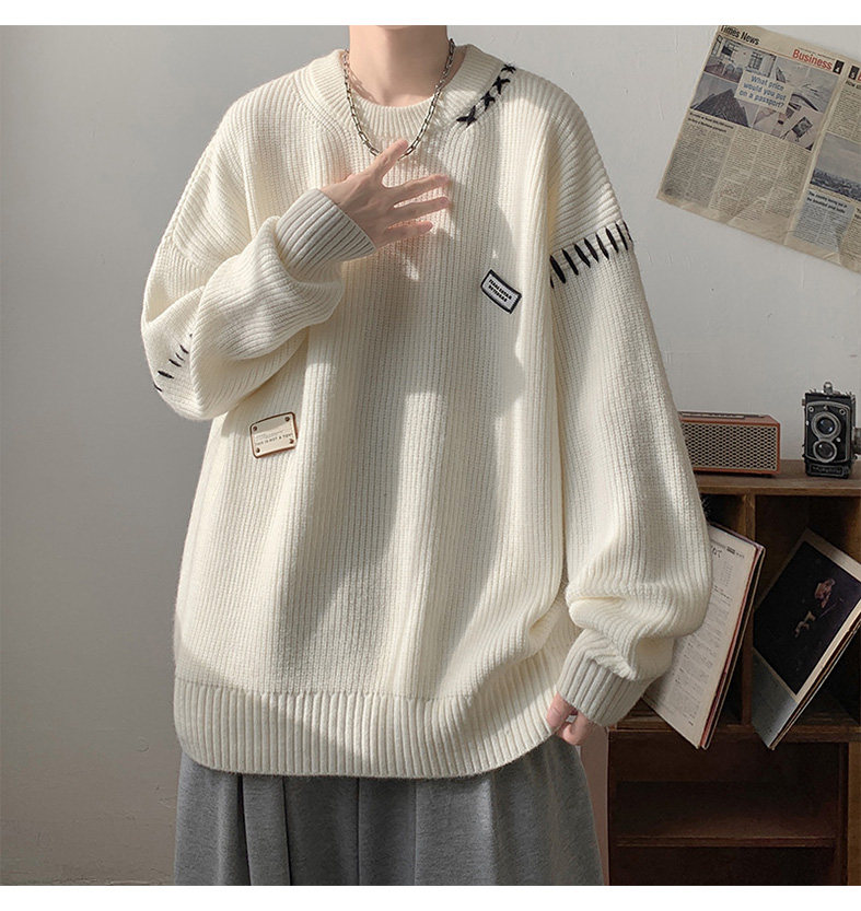 Suéter para hombre, otoño e invierno, nueva marca de moda retro americana para adolescentes, suéter de cuello redondo holgado informal de estilo perezoso