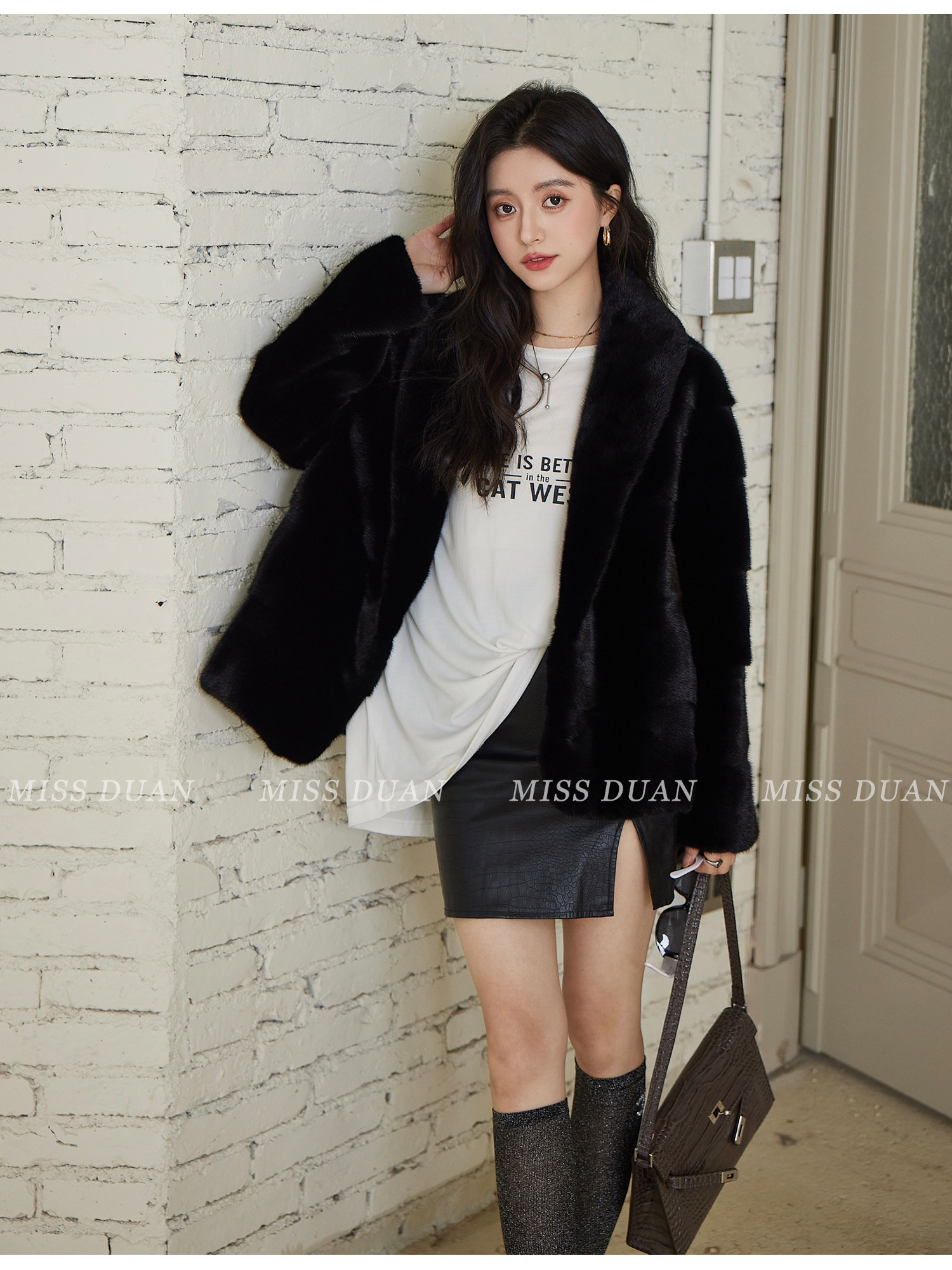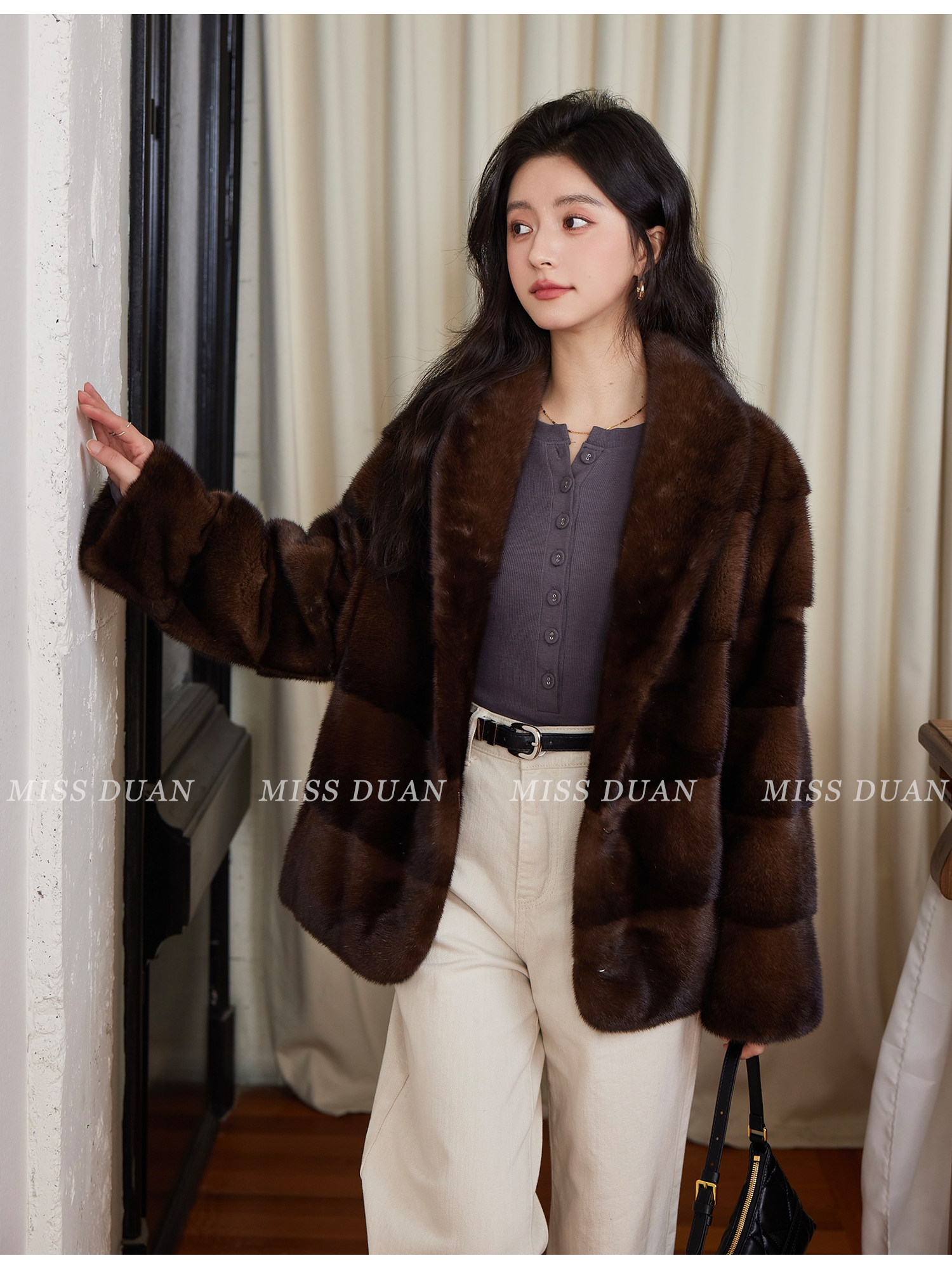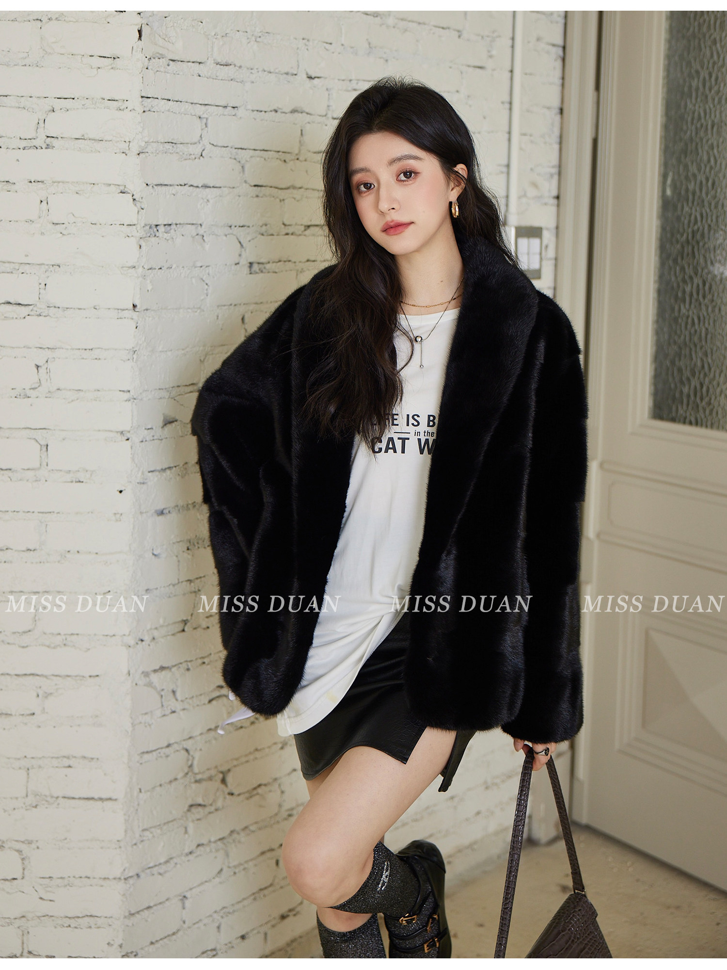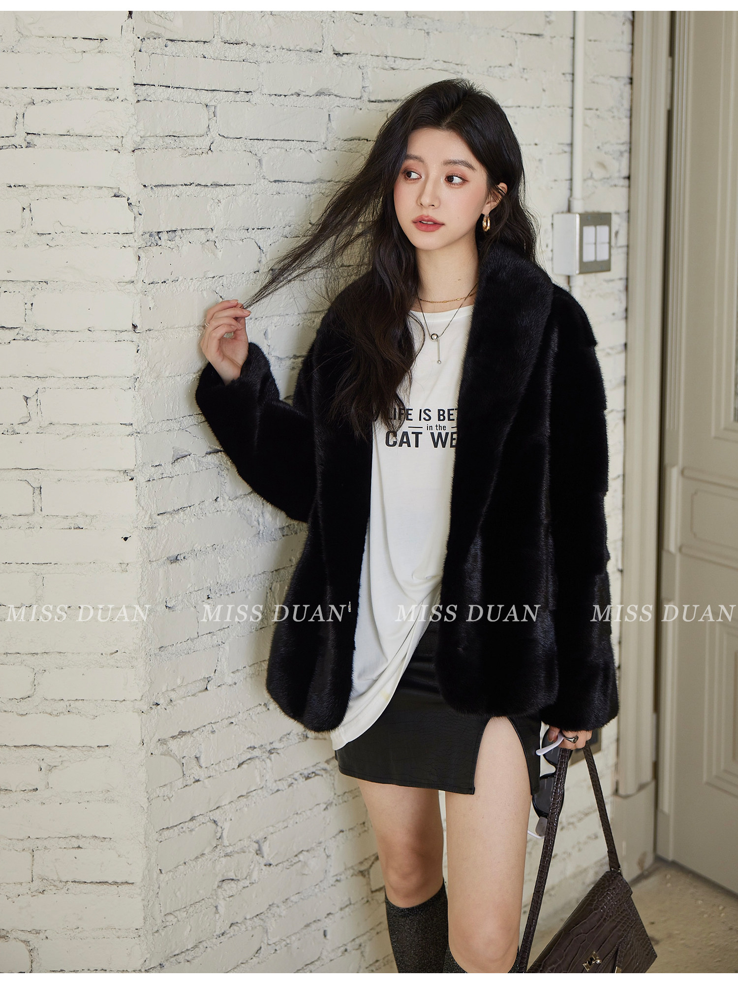 Missduan "Illustrated Love Letter" New Young Style Cross Mink Imported Mink Fur Coat Women's Fur Jacket Winter