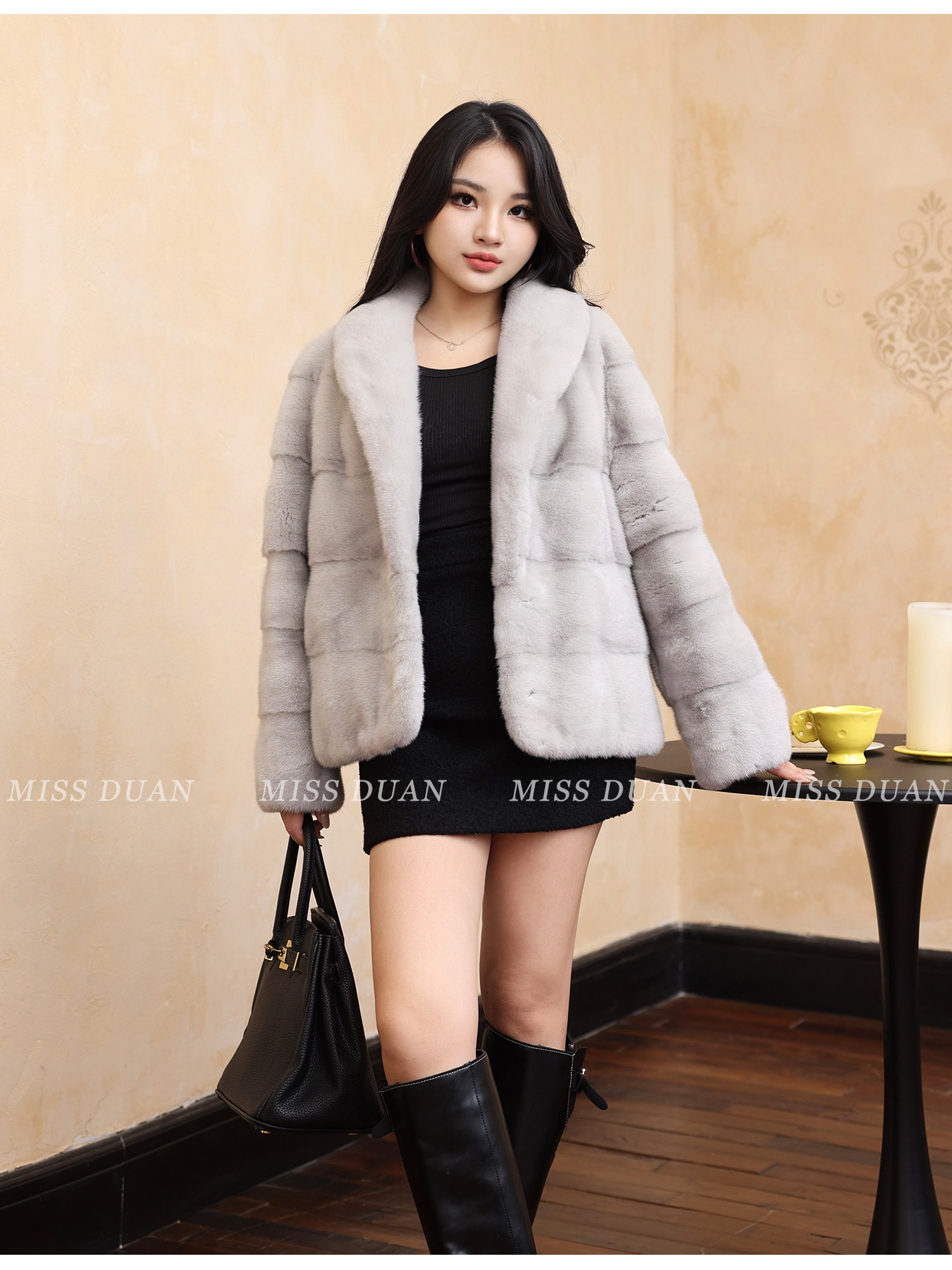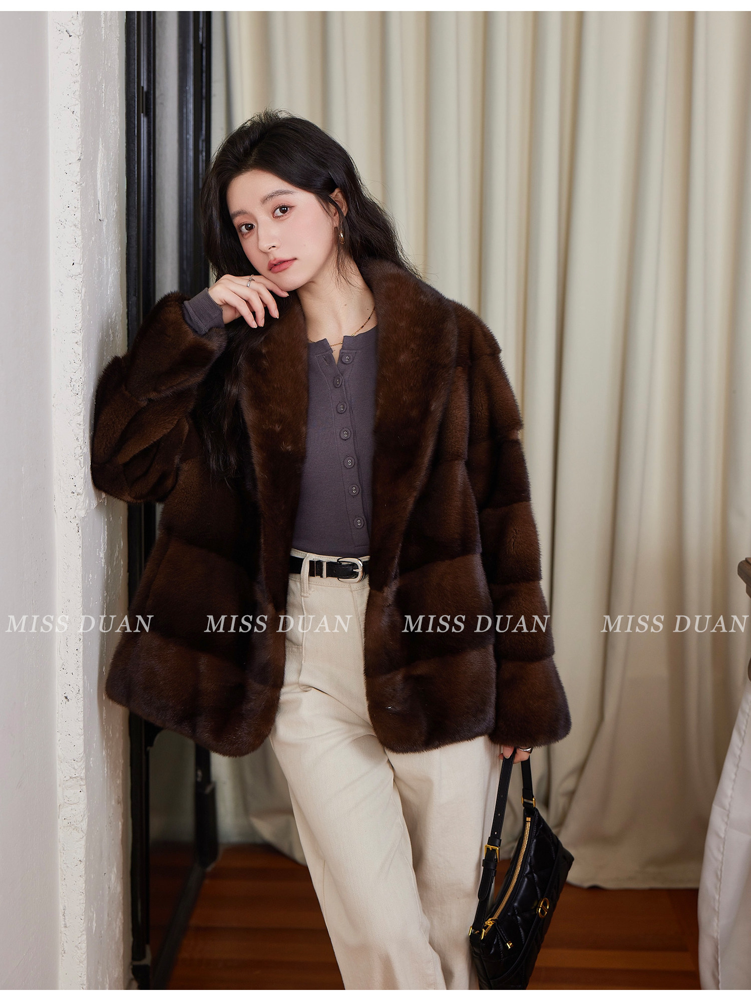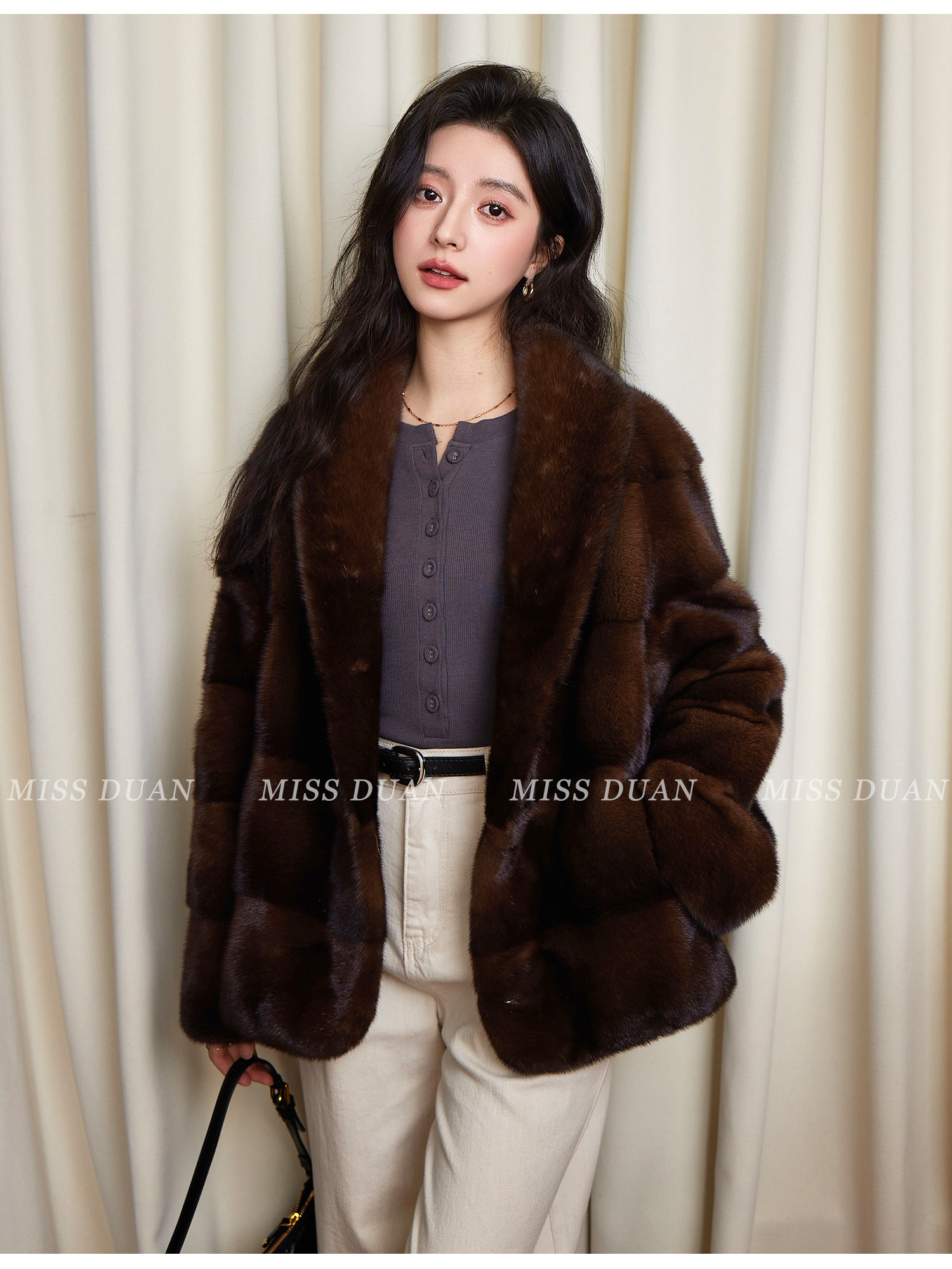 Missduan "Illustrated Love Letter" New Young Style Cross Mink Imported Mink Fur Coat Women's Fur Jacket Winter