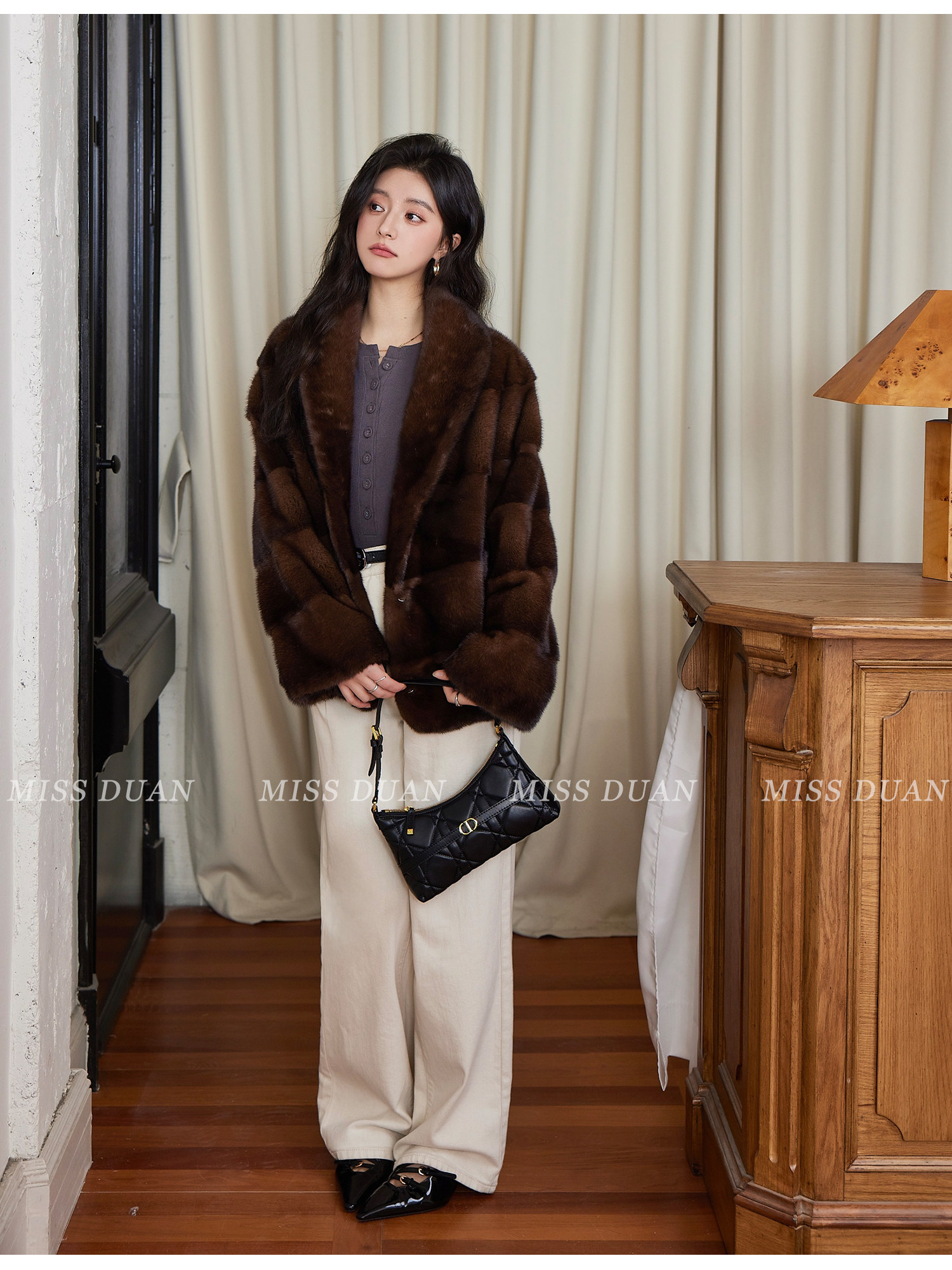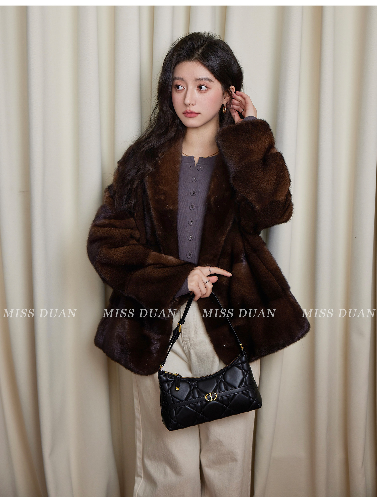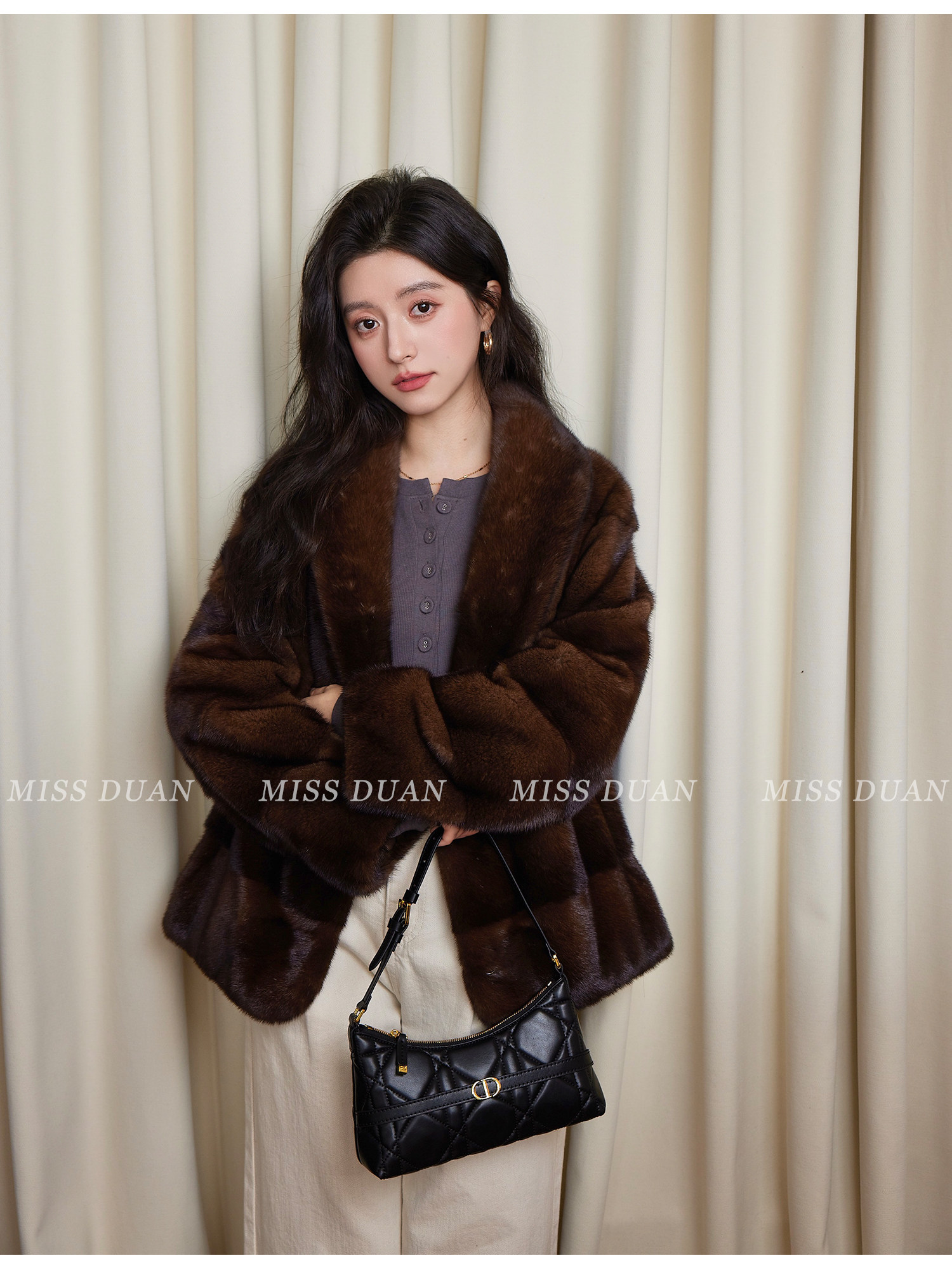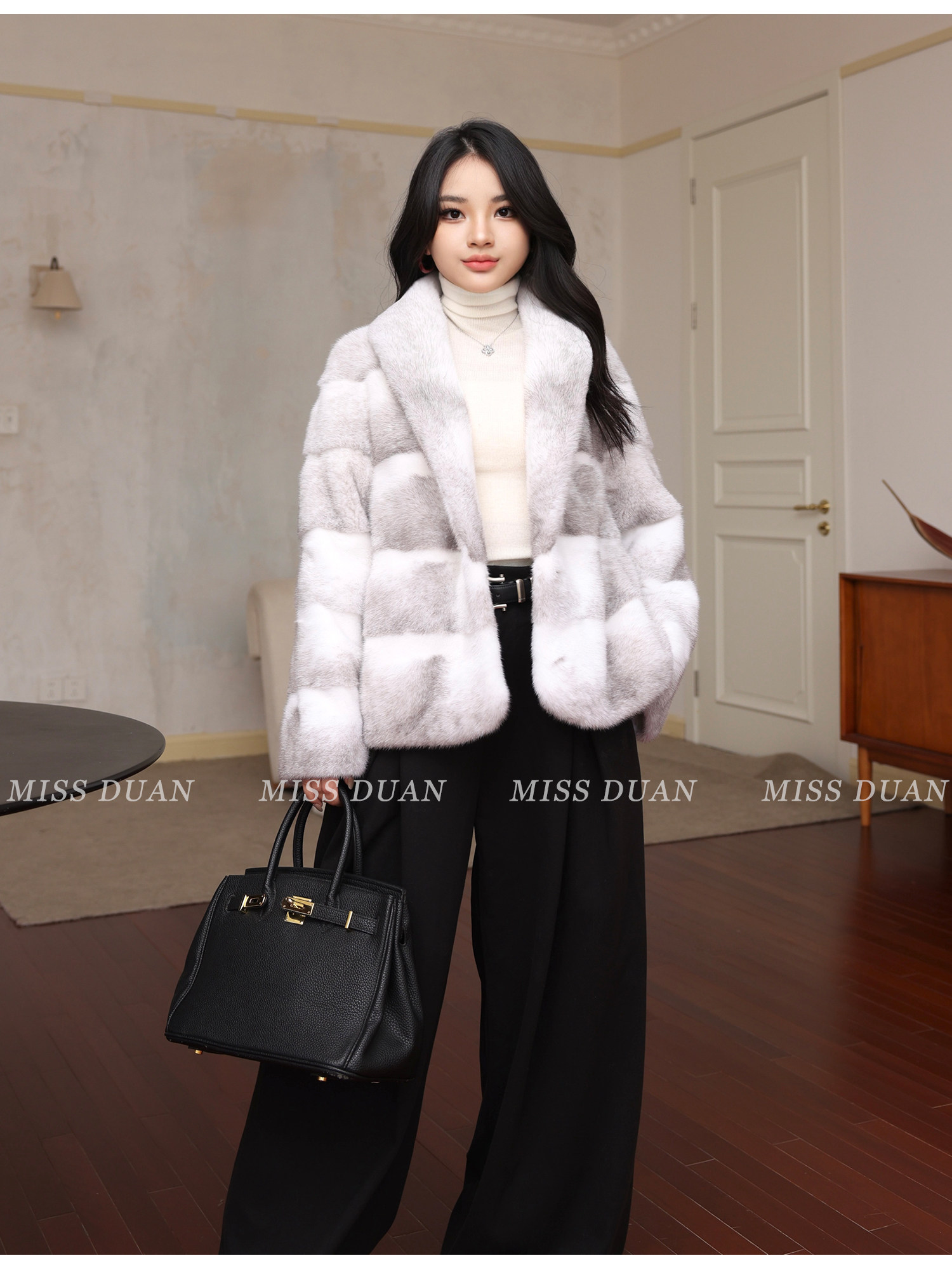 Missduan "Illustrated Love Letter" New Young Style Cross Mink Imported Mink Fur Coat Women's Fur Jacket Winter