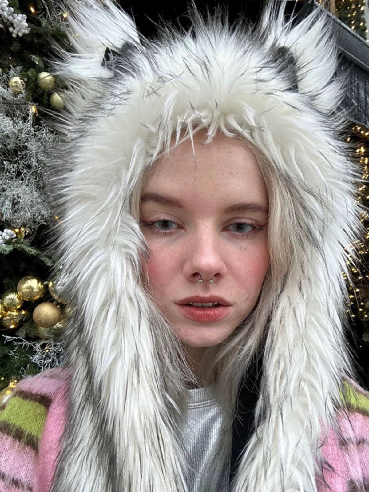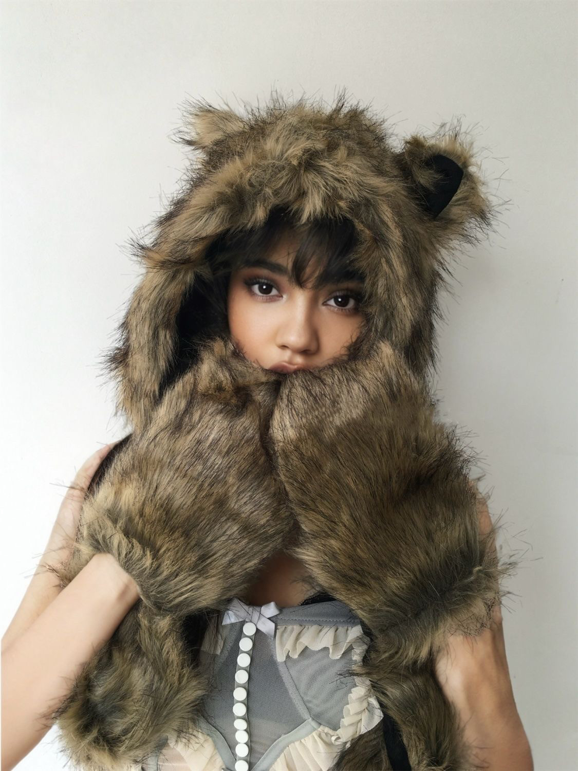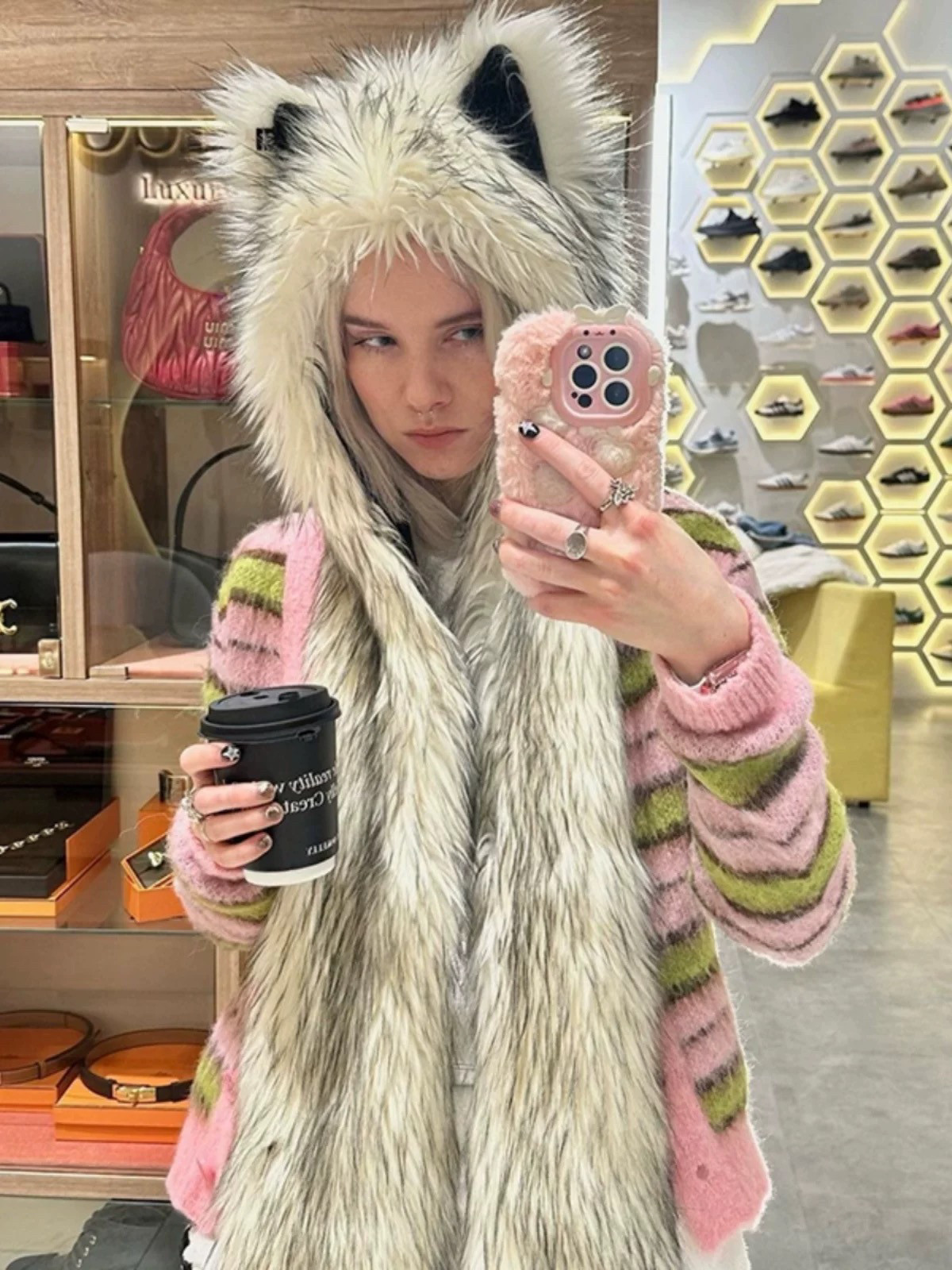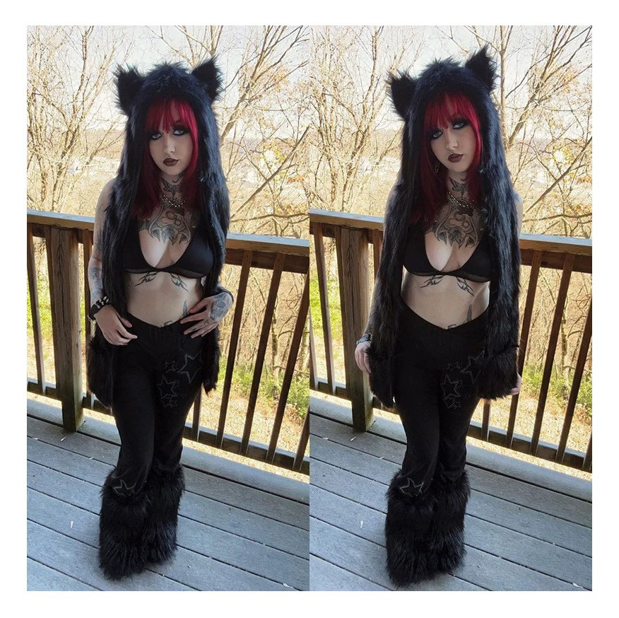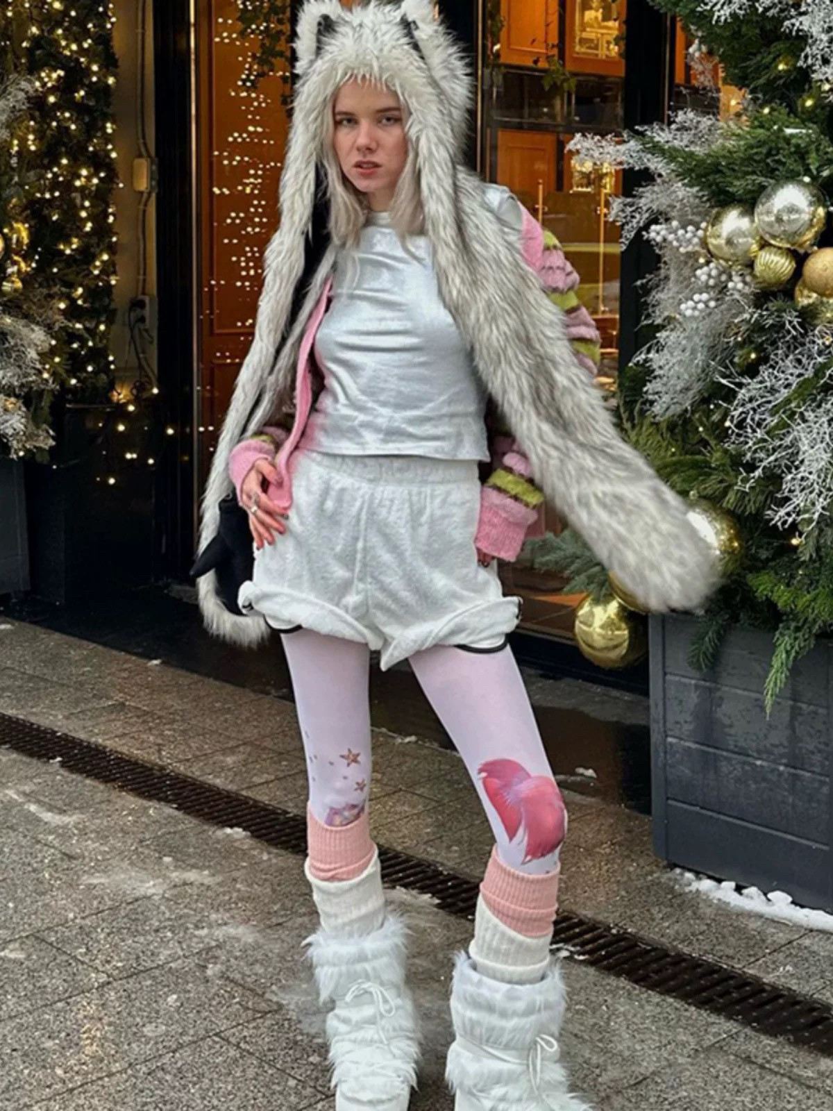 Y2k Hot Girl Weihnachten Harajuku Hime Furry Fox Ohrschal Handschuhe One Hat Pure Desire Niedliche Ohrenschutzmütze