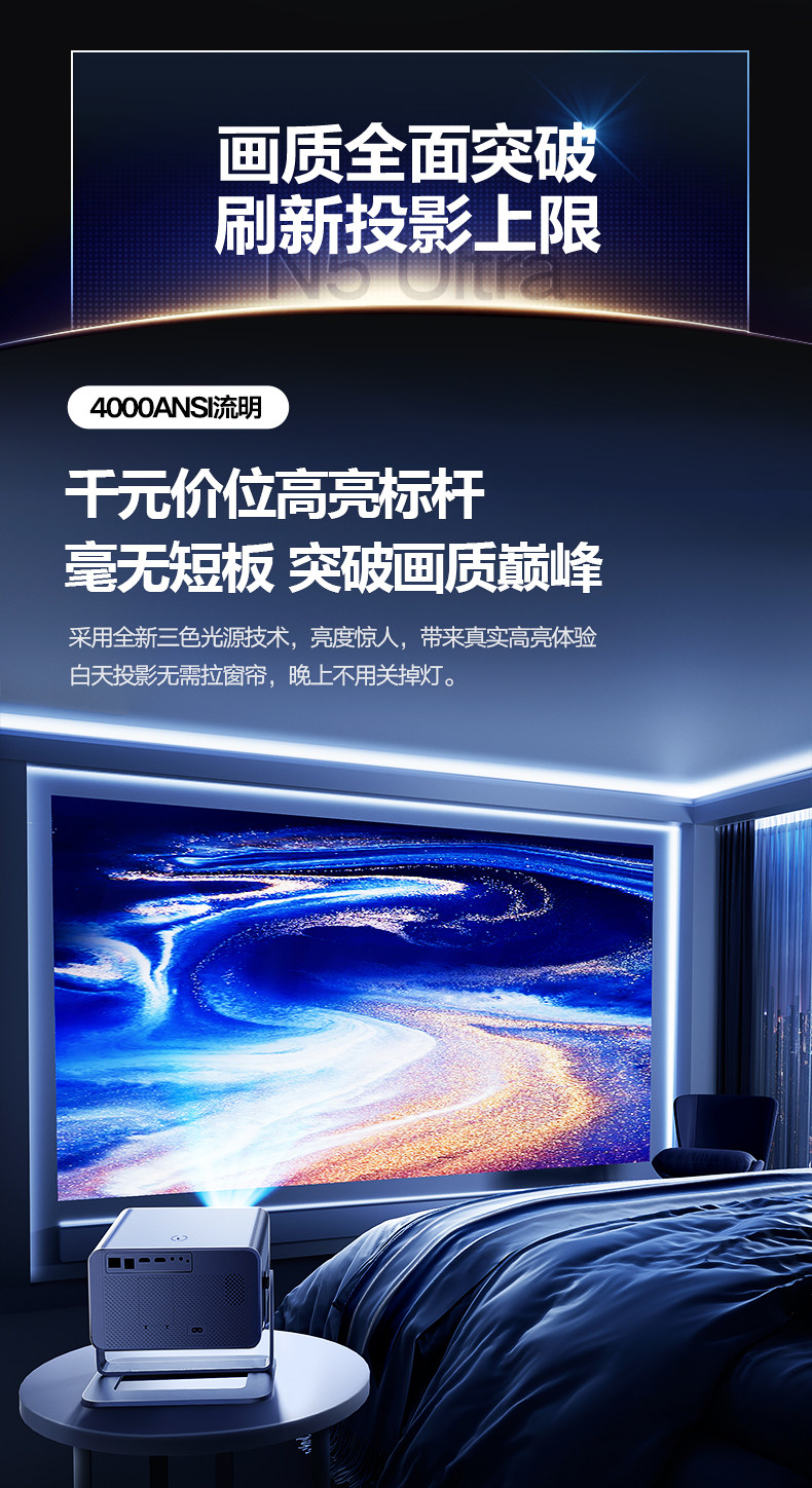 [Flagship New Product at Thousand Yuan Price]2025 New Projector for Home Use, Ultra-High Definition, Daytime Anti-Light Direct Projection, Suitable for Bedroom, Living Room, Small Student Dormitory, Portable for Office Meetings, Can Connect to Mobile Phone for Screen Projection
