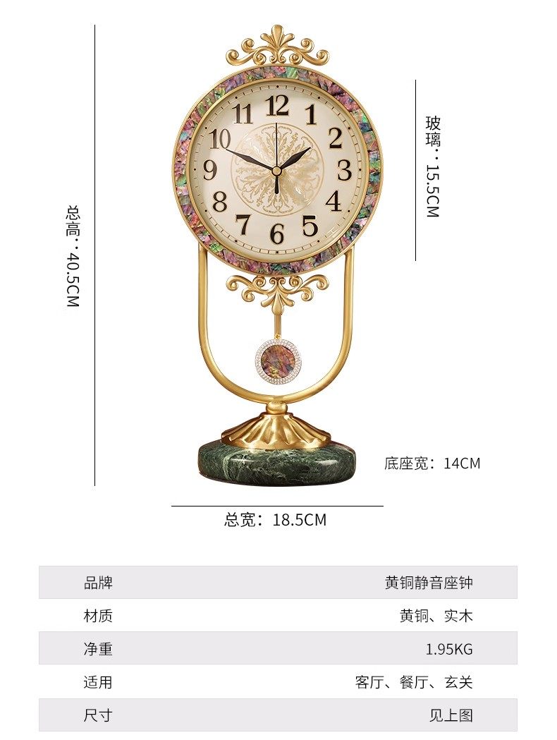 Qin and Han Dynasty Tianxi European-Style Brass Table Clock Desktop Decoration Creative Fashion Light Luxury Clock Silent Quartz Clock