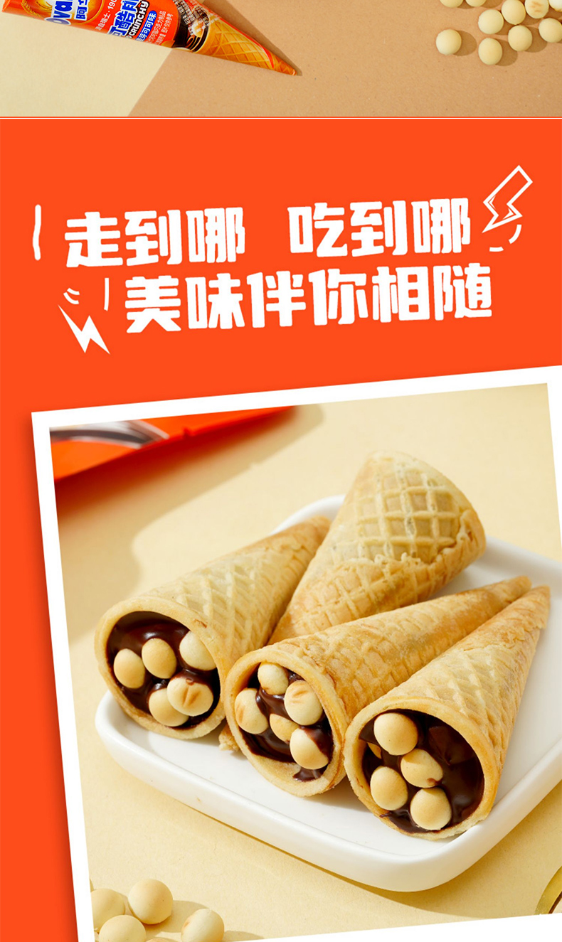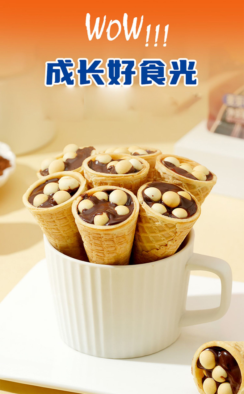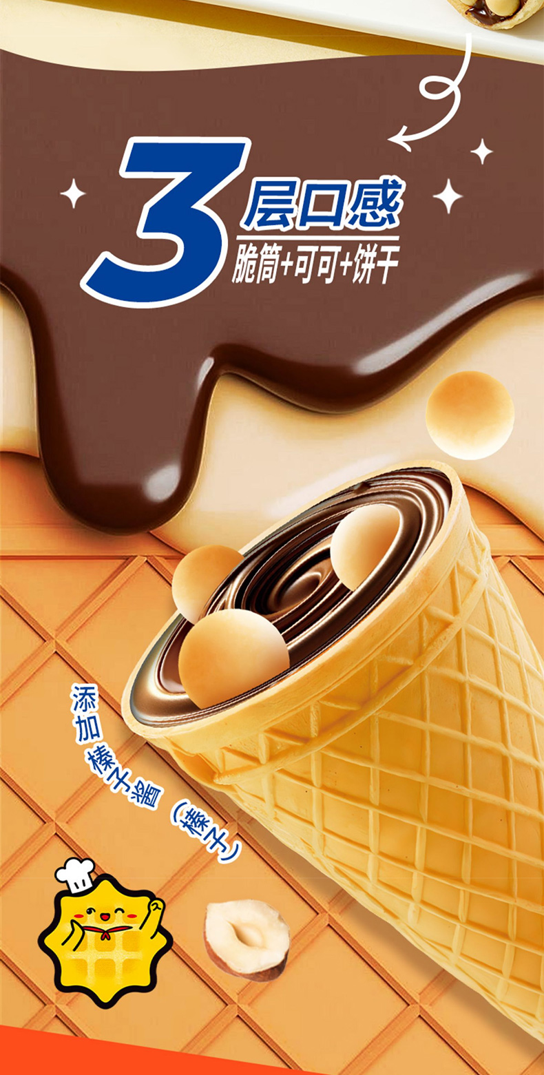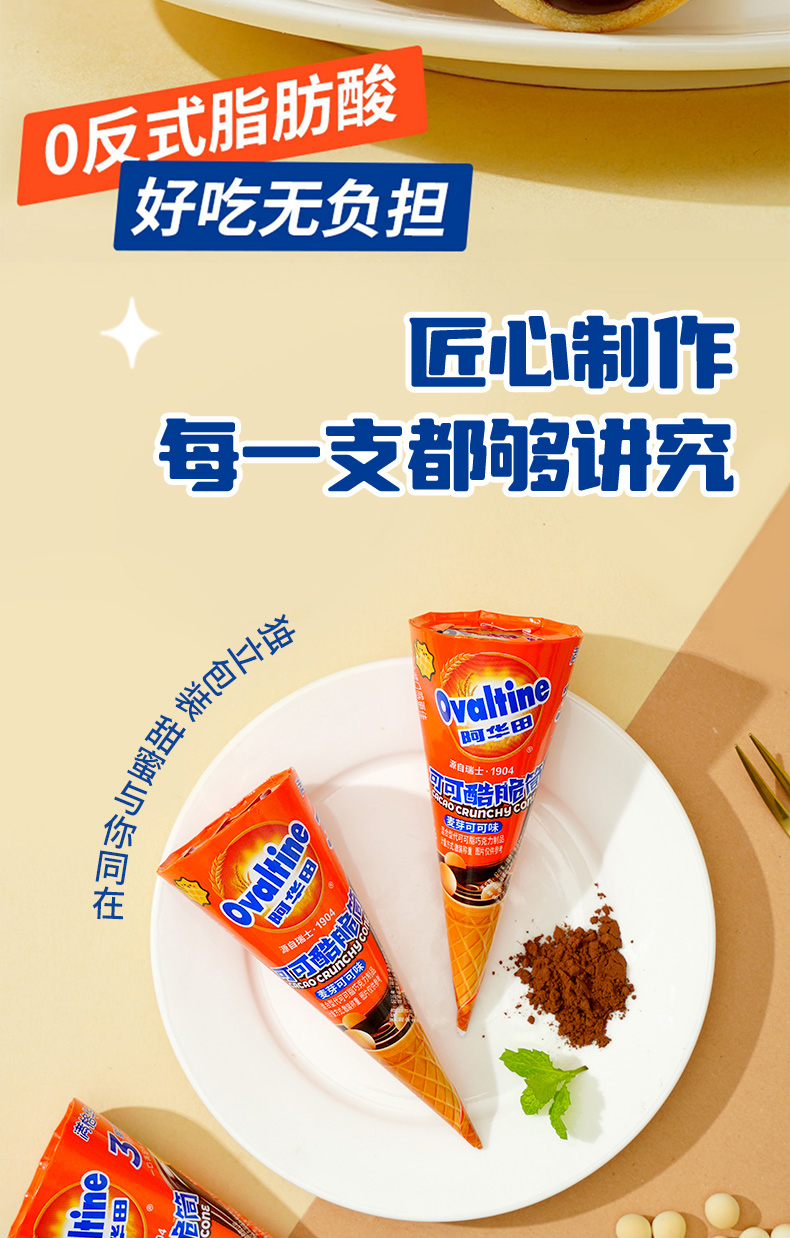 阿华田可可酷脆筒巧克力榛子酱夹心饼干冰淇淋甜筒儿童年货零食品