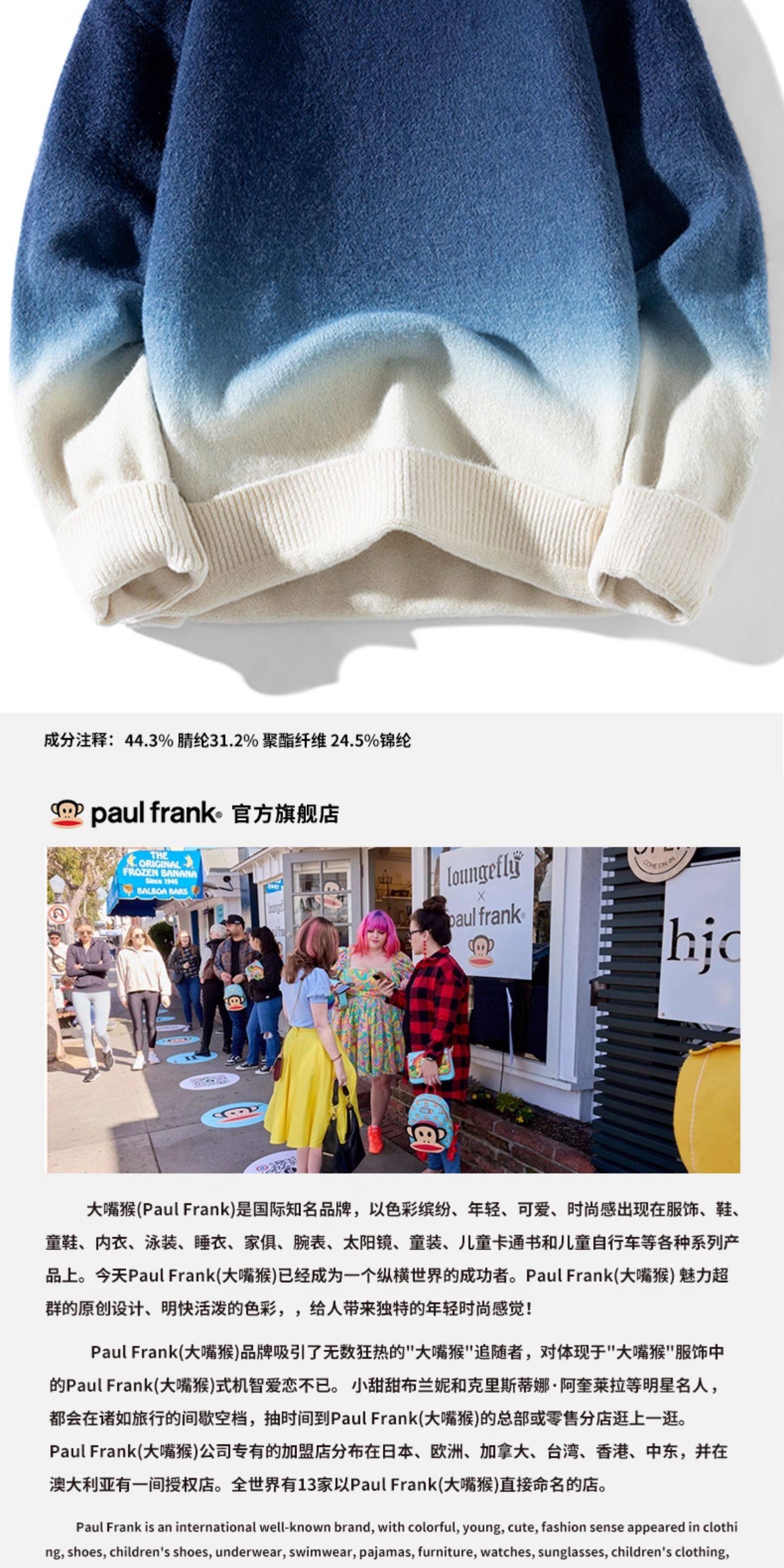 Big Mouth Monkey 2025 Herbst und Winter neuer Farbverlaufspullover für Herren, trendige Marke, lockerer Retro-Strickpullover für Herren