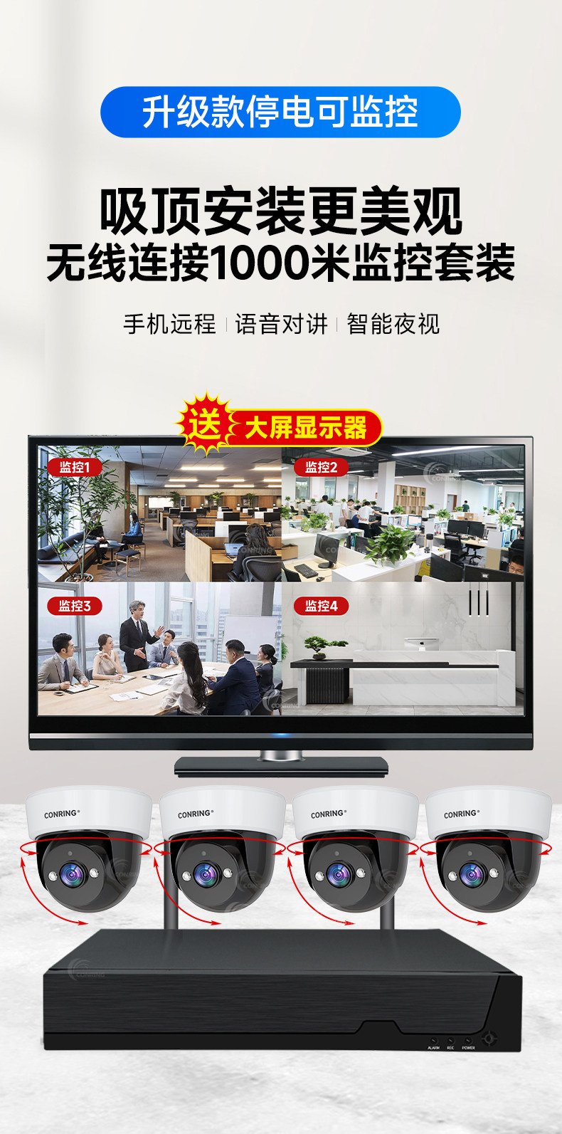无线全套监控设备套装高清摄像头店铺用商用工厂用超市用监控套装