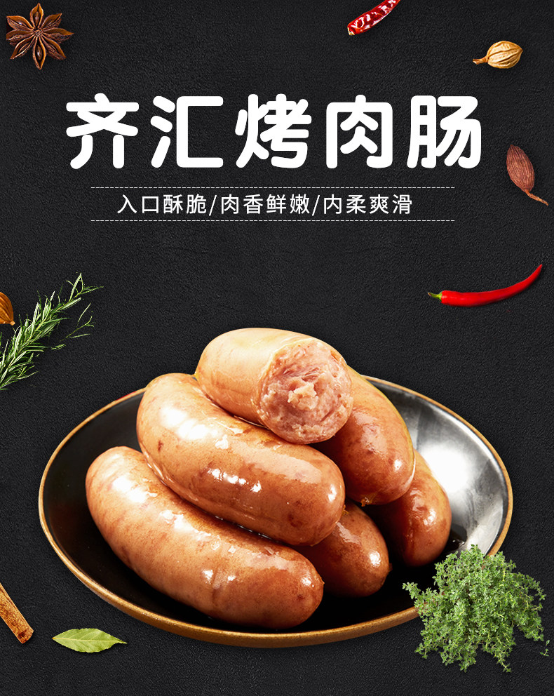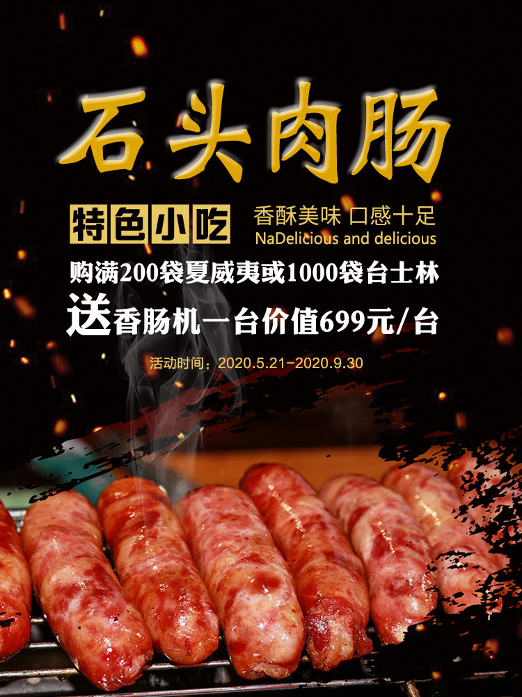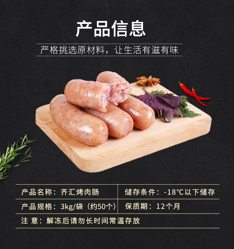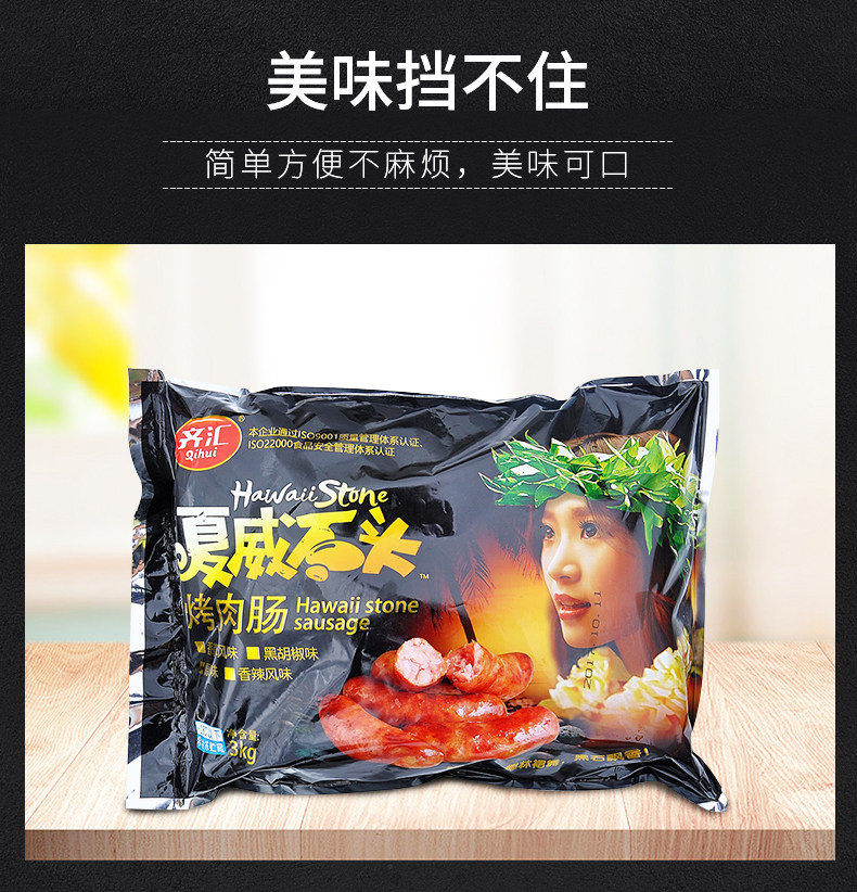Qihui Roasted Sausage Sausage Desktop Hawaiian Stone Meat Sausage Volcanic Rock Authentic Sausage 3kg 50 Semi-Finished Snacks