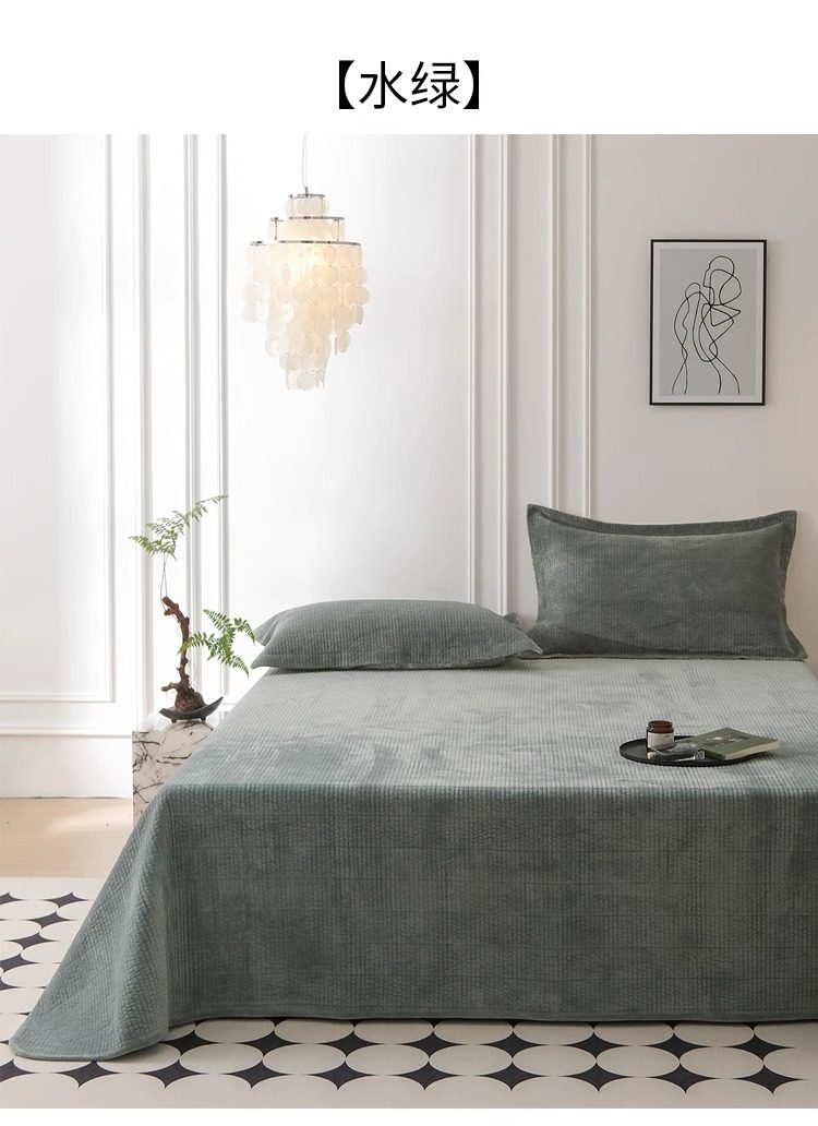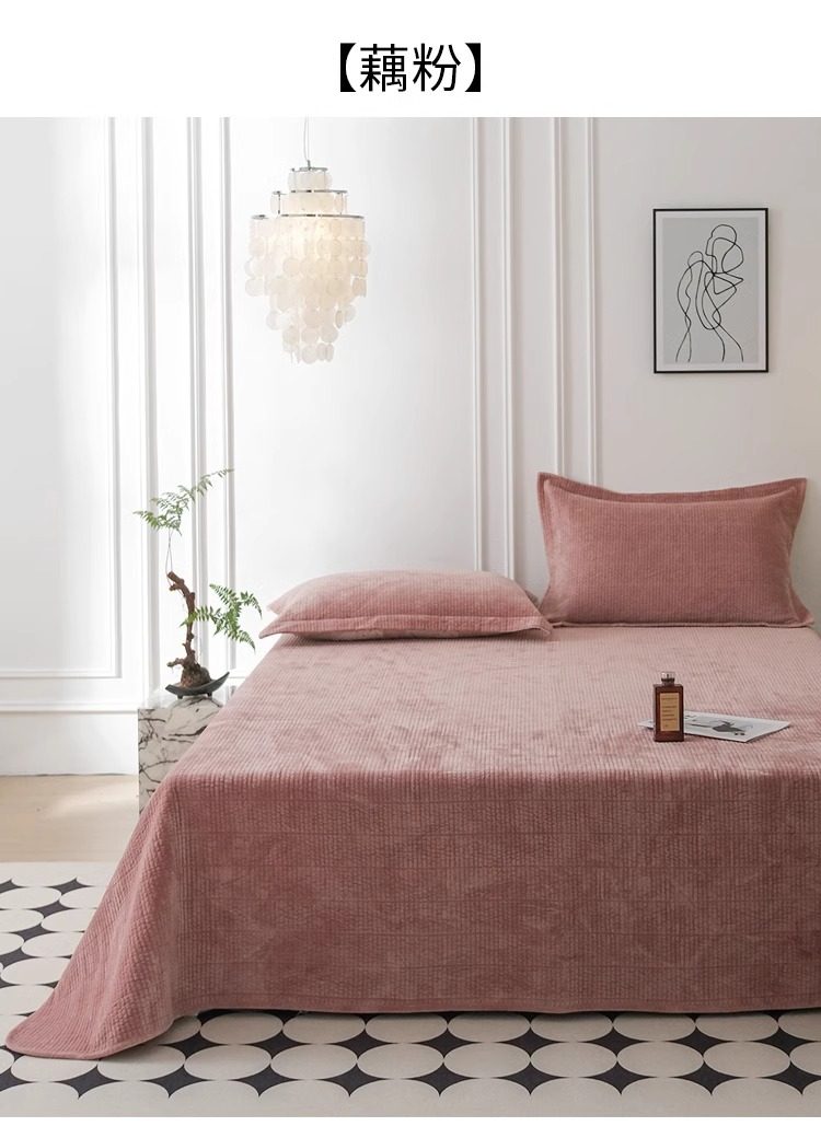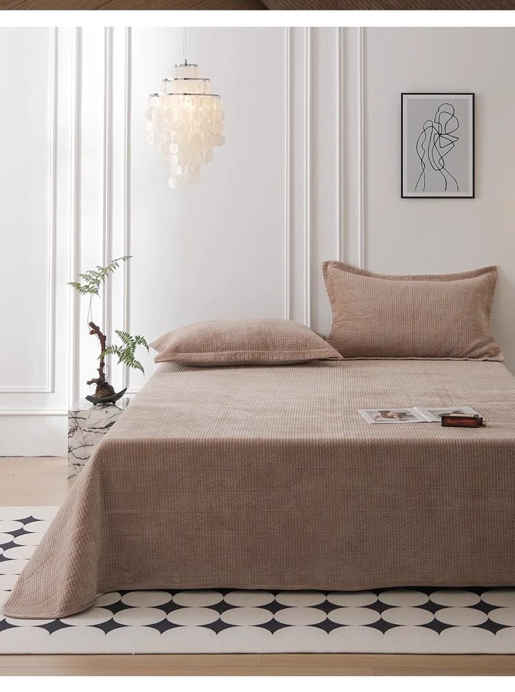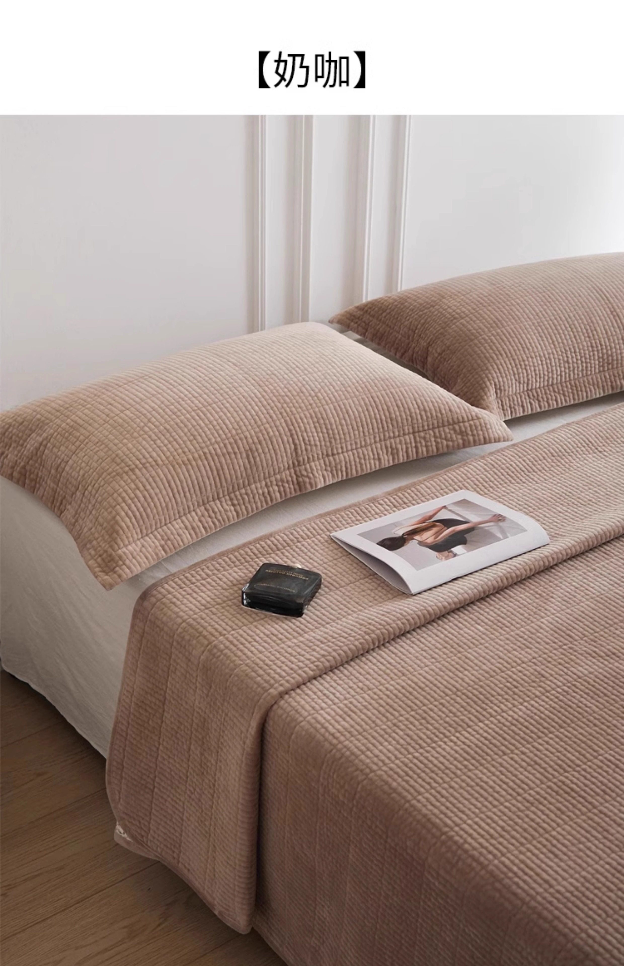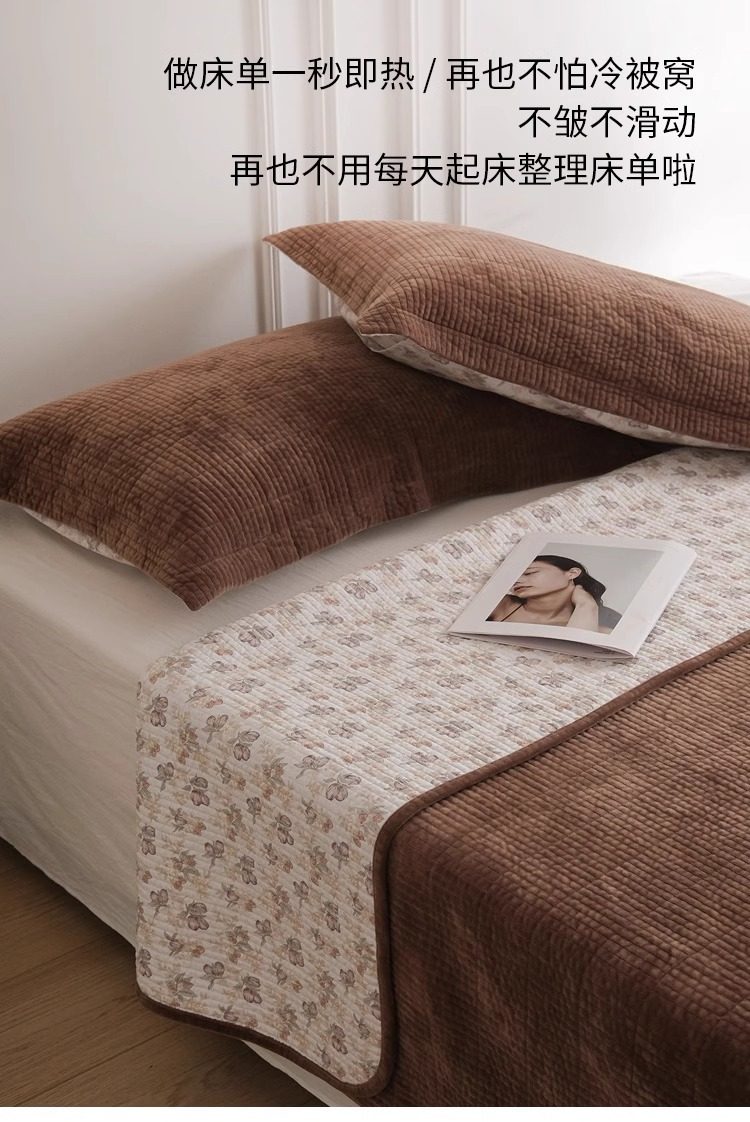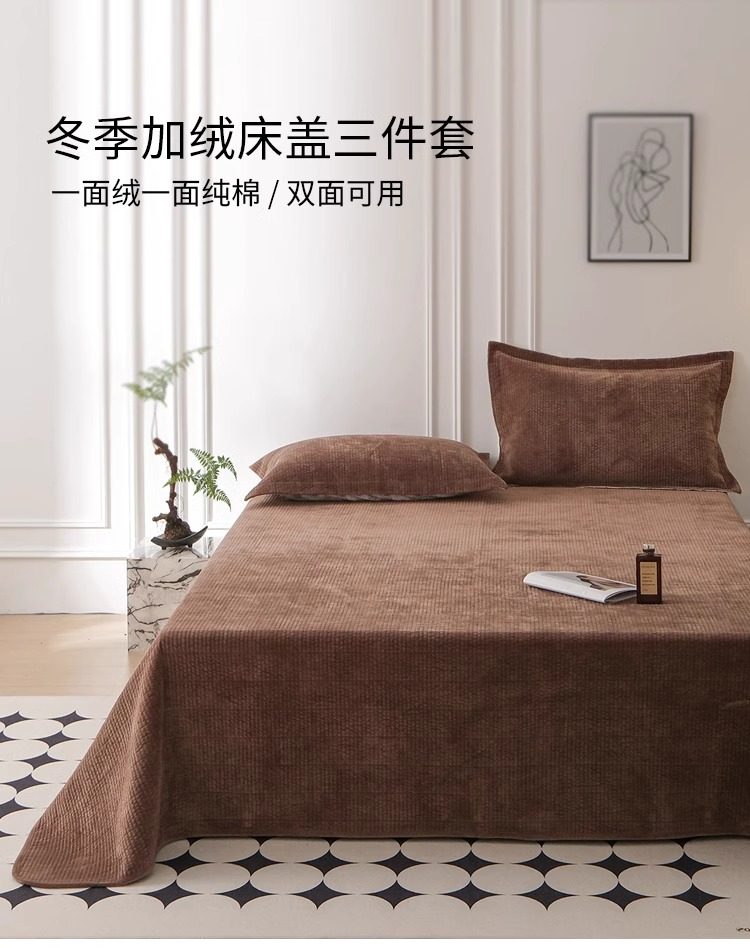 Touch Miss Autumn and Winter Fleece Bed Cover Three-Piece Set, One Side Fleece and One Side Pure Cotton Quilted Tatami Non-Slip Bed Sheet