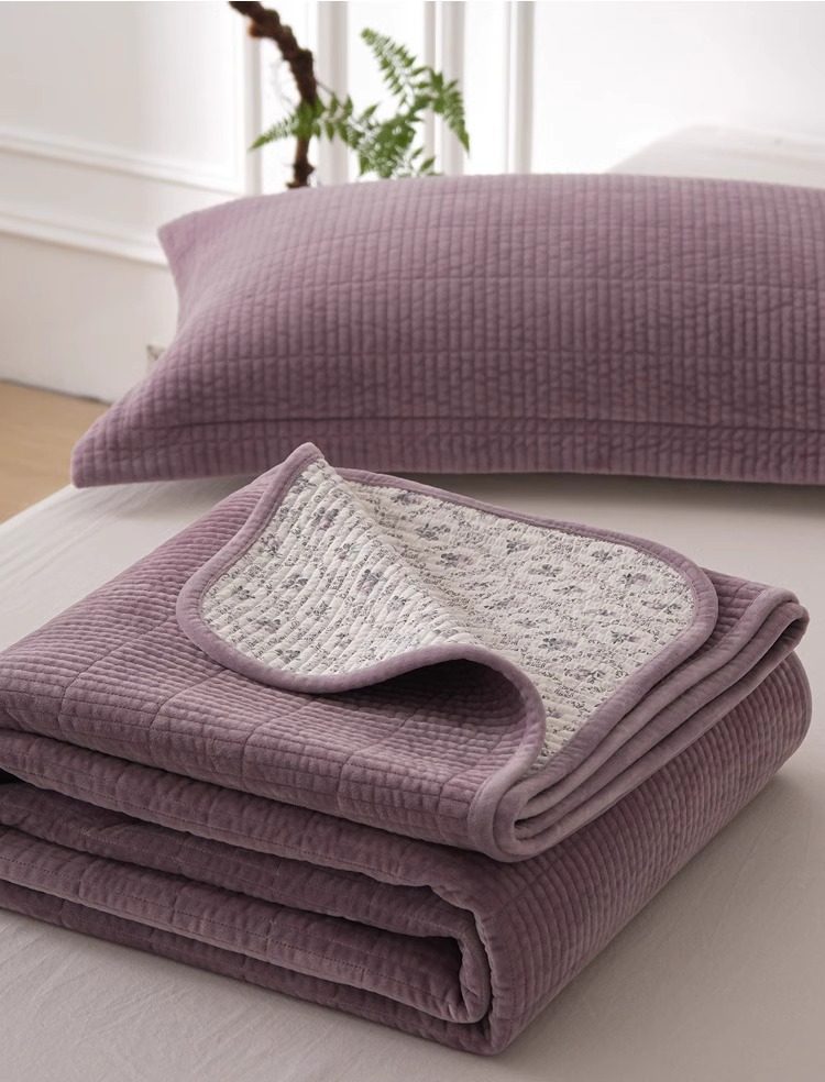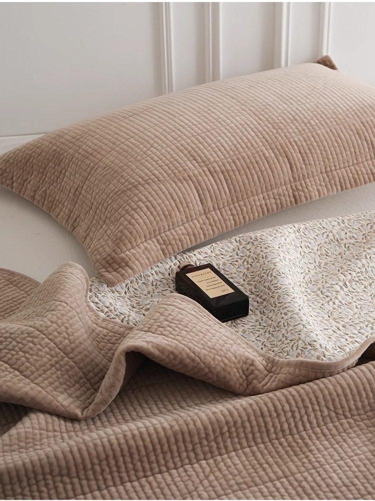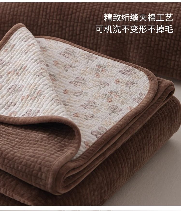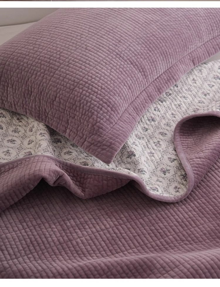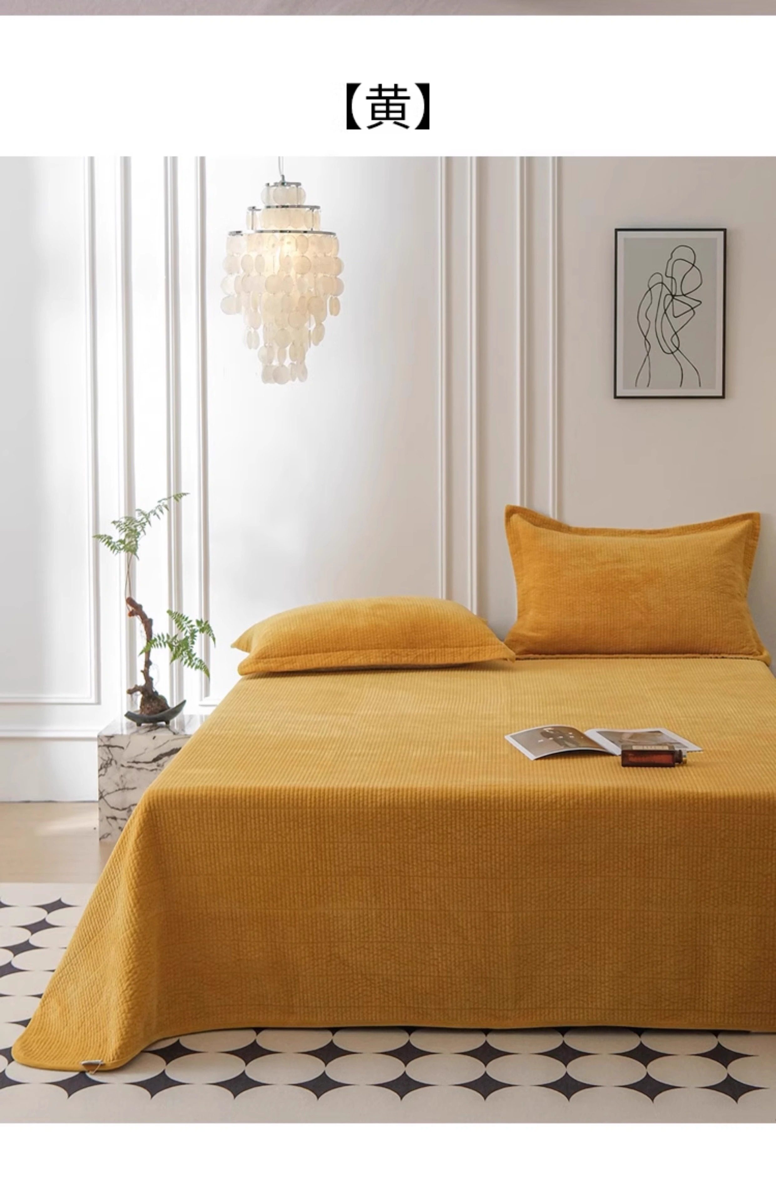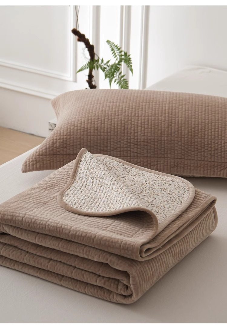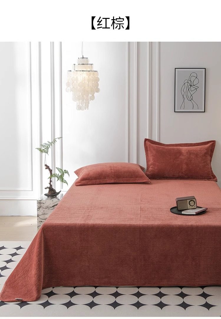 Touch Miss Autumn and Winter Fleece Bed Cover Three-Piece Set, One Side Fleece and One Side Pure Cotton Quilted Tatami Non-Slip Bed Sheet