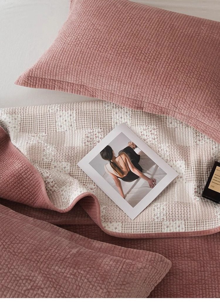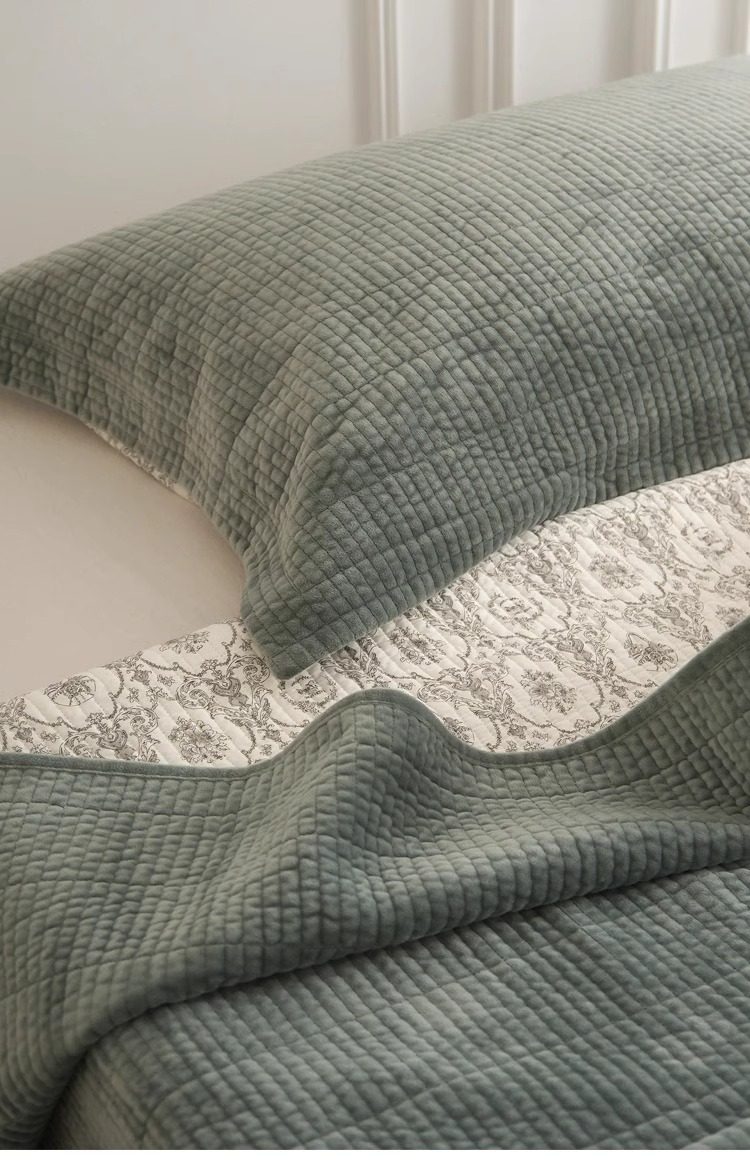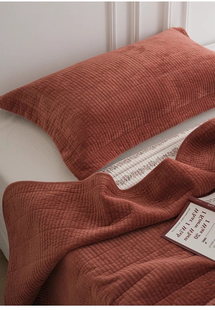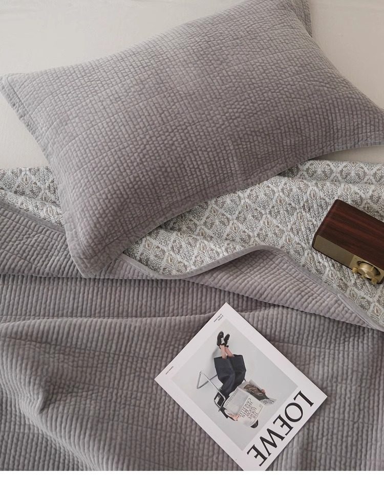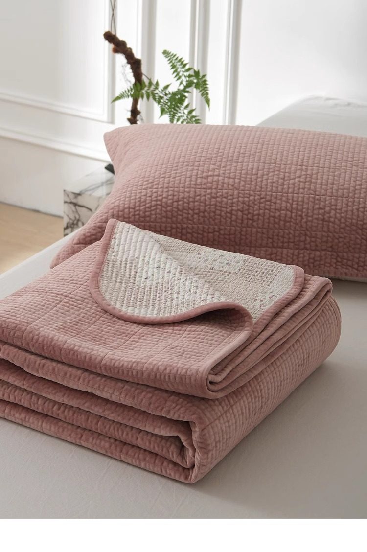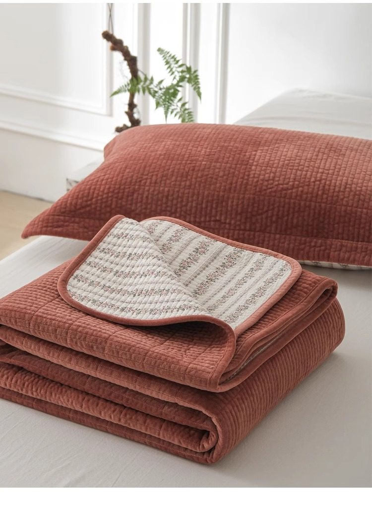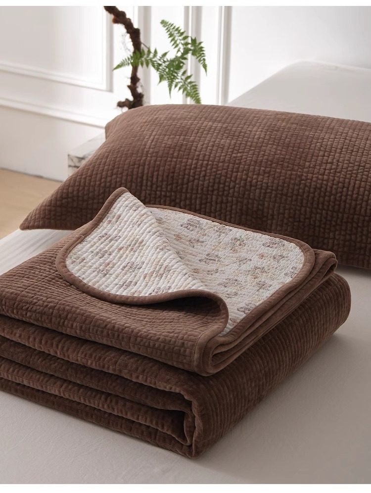 Touch Miss Autumn and Winter Fleece Bed Cover Three-Piece Set, One Side Fleece and One Side Pure Cotton Quilted Tatami Non-Slip Bed Sheet