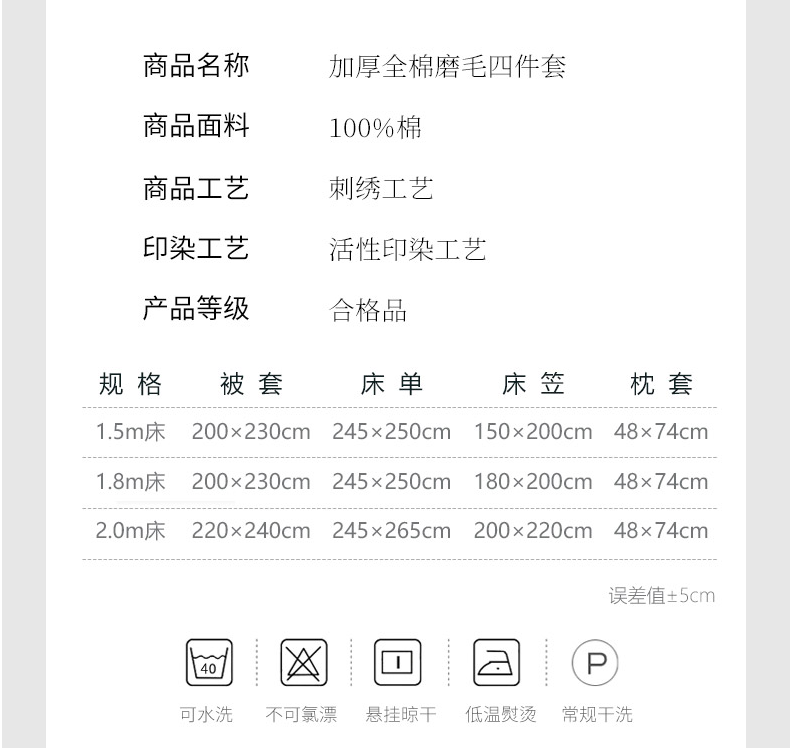 Applicable Bed Size 1.5m Bed Sheet Four-Piece Set (Quilt Cover 2.0*2.3m),1.8m Bed Sheet Four-Piece Set (Quilt Cover 2.0*2.3m),2.0m Bed Sheet Four-Piece Set (Quilt Cover 2.2*2.4m)
